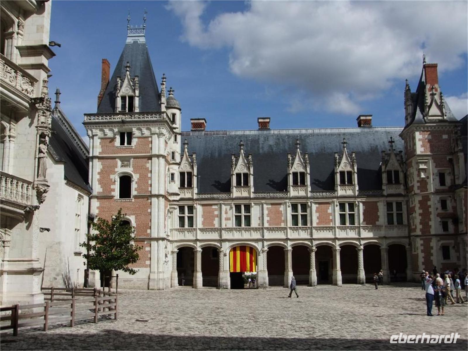 Durch die Kornkammer der Beauce kommen wir nach einer Mittagspause an einer Windmühle an die Loire. Anziehungspunkt ist das Schloss Blois. Fast 400 Jahre Geschichte sind zu Stein geworden, von der Spätgotik unter Louis XII über die Renaissance des Francois I, dessen Loggiaflügel auf der Hofseite durch den berühmten Wendeltreppenturm geschmückt ist bis zum klassischen Bau des großen Mansart für ein Mitglied der Königsfamilie, das gern selbst König geworden wäre.
