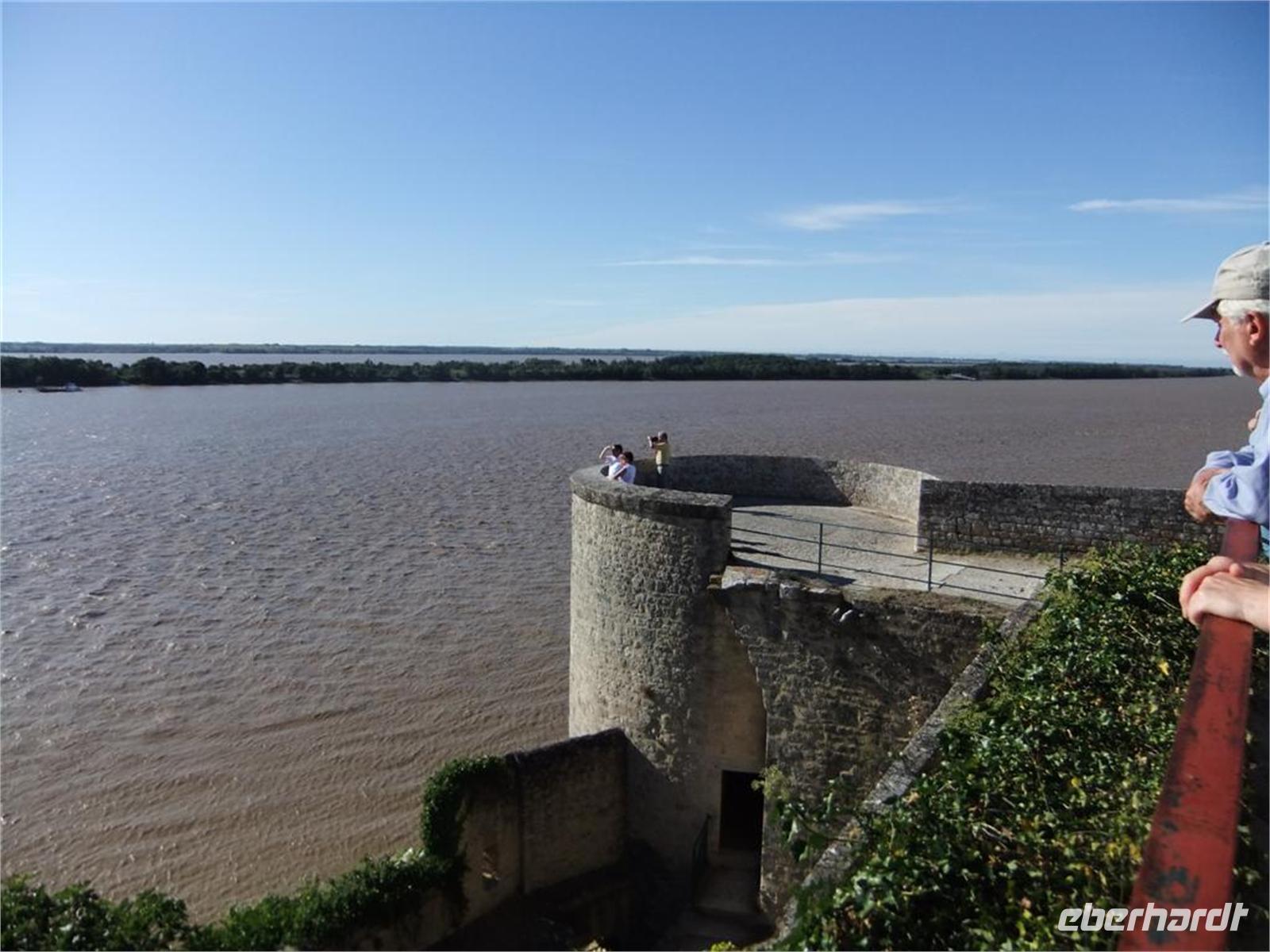 Dann besuchen wird die große Zitadelle Blaye, die der Festungsbaumeister Vauban zur Sicherung der Stadt Bordeaux gegen englische Schiffe an der Girondemündung zusammen mit zwei anderen Forts gebaut hat, um die Gironde abzuriegeln. Hier sind Garonne und Dordogne zu einem 100 km langen, sehr breiten Trichter zusammengeflossen. Ein angenehmer Spaziergang am späten Nachmittag und viel Geschichte, denn schon Roland, der tapfere Paladin Karl des Großen hatte sein Burg hier. Relativ schnell ist trotz des Abendverkehrs unser Hotel im modernen Stadtteil Meriadeck erreicht.