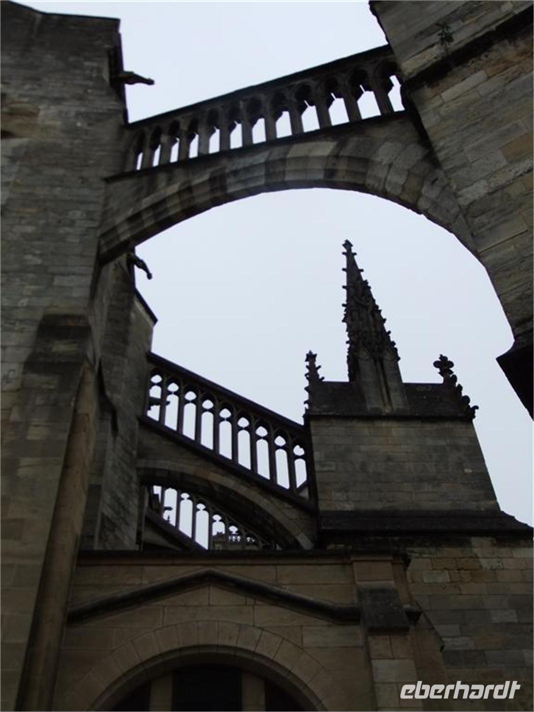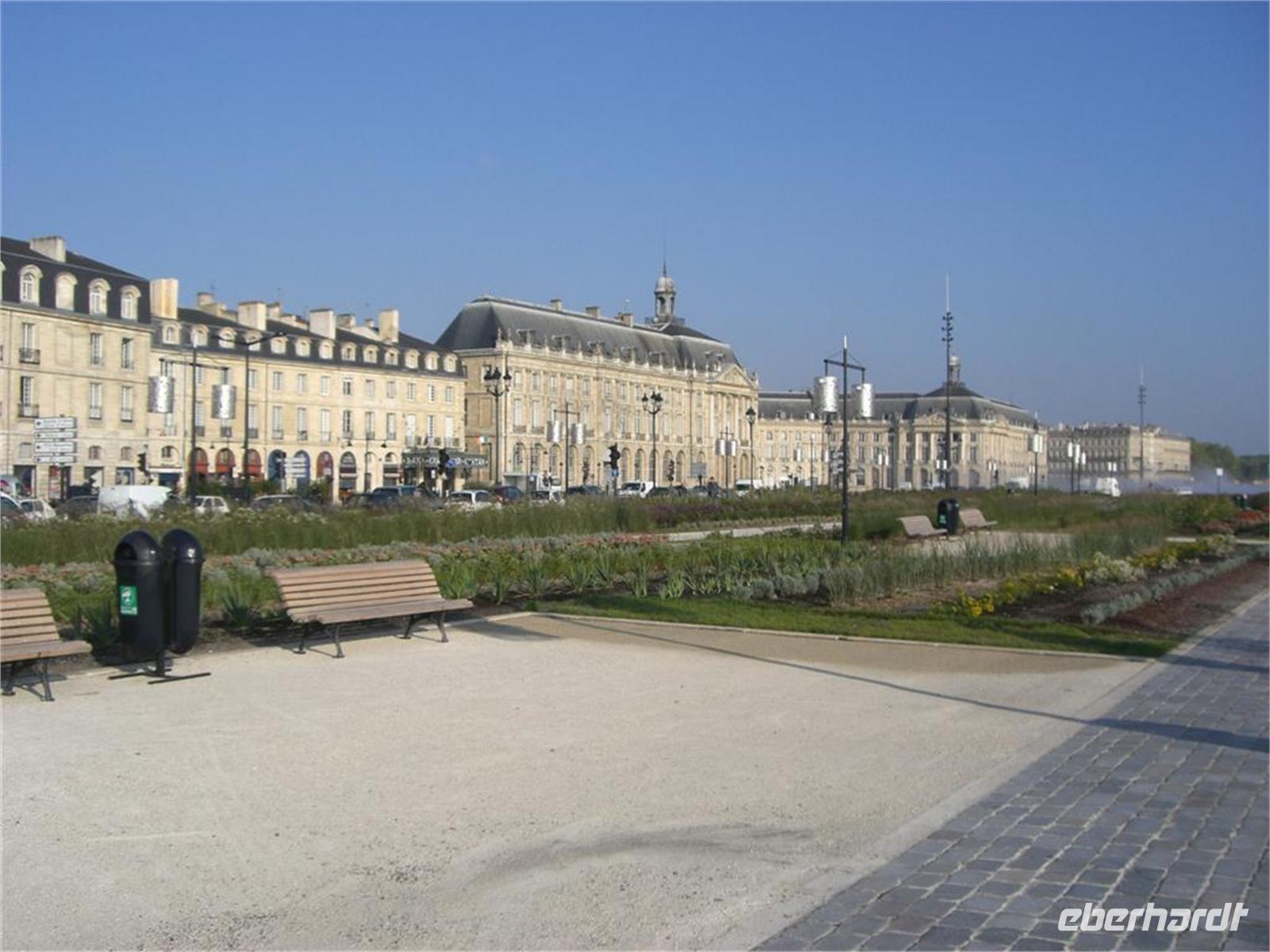 Nach jahrelangen Sperrungen und Baustellen präsentiert sich die 5 km geschlossene Häuserfront in alter Pracht. Man spürt, das Bordeaux als großer Weinexporteur zu Reichtumgekommen ist. Unter Louis XV und Louis XV entstanden die Prachtbauten um das Theater und am place de la Bourse. Die Ziegelbrücke St.Pierre ist die erste Brücke Bordeaux über die breite Garonne, die erst für Napoleons Armeen im Spanienkrieg gebaut wurde. Das schönste Stadttor ist die Grosse Cloche. Durch sie zogen die Jakobspilger, vor allem Engländer, nach Santiago de Compostella. Kathedrale und Hotel de Ville ziehen uns an. Nur schade, dass die Zeit nicht ausreicht, um Bordeaux weiter zu ergründen.