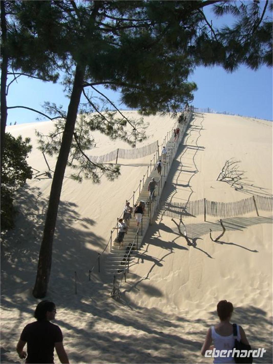 So könnte es in der Sahara sein, feiner weiß-gelber Sand, über 100 m aufgetürmt in einer Düne, die sich über einige Kilometer erstreckt, wären da nicht blaues Meer und endlose grüne Kiefernwälder. Über eine Million Besucher lockte die Düne jährlich an.