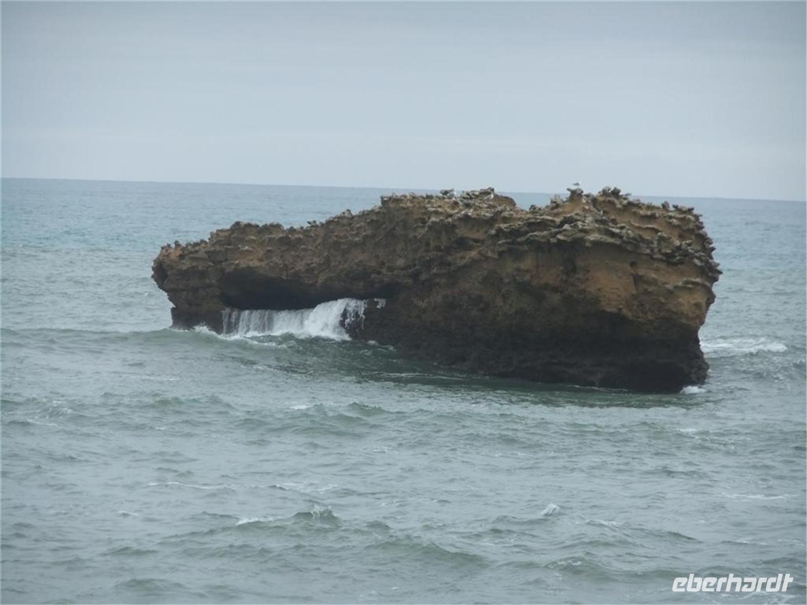 Unserem Fahrer, der uns sicher durch Frankreich führt und mit Witz und Kochkünsten zum großen Erfolg der Reise beiträgt, gönnen wir seinen Ruhetag. Wir kommen gut mit dem Stadtbus nach Biarritz. Die gepflegten Parkanlagen an der felsigen Atlantikküste laden zu einem Spaziergang ein. Es gibt nur noch wenige Badegäste, das Meer am Strand der Verrückten gehört den Surfern. Lang ist die Liste der illustren Gäste, das Napoleon III bekannt machte, der hier die Spanierin Eugenie kennen lernte. Bismarck wäre hier beinahe ertrunken, sein Retter, ein einfacher Fischer, soll seine Tat nach 1870/71 bereut haben. Überall der Glanz von 150 Jahren Treffpunkt der Schönen und Reichen. Der Walfang in Biarritz ist längst Geschichte.
