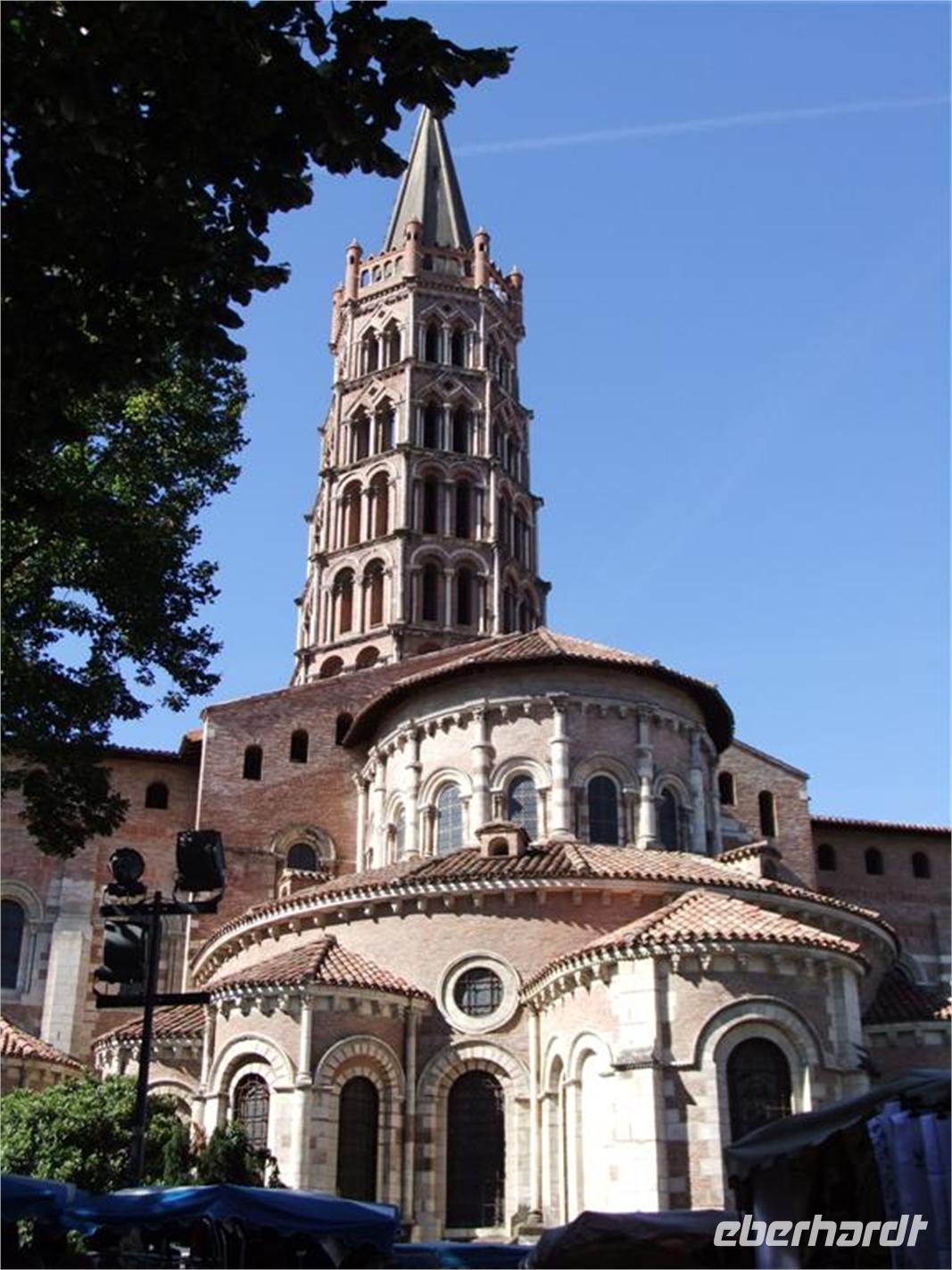 Wir fahren vom Vorland der Pyrenäen in die Garonne-Ebene und die backsteinrote Stadt Toulouse, reich an Geschichte von der Keltenzeit bis zur modernsten Technologie unserer Zeit im Flugzeug- und Raketenbau. Hier steht die nach der Zerstörung Clunys die größte romanische Kirche der Welt, St.-Sernin, mit dem größten Reliquienschatz Frankreichs.