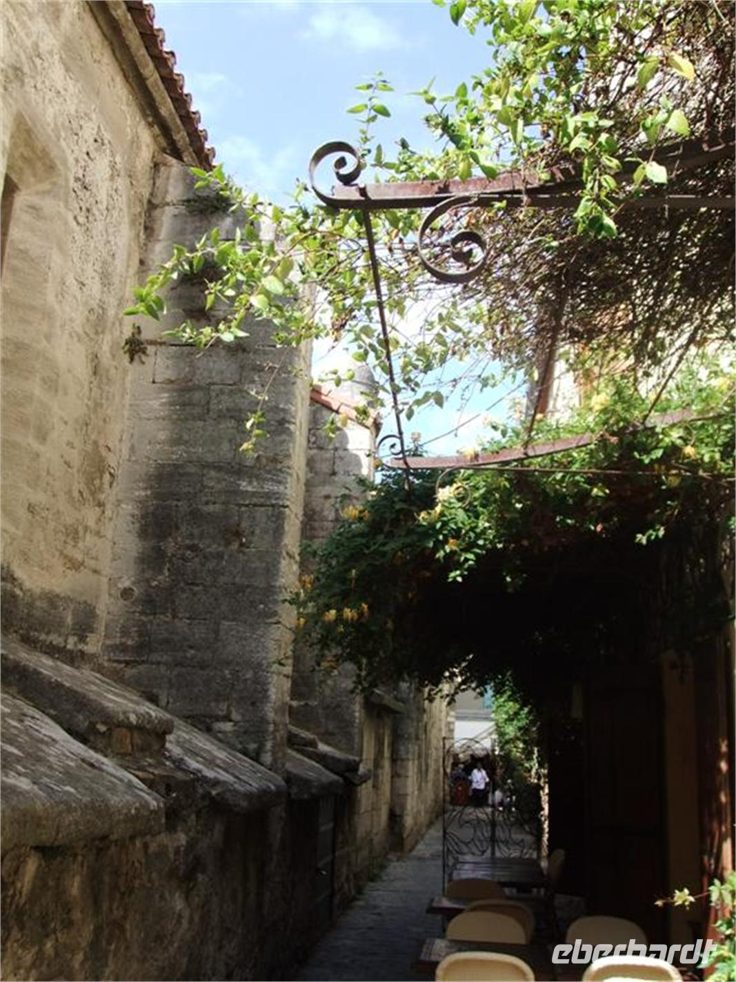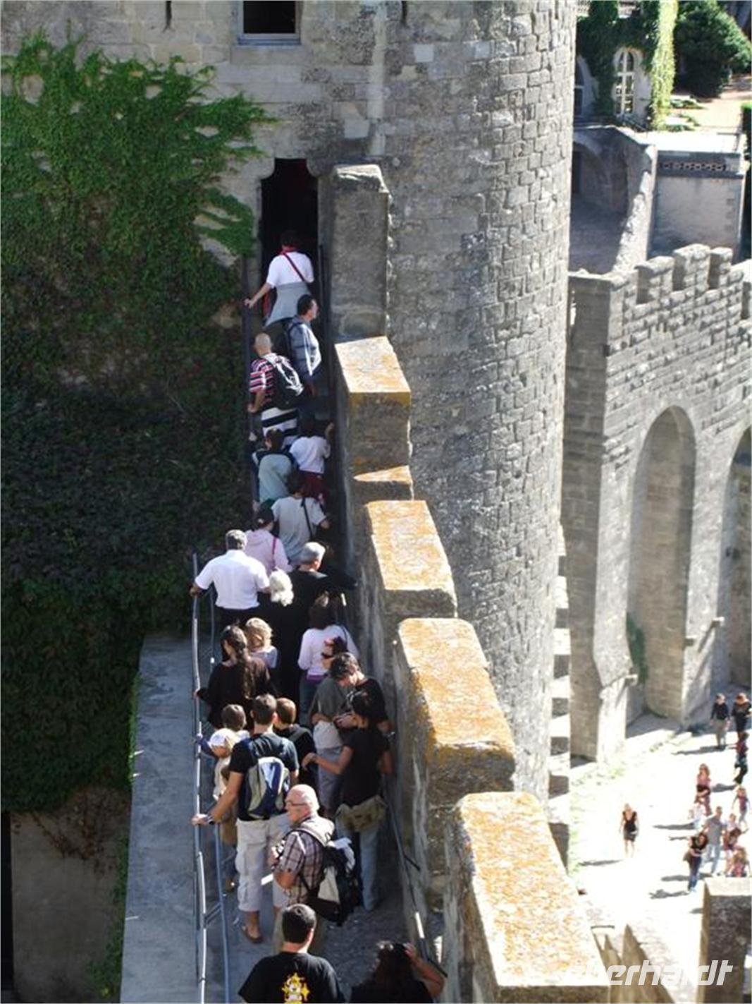 Avignon, die Stadt der Päpste während der ?babylonischen Gefangenschaft?. Der französische König hatte sich gegen Rom erfolgreicher behauptet als über 200 Jahre vorher sein deutscher Kollege Heinrich IV. In wenigen Jahren wurde Avignon Großstadt mit einem mächtigen und wehrhaften Papstpalast, gepriesen und verhasst bei den Zeitgenossen. Ein Rundgang um den Palast bietet den fleißigen Fotografen viele Motive.