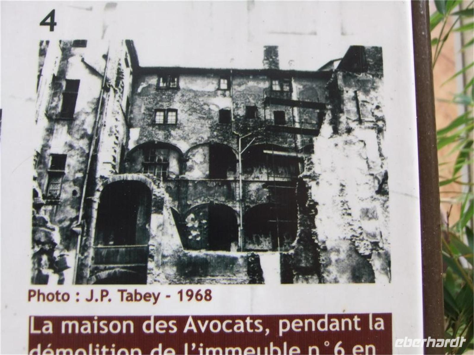 Von diesem Hügel aus, auf denen die Römer viele Spuren hinterlassen haben, erfolgte die Besiedelung zuerst bis zu Saone. Dieses Vieux-Lyon, nach dem 2. Weltkrieg ein verfallenes schmutzig-graues Viertel ist wieder ein Schmuckstück mit prachtvollen gotischen und Renaissance-Bauten geworden, dank kluger Entscheidungen, vor allem den Plänen zur Erhaltung von Flächendenkmalen des Kulturministers Malraux. Von 30.000 Seidenwebern in Lyon sind ganze 9 geblieben, einen davon besuche ich mit den Eberhardt-Gästen bei jeder Reise und er freut sich jedes Mal, uns seine Arbeit am uralten Webstuhl vorzuführen zu können.
