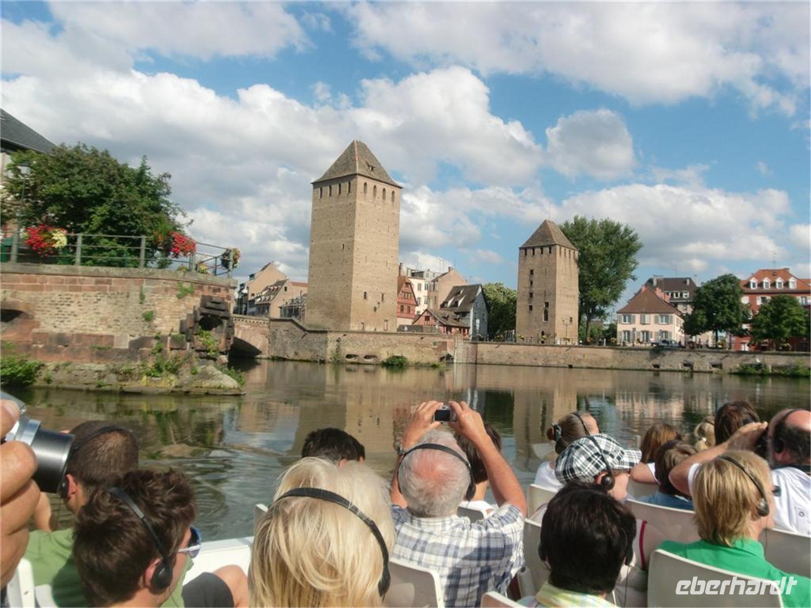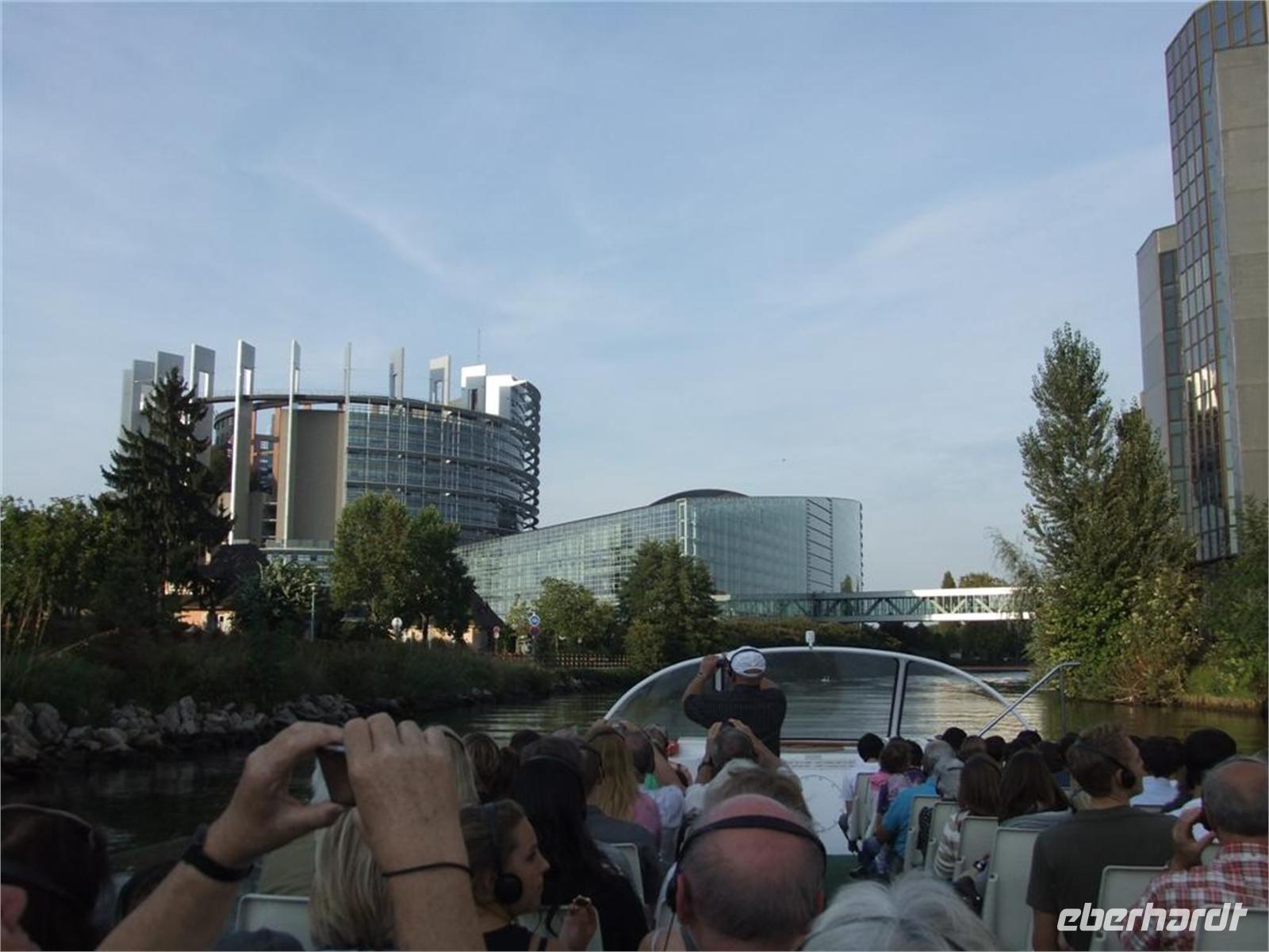 Aber schon geht es weiter, in die letzte Region der Reise, dem Elsaß. Die beste Gelegenheit zum Kennenlernen ist eine Bootsfahrt auf der Ill, den wir beim Schein der Nachmittagssonne unternahmen. Ein guter Kommentar stellte die Gebäude der Stadt und ihre Geschichte dar, einige hatten auch den Kinderkommentar in elsässischer Sprache eingeschaltet und hatten viel über manchen ulkigen Ausdruck zu lachen. Höhepunkt der Fahrt dar das Europäische Viertel mit seinen modernen Bauten am Becken der Ill. Merci vielmals.