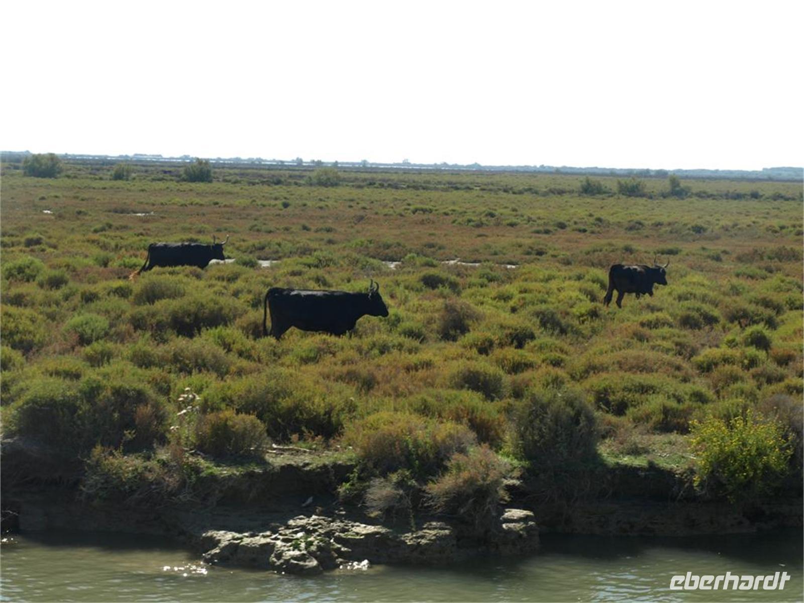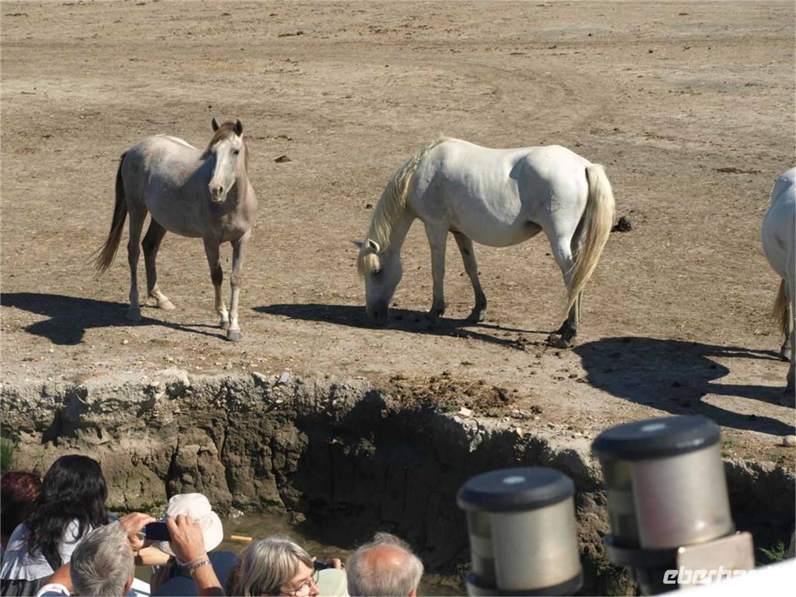 Heute geht es weiter durch die Region Languedoc und abends in die Provence. Endlich einmal die Möglichkeit, den Gästen von den vielen Möglichkeiten Südfrankreichs kleine Sehenswürdigkeiten anzubieten, die nicht im Katalog erwähnt sind: die Schleusentreppe von Fonsannes mit der Kulisse von Beziers als Hintergrund und das malerische Aigues Mortes. Ein Höhepunkt der Reise ist die Bootsfahrt auf der Petit Rhone, nachdem wir alle der Sara in der wegen der vielen Kerzen sauerstoffarmen Krypta kurz unsere Referenz erwiesen hatten. Wir sahen die einmalige Naturlandschaft, die schwarzen Stiere und die weißen Pferde der Camargue.