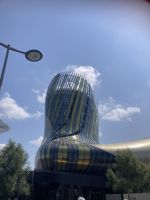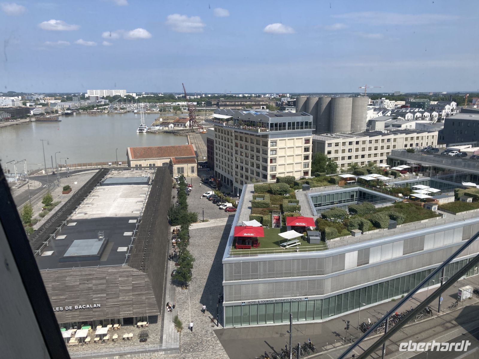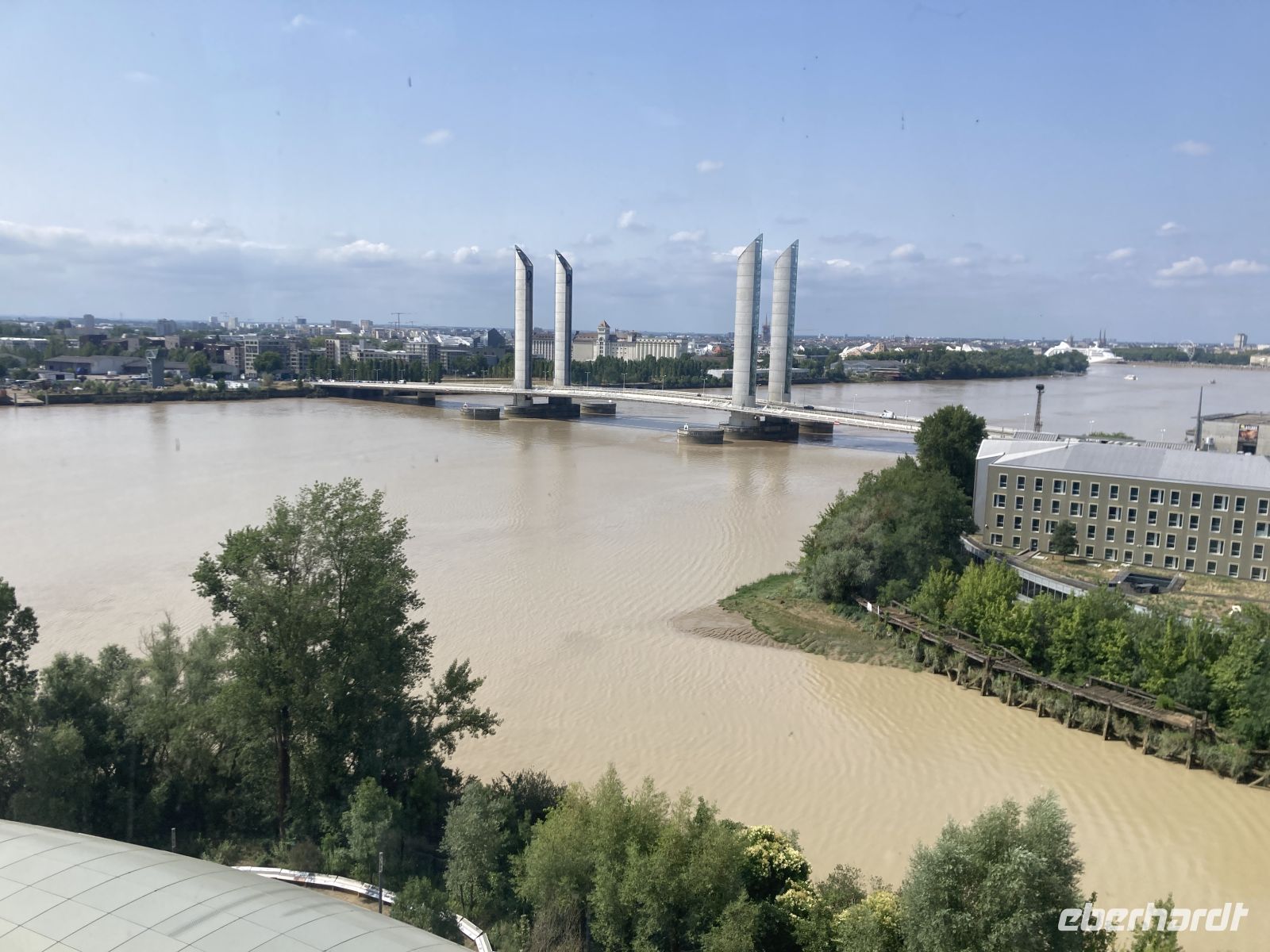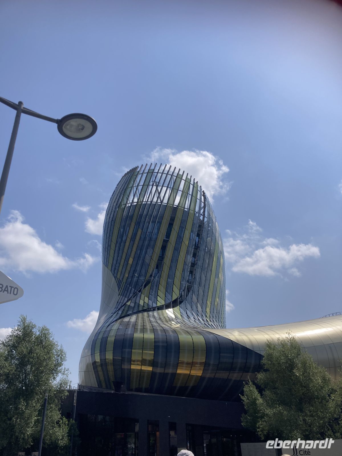 Wir verabschieden uns von unserem Schiff und fahren mit dem Bus zur Cité du Vin. Mit kleinem Gepäck werden wir heute unterwegs sein, denn wir reisen zunächst mit dem öffentlichen Nahverkehr und dann mit dem TGV. Ein Haus des Weines hat es schon länger in Bordeaux gegeben, doch die Cité du Vin ist schon allein wegen der außergewöhnlichen Architektur einen Besuch wert. Das Museum widmet sich der Geschichte des Weinbaus und der weltweiten Ausbreitung des Rebensaftes. Und tatsächlich können hier auch Weinkenner Wissenswertes erfahren. Von der Terrasse im achten Stockwerk genießen wir noch den Blick über die Stadt und die Garonne.