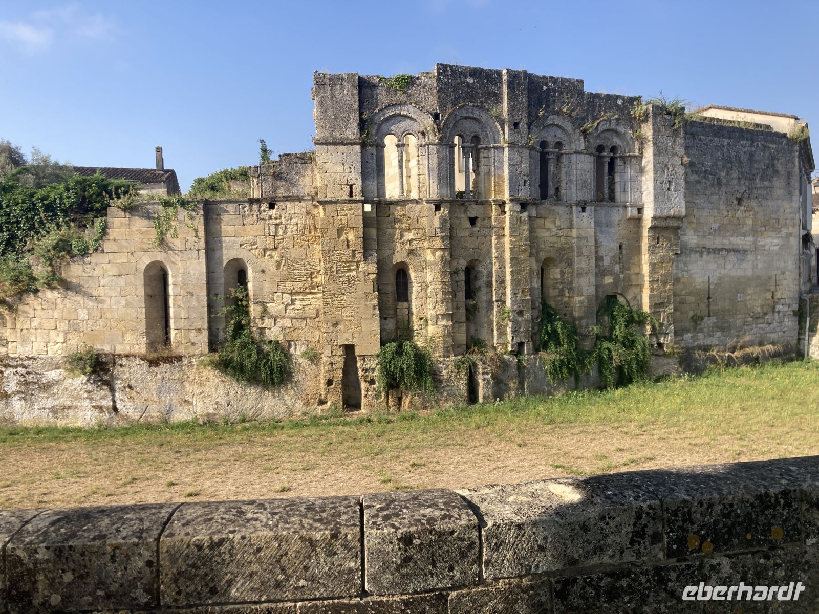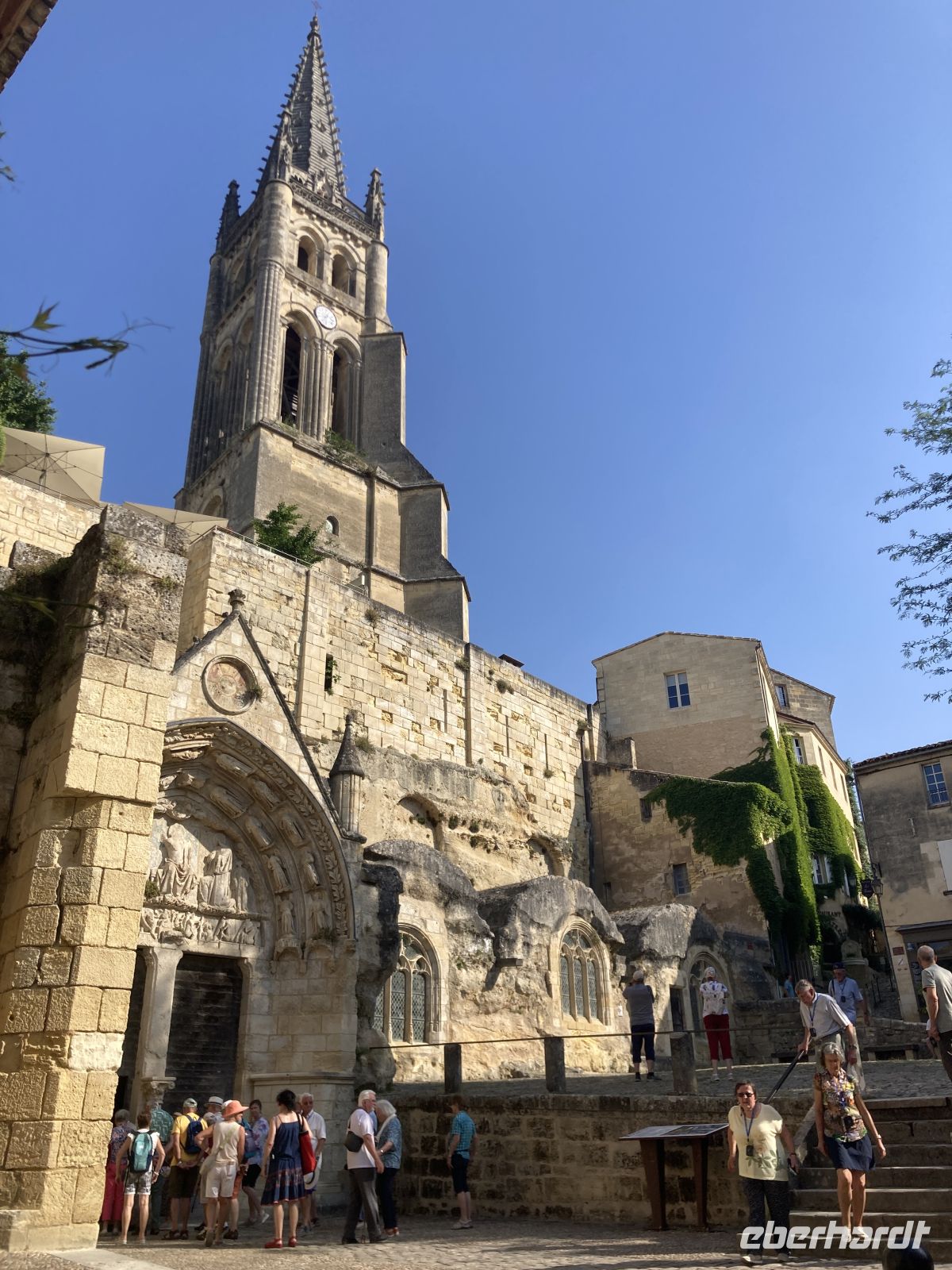 In der Nacht ist unser Schiff in Libourne angekommen. Damit haben wir unseren dritten Fluss erreicht, die Dordogne. Nach einer kurzen Fahrt mit dem Bus erreichen wir Saint-Emilion. Auf einem Felsvorsprung gelegen, ist dieser Ort nicht nur für seine ausgezeichneten Weine berühmt. Hier werden wir in das Mittelalter versetzt und finden obendrein eine Felsenkirche, die bis heute fasziniert. Im 12. Jahrhundert wurde sie im Felsen erbaut und ihre reinen Maße sind eindrücklich: Sie misst eine Länge von 38 Meter und ist 12 Meter hoch. Bis heute dient sie noch für ausgewählte Gottesdienste und Konzerte. Wieder an Bord treten wir unsere letzten Flusskilometer an. Wir werden am frühen Abend in Bordeaux anlegen.