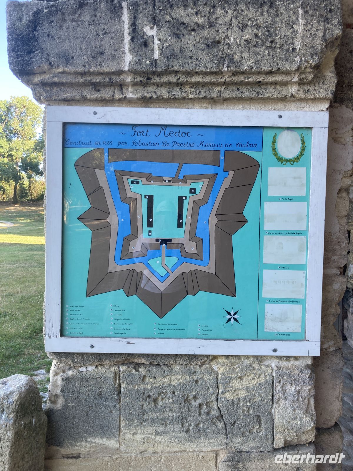 Am frühen Morgen hat unser Schiff den Anker gelichtet und ist in Richtung Cadillac gefahren. Der Vormittag steht heute ganz im Zeichen des Mittelalters und Weins. Als erstes besuchen wir das Schloss Roquetaillade. Bis heute ist dies in Privatbesitz, weshalb wir bei der Führung keine Fotos machen dürfen. Die mächtige Festung, die so manche Angriffe abwehren sollte, erlangte im 20. Jahrhundert einige Bekanntheit, da sie als Kulisse für einige Filme diente. Wir setzen unsere Besichtigungstour durch das Weingebiet fort und besuchen nun ein kleines Weingut, welches auch in privater Hand ist. Im Chateau du Mayne la Mercy werden wir vom ältesten und jüngsten Familienmitglied begrüßt und in die Besonderheiten des Sauternes eingeführt. Zum Glück haben wir heute nur einen Vormittagsausflug, denn die Temperaturen steigen nun schon deutlich über 35° und leider zeichnet sich ab, dass bei unserem Bus die Klimaanlage nicht mehr funktioniert. Nun gibt es einiges zu organisieren, denn es ist Samstag und in Frankreich arbeiten auch Notwerkstätte nicht unbedingt am Wochenende. Den kurzen Weg zum Schiff können wir allerdings problemlos in unserem Bus absolvieren und weiter geht es mit unserem gut klimatisierten Schiff. Wir fahren Fluss abwärts, unser Ziel wird das Fort Médoc in Cussac sein. Auf dem Wege lassen wir Bordeaux an uns vorbeiziehen. Dieser Stadt werden wir uns noch am Ende unserer Reise widmen. Doch zunächst gehen wir noch auf der Garonne in Cussac vor Anker.