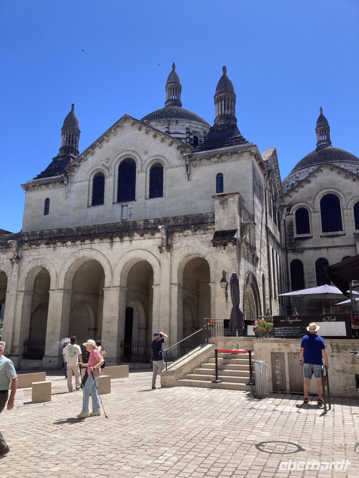 Wir konnten eine gute Nacht im Hotel verbringen und der Strom ist uns auch erhalten geblieben, so dass wir am Morgen ganz gemütlich frühstücken können. Der Vormittag steht ganz im Zeichen der Kunst. Das Museum jedoch, welches wir jetzt besuchen werden, ist kein normales Museum und schon gar kein normales Kunstmuseum. Denn auf der Zeitachse machen wir nun einen ordentlichen Sprung nach hinten. In die Jungsteinzeit wird uns unser Museumsführer zurückversetzen. Lascaux ist bekannt geworden für herrliche Wandmalereien, die deutlich zurückgehen auf 20.000 vor Christi. Heute kann man nicht mehr in die Originalhöhle gehen, denn die Wandzeichnungen leiden unter uns Besucher. Es hat schon in früheren Jahren eine Nachbildung gegeben. Doch auch diese musste geschlossen werden. Wir besuchen nunmehr Lascaux IV, wo man nicht nur die Höhle nachgebaut, sondern auch noch ein modernes Museum entwickelt hat, in dem wir die einzelnen Entwicklungsstufen dieser Höhlenmalerei mittels digitaler Technik nachvollziehen können. Wir lassen uns Zeit, um uns genau mit den Zeichnungen zu beschäftigen und die Ausstellung zu besichtigen. Der Sommer hat mittlerweile ordentlich an Fahrt aufgenommen, die Temperaturen steigen immer weiter und wir sind schon deutlich über 30 °C. Unsere Fahrstrecke ist gar nicht mehr so weit in Richtung Bordeaux, aber da wir erst ab 17:30 Uhr einchecken dürfen, verbleibt noch Zeit uns jetzt mit dieser Gegend, in der wir uns befinden zu beschäftigen. Der Weg führt vorbei an einer der wichtigen Städte in dieser Gegend nämlich Périgueux. Grund genug eine kleine Pause einzulegen. Schließlich befinden uns in der Hauptstadt des Périgiord. Feinschmecker ist natürlich dieser Ausdruck ein Begriff, steht er doch für Trüffel, Pasteten und gutes Essen im Allgemeinen. Einige kennen vielleicht auch einen gewissen Bruno, der hier im Périgiord ermittelt. Wir statten zunächst der Kathedrale Saint-Front einen Besuch ab. Schon von Weitem konnten wir diese Kathedrale erblicken mit ihren zahlreichen Türmchen und Laternen - ein Ensemble, welches so gar nicht in diese Region zu passen scheint. Ein Hauch von Byzanz umrankt diesen Bau und ein Superlativ ist er oben drein. Es handelt sich nämlich um die größte Kathedrale des Südwesten Frankreichs. Aber auch die Altstadt rund um die Kathedrale ist außergewöhnlich. Bereits in den 1970er Jahren wurde sie zum nationalen Kulturdenkmal erhoben. Heute sind fast alle historischen Bauten renoviert beziehungsweise wieder aufgebaut. So zeigt sich Périgueux mit wunderbarem intakten Stadtbild. Nach der Besichtigung der Kathedrale gilt unser Interesse einem Eis. Wir finden eine schöne Eisdiele, die auf der gegenüberliegenden Seite Plätze im Außenbereich hat. Im Schatten unter einer Pergola aus Wein und Kiwi genießen wir die kühle Speise. Gestärkt und erfrischt, nehmen wir die letzten Kilometer in Angriff und glücklicherweise hält sich der Verkehr auf unserer Seite, also hinein nach Bordeaux in Grenzen. Wir erreichen pünktlich das Schiff. Während sich die Crew um das Gepäck kümmert, nehmen die Gäste in der Lounge Bar Platz. Nach einem Getränk ist der Checkin schnell erledigt und nun können die Kabinen bezogen werden. Heute Abend geht es noch gemütlich zu, denn wir werden erst in den Morgenstunden unseren Liegeplatz verlassen. Mit unserem Abendessen und einem Gläschen an Deck oder an der Bar klingt unser erster Abend hier an Bord unseres Schiffes aus.