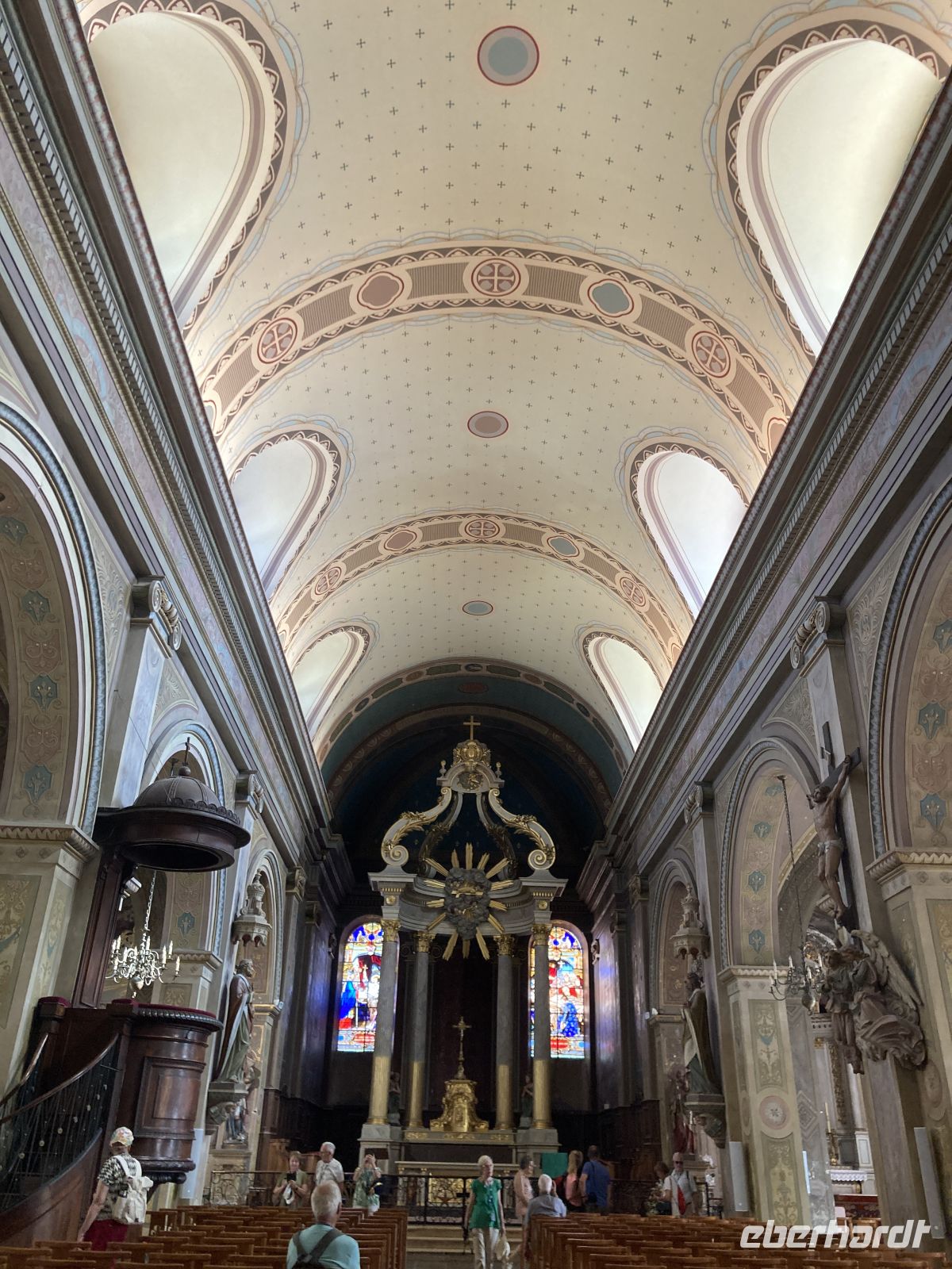 Eigentlich planten wir den Besuch der Königlichen Saline. Der Architekt Claude-Nicolas Ledoux durfte unter Ludwig XVI einen industriellen Gebäudekomplex entwerfen, der dem Salzabbau die Tür für eine neue Herstellung öffnete. Ledoux plante aber weit mehr als nur einen industriellen Abbau des weißen Goldes. Er wollte nichts Geringeres schaffen, als eine ideale Stadt. Bedauerlicherweise konnten seine Pläne nicht in Gänze umgesetzt werden - die Französische Revolution beendete die Träume des Architekten. Für uns bleiben aber die Türen verschlossen. Es muss sich wohl hoher Besuch angekündigt haben, denn ausgerechnet heute ist die Saline geschlossen. Wir wurden jedoch darüber in Kenntnis gesetzt und konnten eine Alternative organisieren. Da wir durch das schöne Burgund fahren, bietet sich eine Weinprobe an. Nun hätten wir dies auf den sehr bekannten Routen machen können, doch uns zieht es in die schöne Landschaft des Südburgund, in der Nähe von Chalon-sur-Saône. Zwei Geschwister haben ihre Flächen auf Bioanbau umgestellt. Wir erfreuen uns an der besonderen Lage, denn die Anhöhe eröffnet einen herrlichen Weitblick. Wir erfahren einiges über die Besonderheiten aber auch der Schwierigkeiten des Anbaus. Natürlich bleibt es nicht nur bei der Theorie. Wir dürfen die Produkte aus dem Keller probieren und zum Getränk gesellen sich dann noch die herzhaften Spezialitäten dazu, für die das Burgund bekannt ist. Wir könnten hier natürlich noch länger verweilen, aber einige Kilometer Fahrt warten noch auf uns. Bevor wir am Abend zu unserem Hotel kommen, statten wir dem Ort Paray-le-Monial noch einen Besuch ab. Die Basilika Sacré-Coeur ist nicht nur ein Prachtwerk der Romanik, sie ist auch eine Nachbildung der mächtigen Abtei von Cluny, jedoch im viel kleineren Maßstab. So schön es im Burgund auch ist, wir müssen weiter, unser Tagesziel fest im Blick. Der Wetterbericht hatte uns schon darüber informiert, dass im Großraum Paris und im Großraum Lyon, schwere Unwetter tobten. Wir jedoch bekamen davon bislang gar nichts ab. Dies sollte sich aber bei der Ankunft in unserem Hotel ändern. Bei meinem Anruf im Vorfeld war eigentlich noch alles in Ordnung. Doch kaum waren wir aus dem Bus ausgestiegen, erfuhr ich, dass es im gesamten Ort keine Elektrizität gibt. Nun mag das auf dem ersten Blick gar nicht so dramatisch erscheinen, doch auch in diesem Hotel gibt es elektronische Key Cards, um in die Zimmer zu kommen. Natürlich funktionieren diese ohne Strom nicht. Wir deponieren also unsere Koffer und verlagern unseren Checkin auf einen späteren Zeitpunkt. Das Restaurant, in dem wir essen wollten, befindet sich nur einige Meter von unserem Hotel entfernt und ich erfahre, dass dort mit Gas gekocht wird. Was für ein Glück! Der Koch und Patronen des Restaurants ist dennoch ziemlich unglücklich und hofft, dass alles zu unserer Zufriedenheit sei. Hinsichtlich der Getränke gebe es keine Probleme, nur beim Bier sein man sich unsicher. Schließlich sei die Kühlkette unterbrochen. Einer unserer Gäste testet das Bier. Es wird als gut trinkbar befunden und so können wir neben Wein und Wasser auch Bier bestellen. Es dauert nicht lange und schon steht das Essen bei uns auf dem Tisch. Und dann stellt sich auch wieder der Strom ein und unsere Zimmertüren lassen sich öffnen. Einmal mehr wird deutlich, wie abhängig wir von Strom sind.