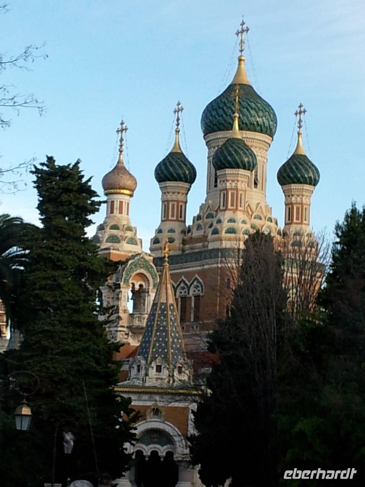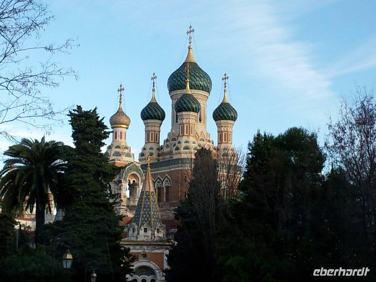Wir trafen zum ersten Mal Viola Hegent, sie wird unsere örtliche Reiseleiterin für die nächsten Tage sein. Sie erwartete uns heute zu einem Halbtagesausflug in das Hinterland der Cotê d´Azur, zu den Orten, die vor allem für Kunstinteressierte einen klangvollen Namen darstellen. Der Busfahrer ist extra für uns einen anderen Weg gefahren damit wir erstmal die russische Kirche, eine der schönsten russischen Kirchen außerhalb Russlands, bestaunen konnten. Auf der Autobahn war links das Meer und rechts Schnee auf den Alpen.