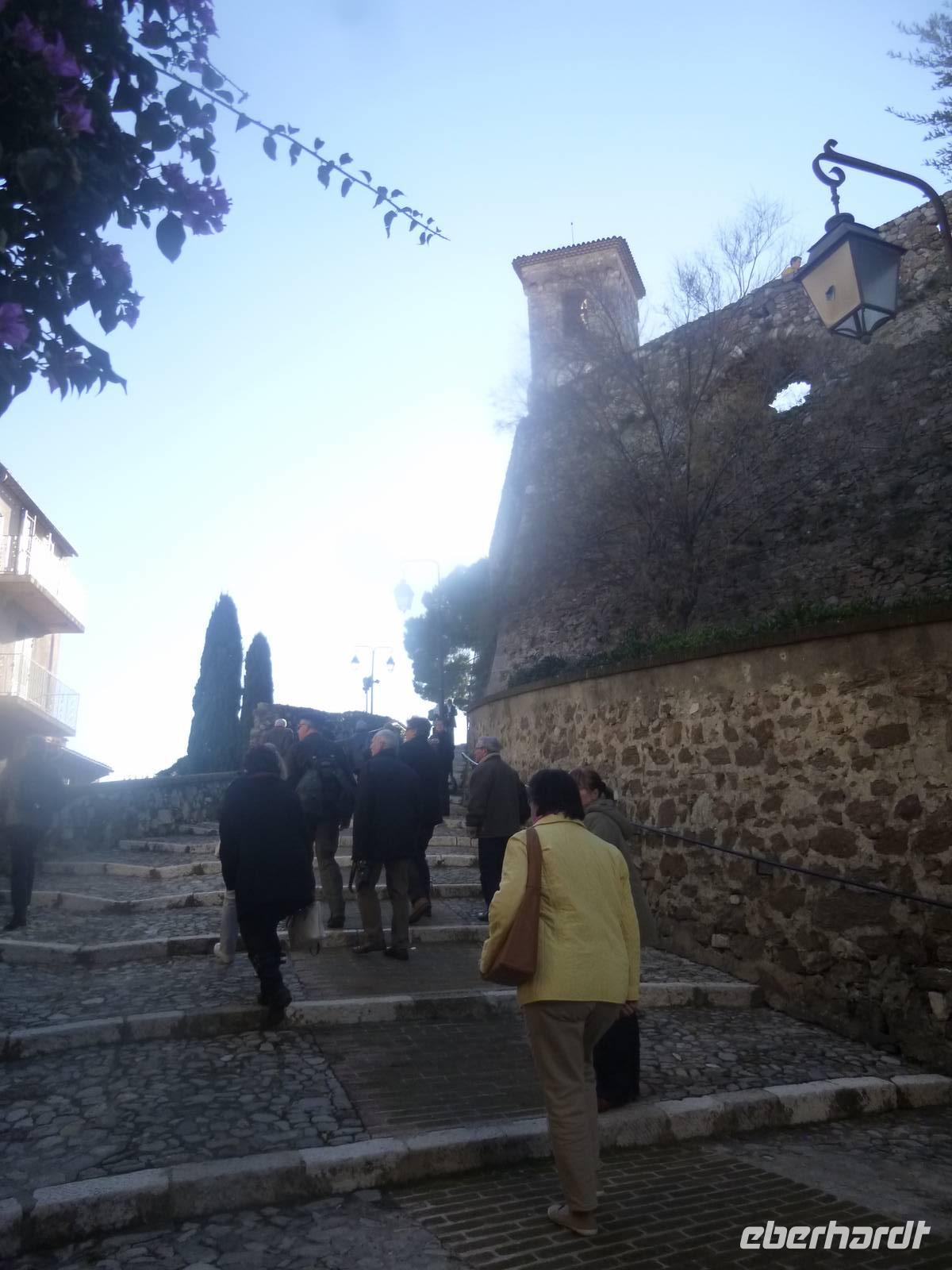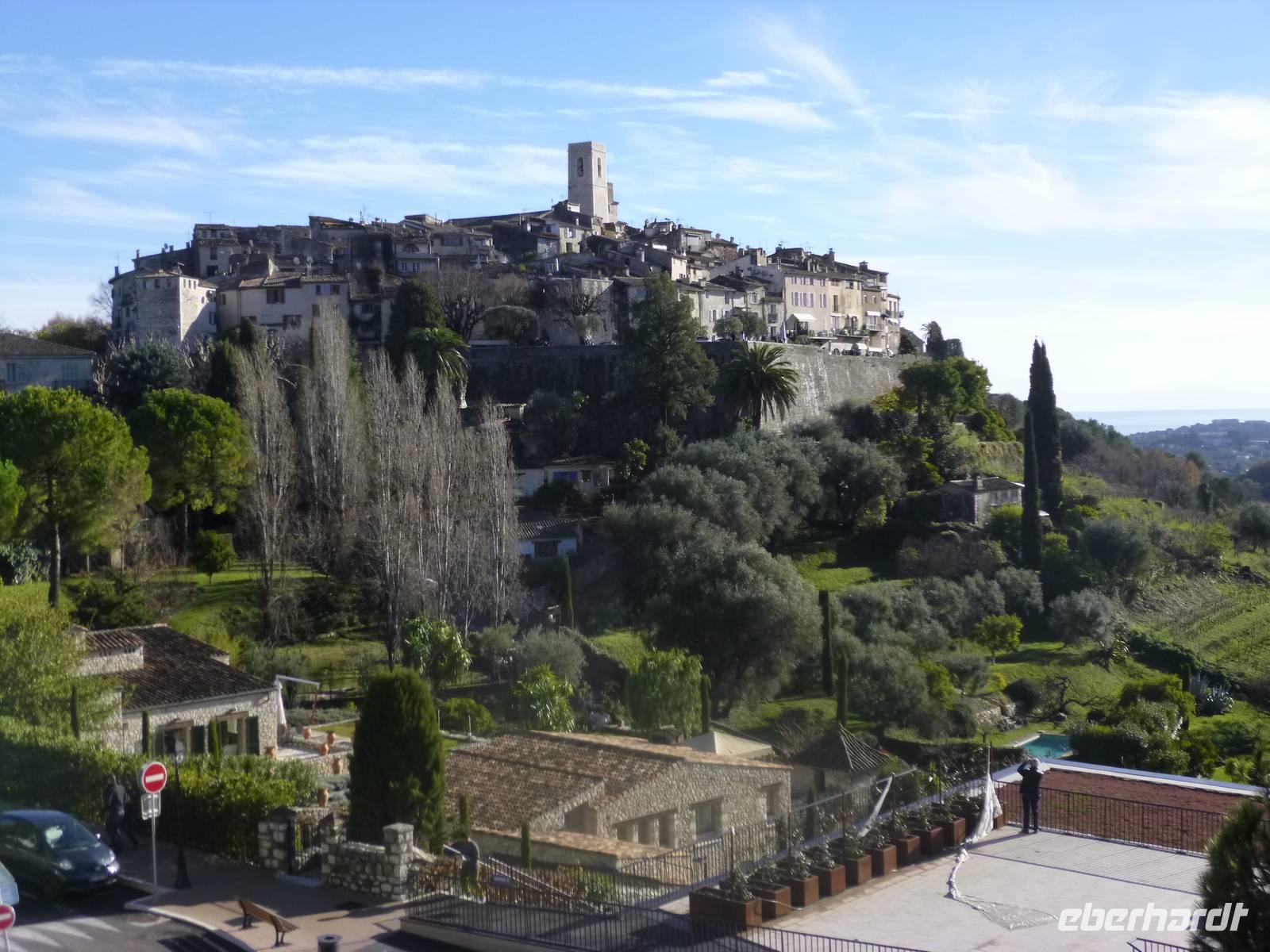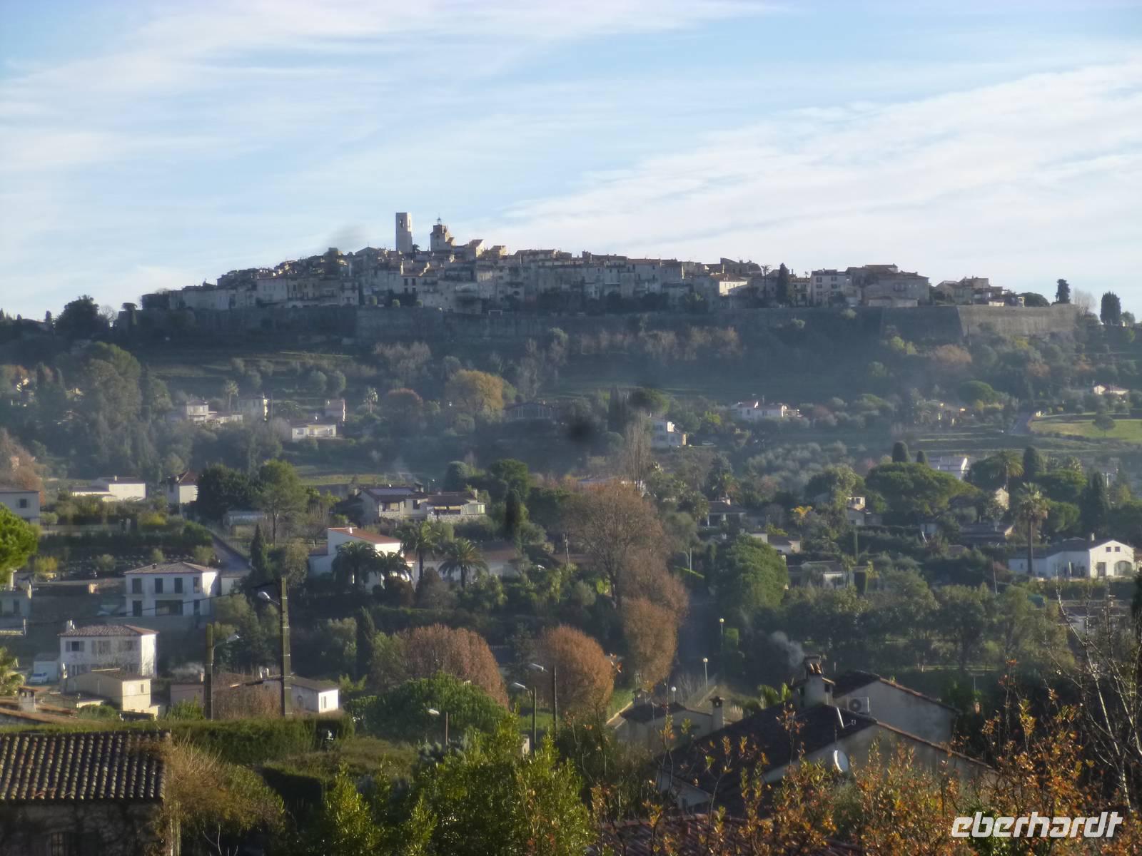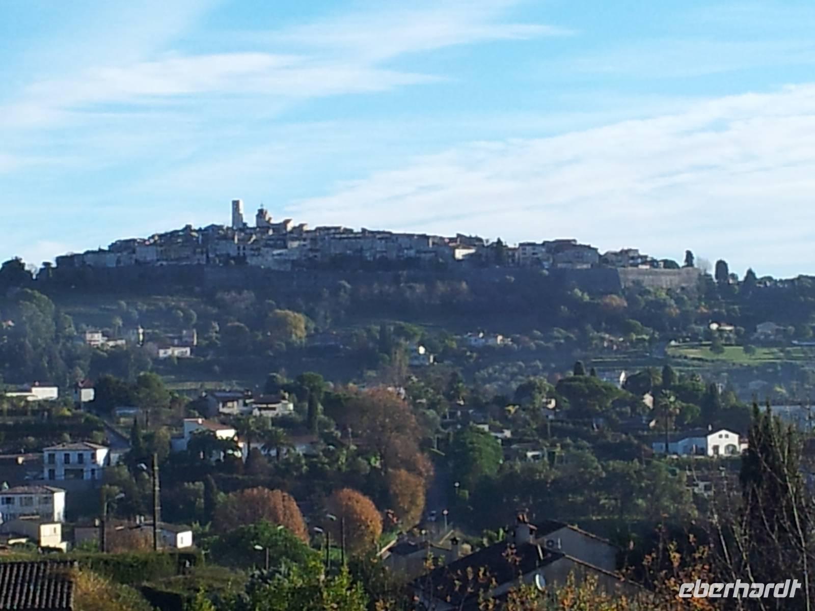 Um 11:15 Uhr gingen wir zu Fuß zum St. Paul de Vence durch kleine enge Gassen. Die Kopfsteinpflasterstrassen und die Ringmauer sind eine Attraktion für sich. In Vence haben sich zahlreiche Künstler niedergelassen, um ihre Werke zu präsentieren und zu verkaufen. Wir unternahmen einen Bummel durch die Altstadt, die durch ihre wunderschöne Stadtmauer besticht. Das phänomenale Kunsterbe von St. Paul de Vence zog bereits den russischen Maler Marc Chagall in seinen Bann, der hier auf dem interkonfesionellen Friedhof begraben ist und welches Grab wir besichtigten.