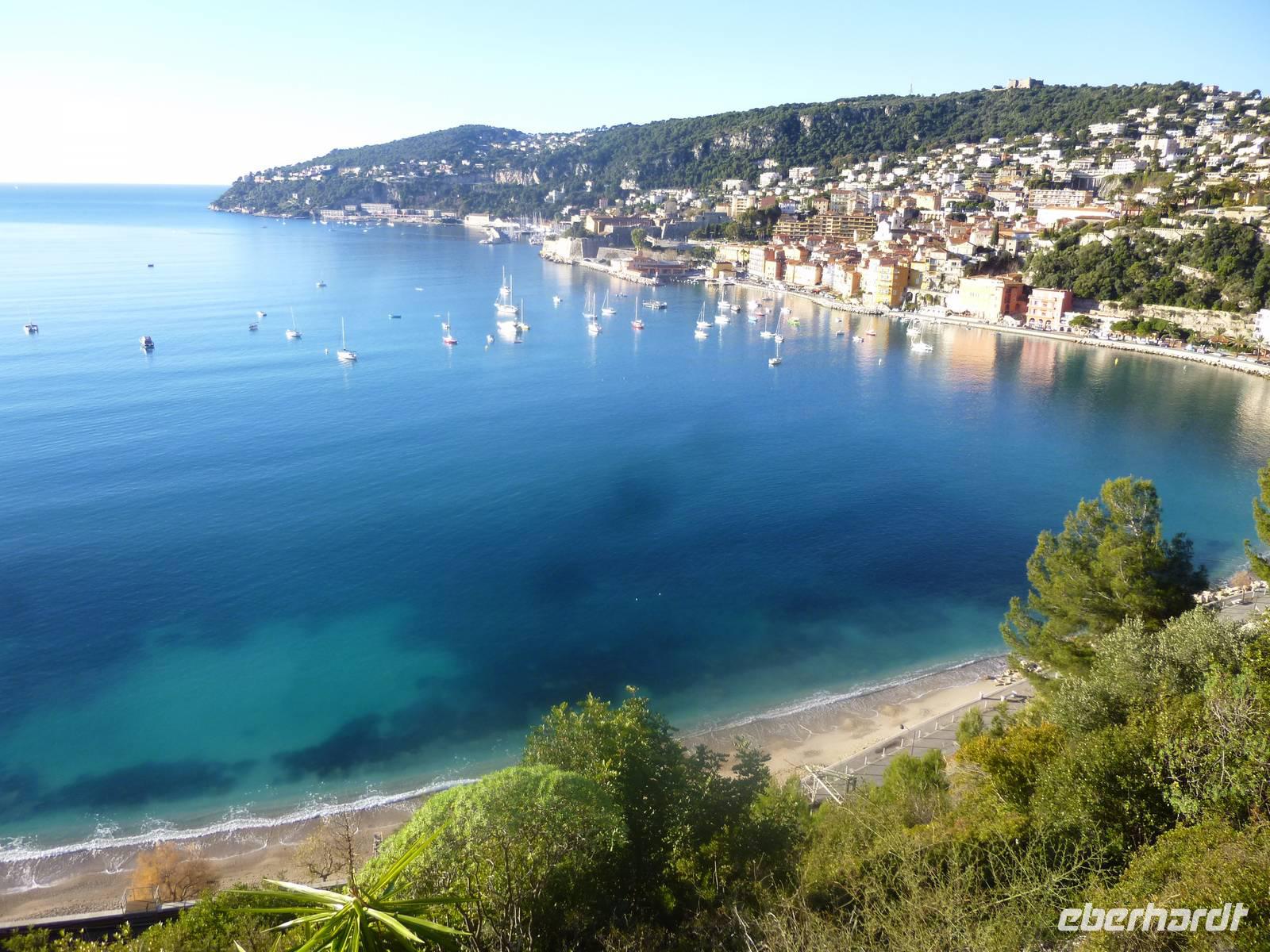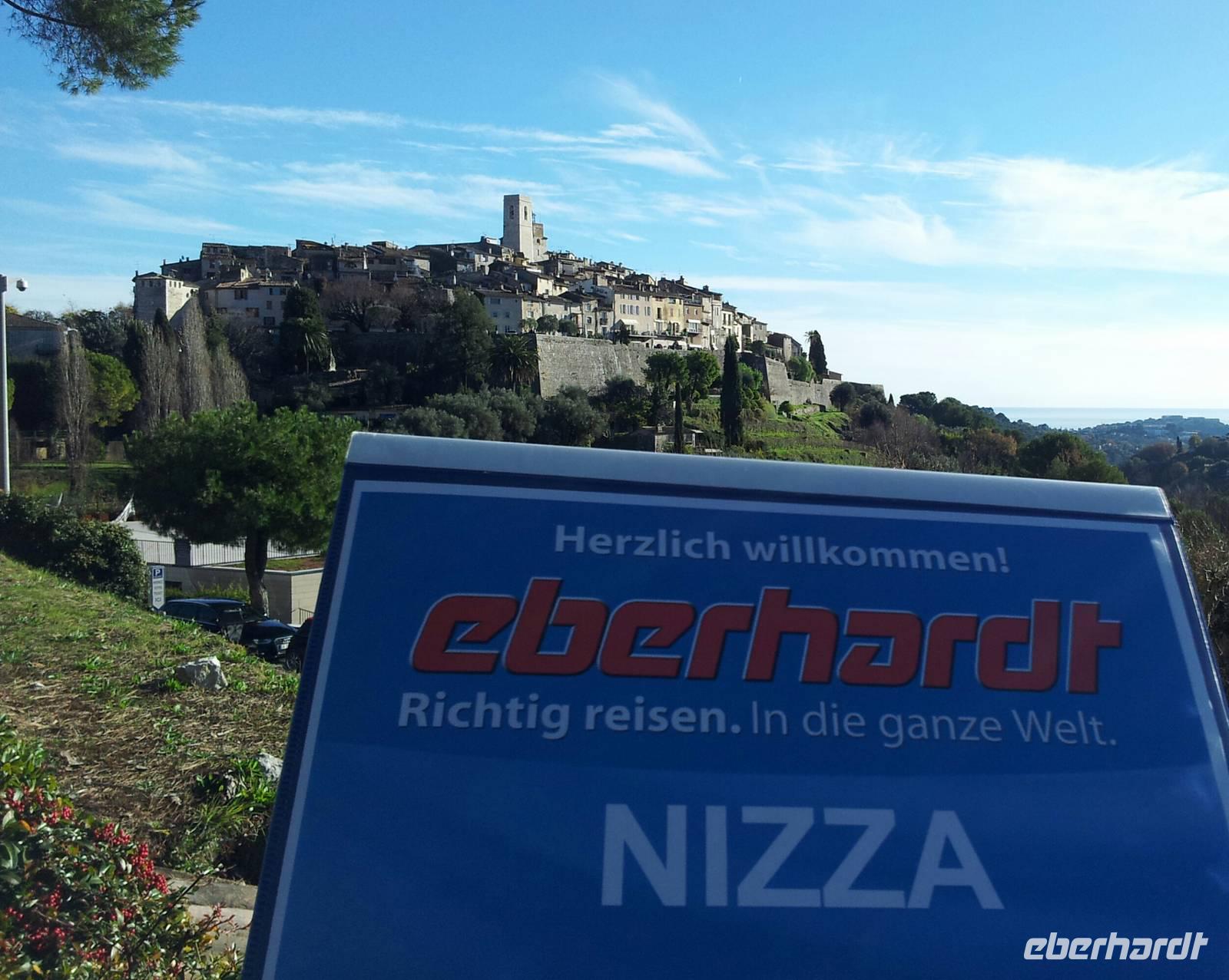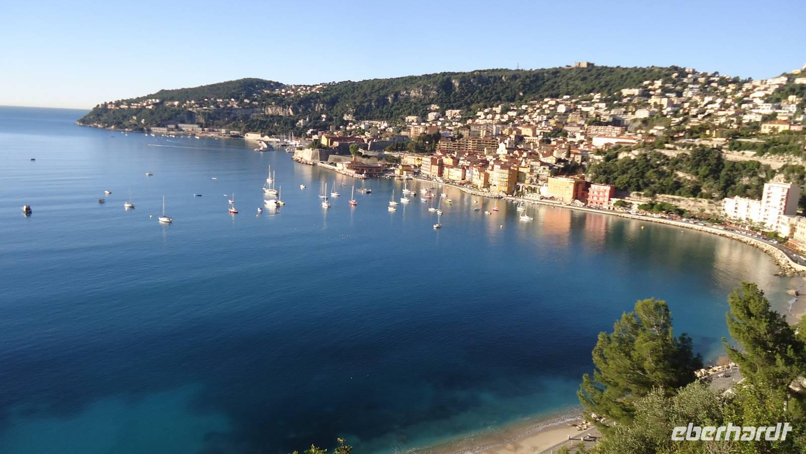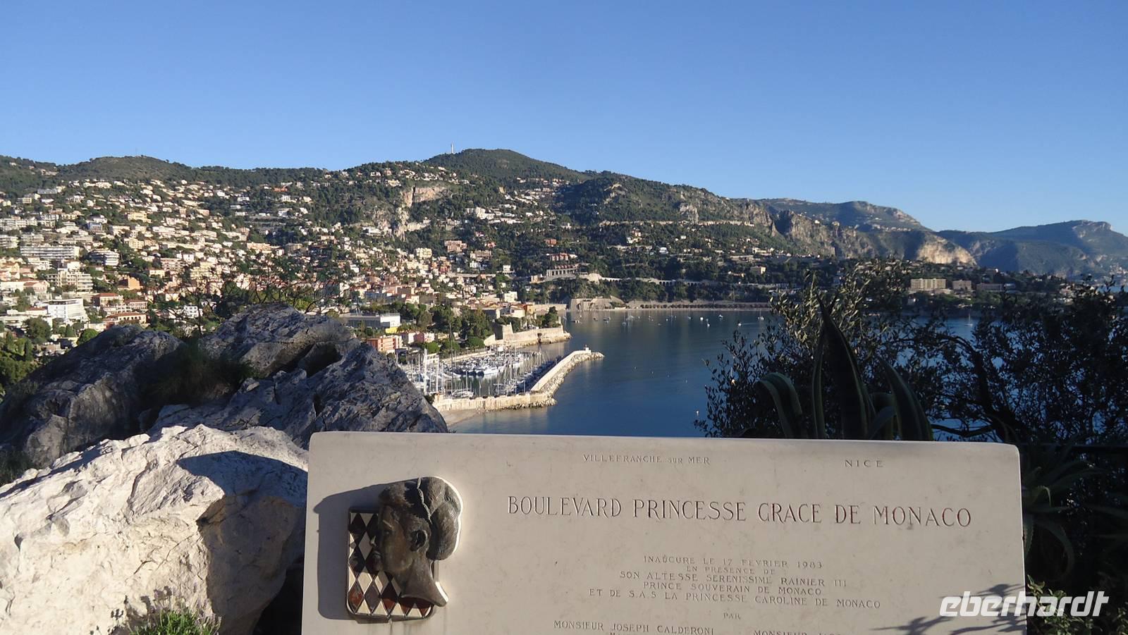Auf dem Weg machte Emily, unsere Busfahrerin, zwei Foto-Stopps mit wunderschönen Aussichten auf Nizza und auf die Côte d´Azur. Die Villen und Häuser von Sir Elton John, U2, Tina Tuner und anderen berühmte Persönlichkeiten befinden sich um uns herum.