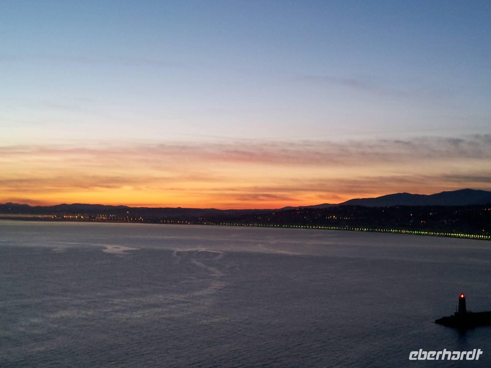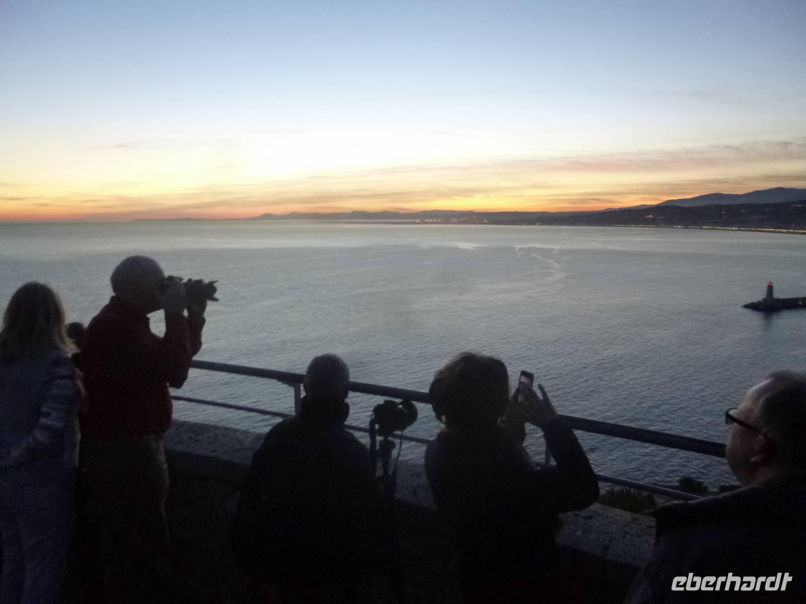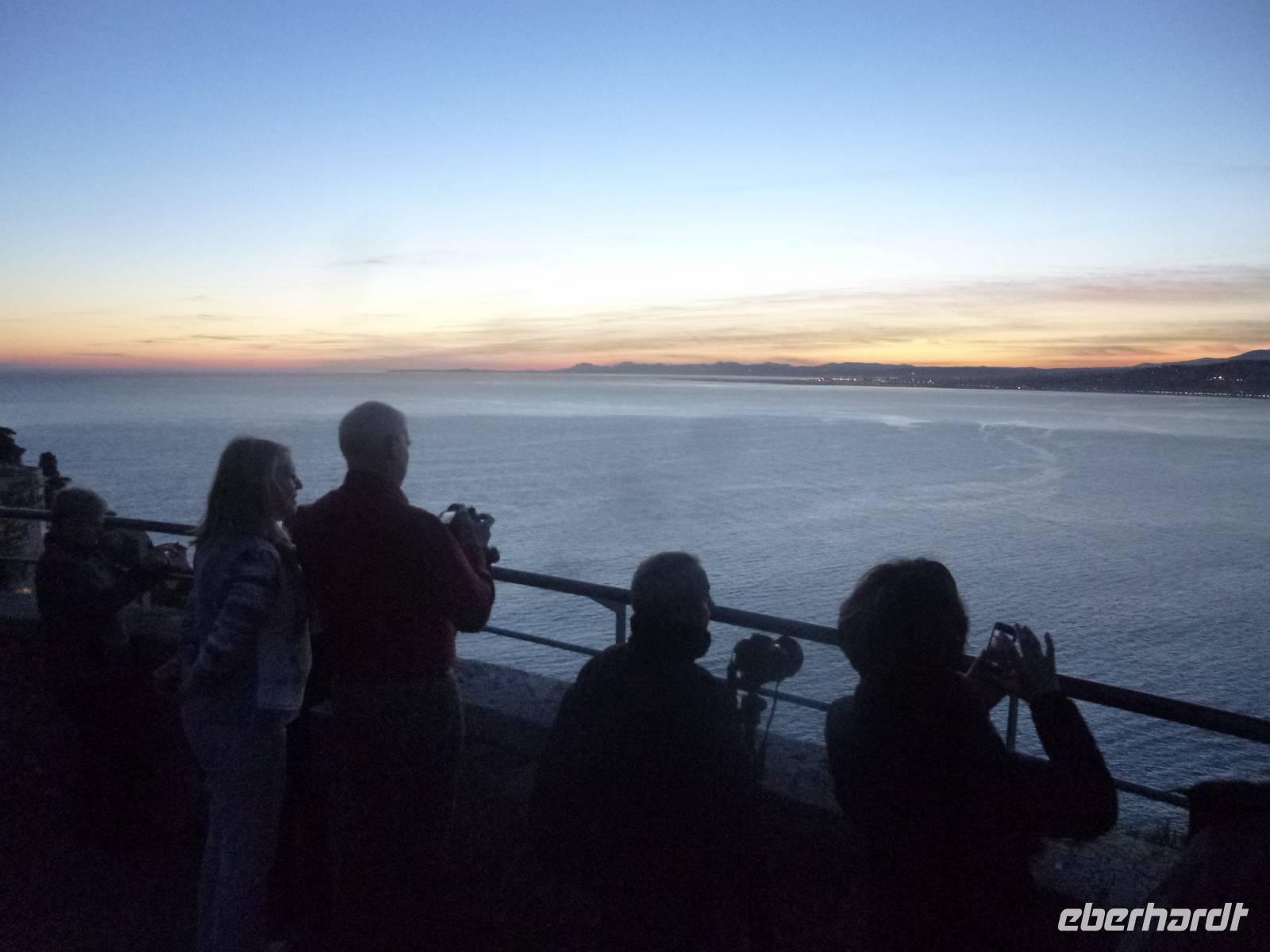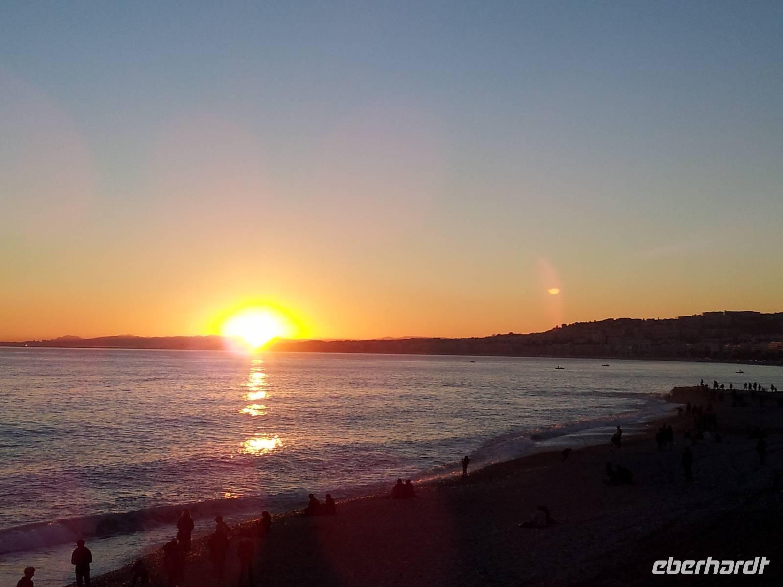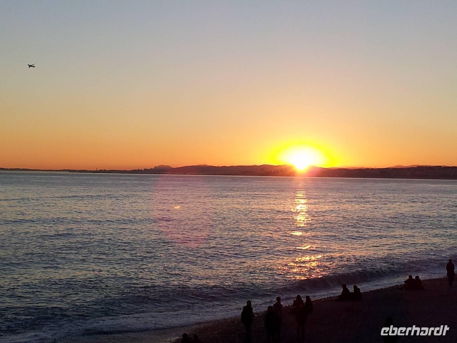 Um kurz vor 17 Uhr trennten wir uns in 2 Gruppen: Die mit Viola zurück ins Hotel wollten und die, die mit mir ans Meer und entlang der „Promenade des Anglais" noch schlendern und spazieren gehen wollten. Wir genossen einen herrlichen Sonnenuntergang.