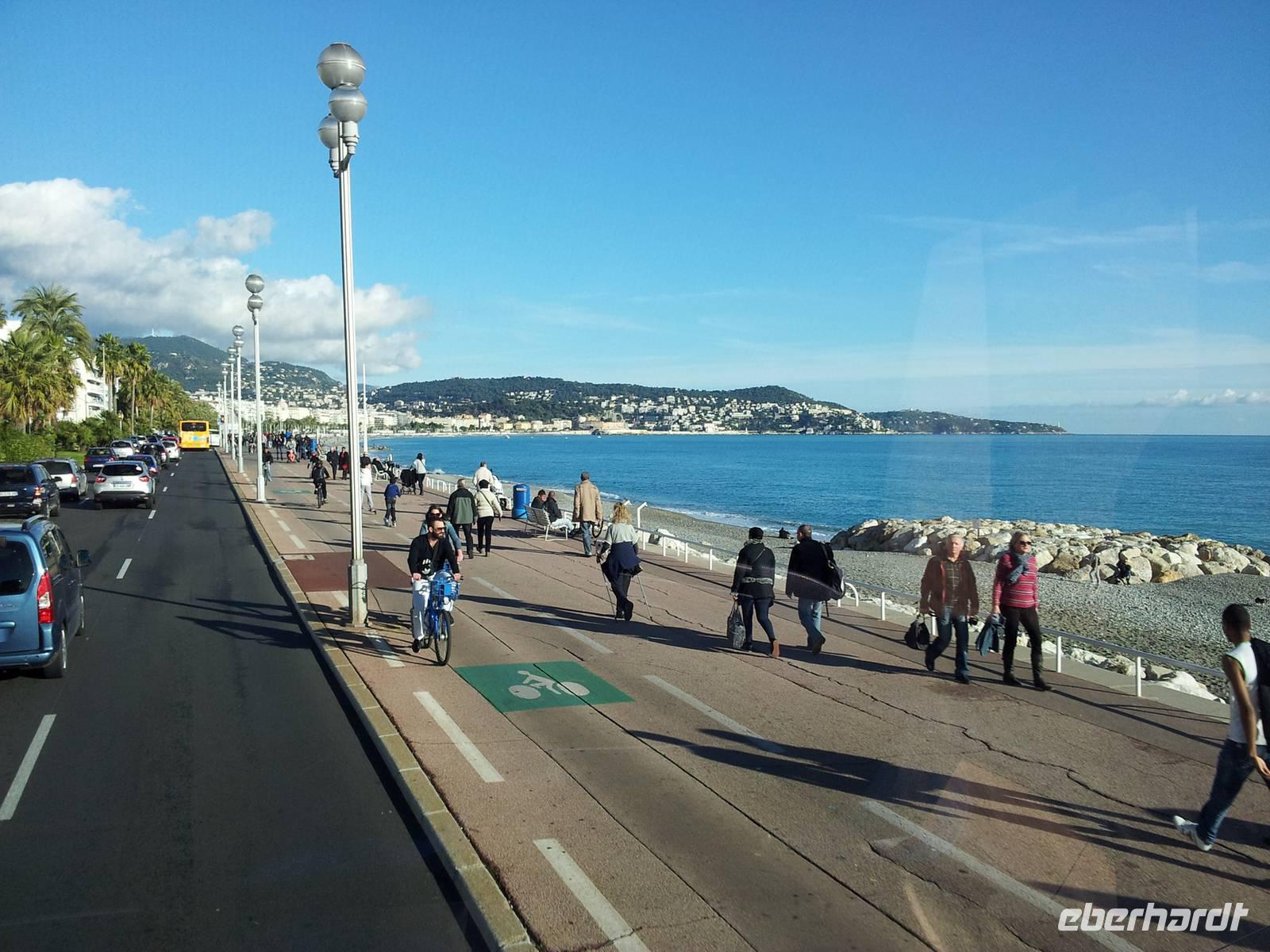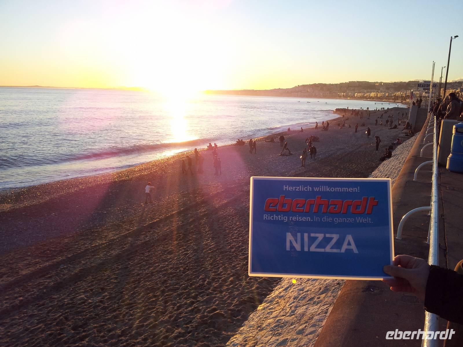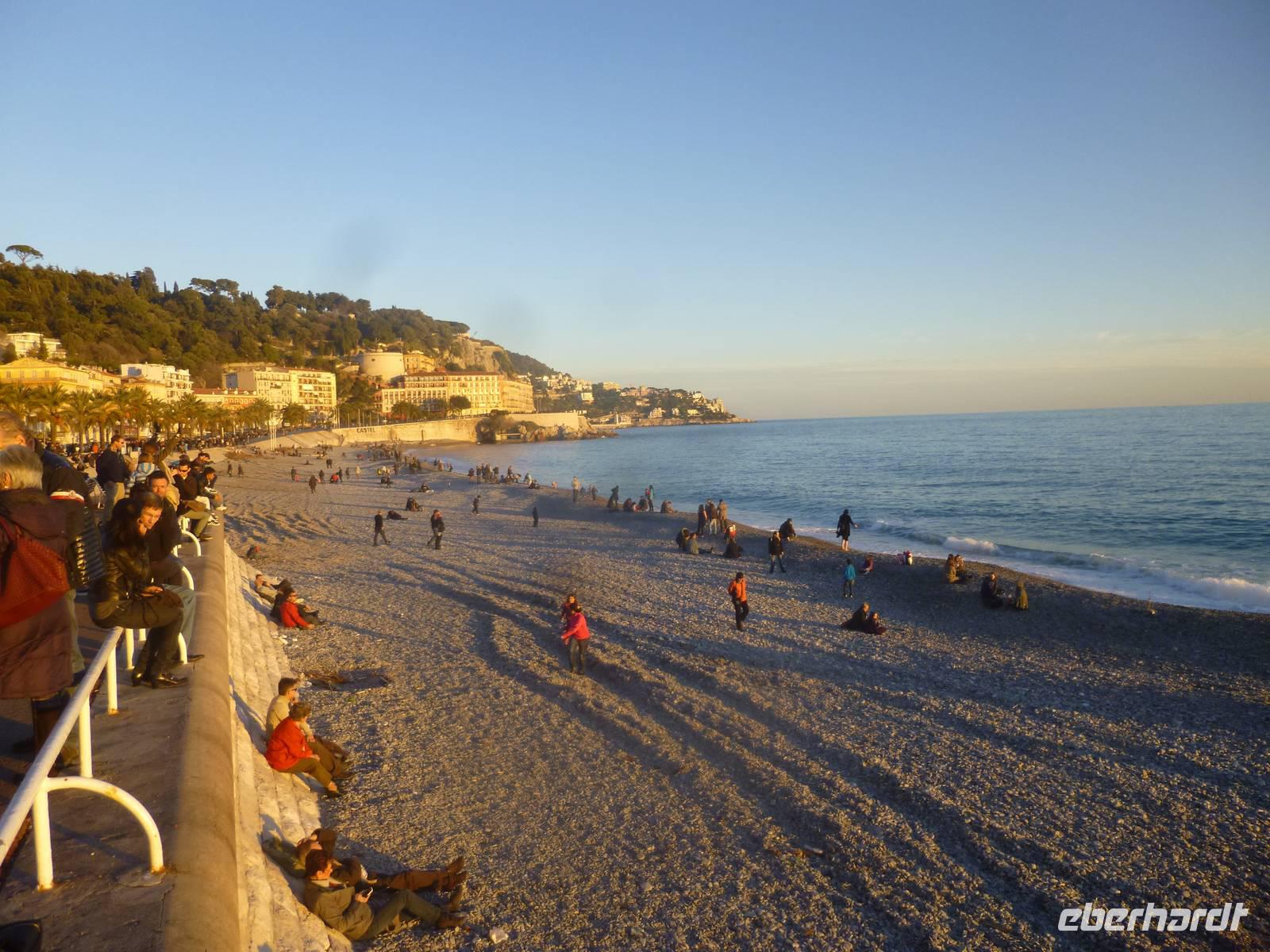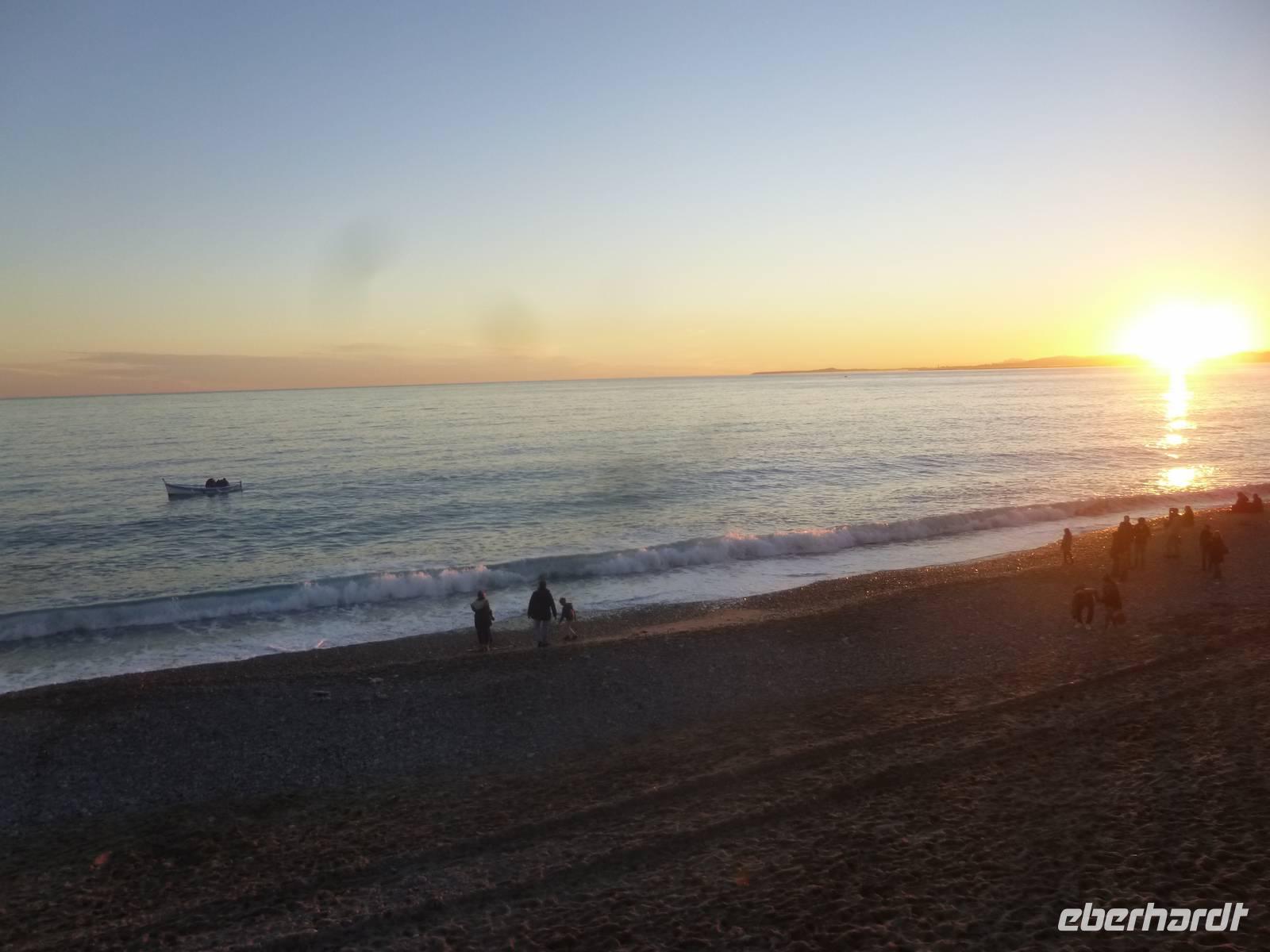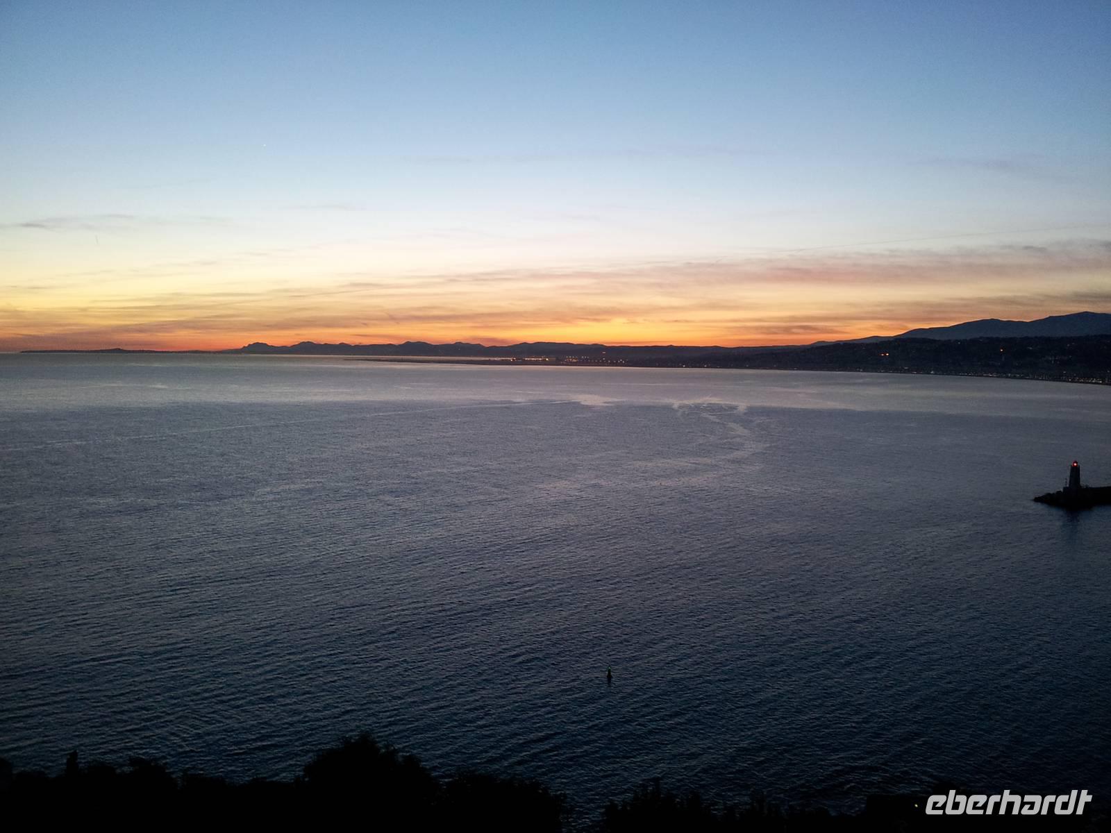 Um kurz vor 17 Uhr trennten wir uns in 2 Gruppen: Die mit Viola zurück ins Hotel wollten und die, die mit mir ans Meer und entlang der „Promenade des Anglais" noch schlendern und spazieren gehen wollten. Wir genossen einen herrlichen Sonnenuntergang.