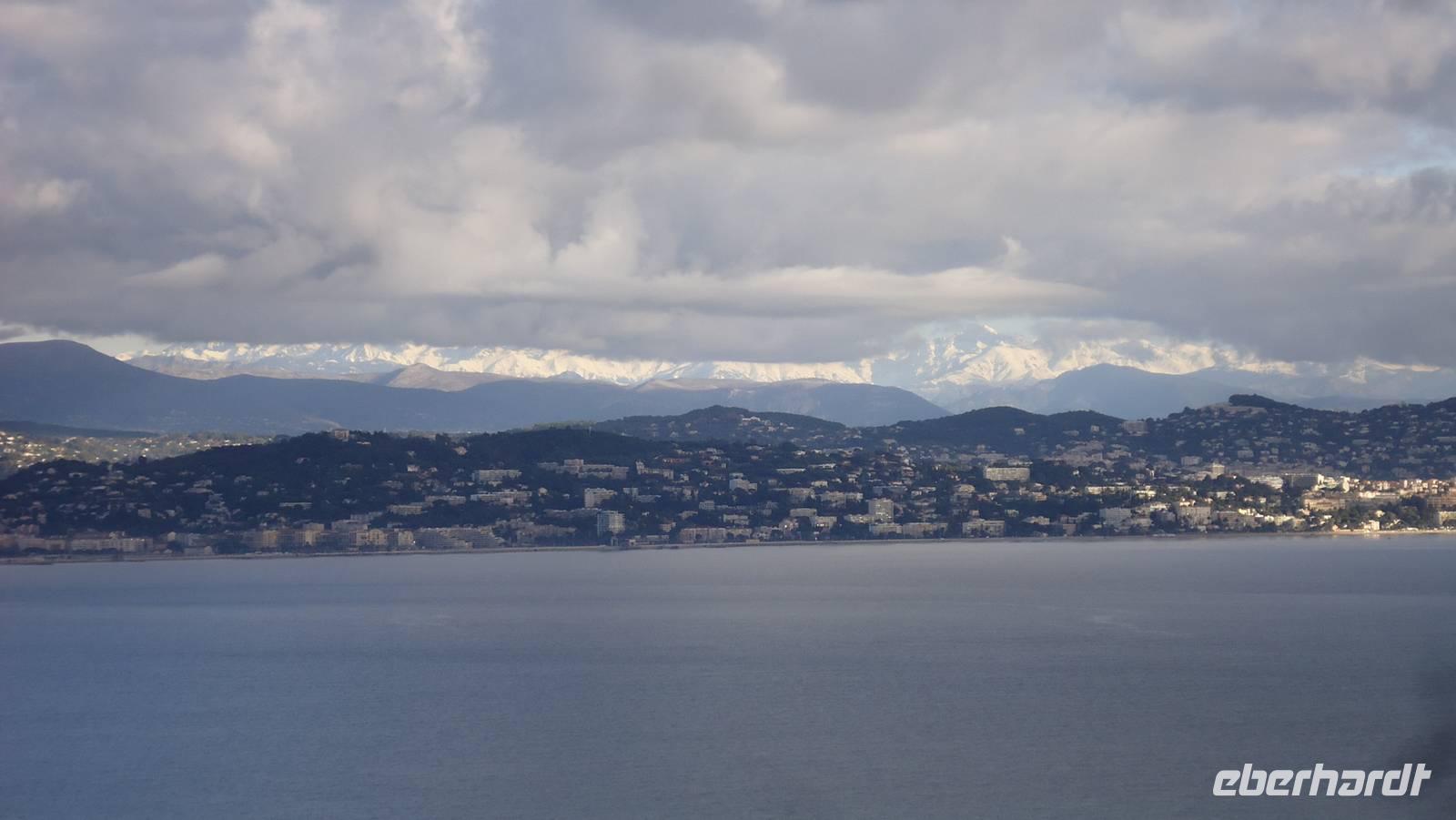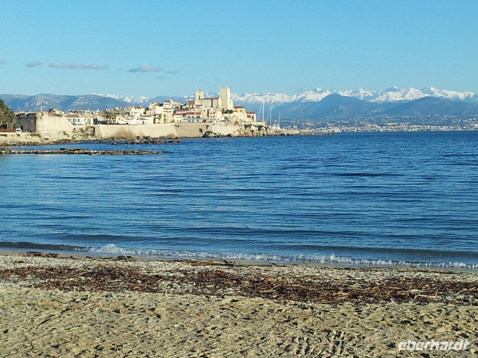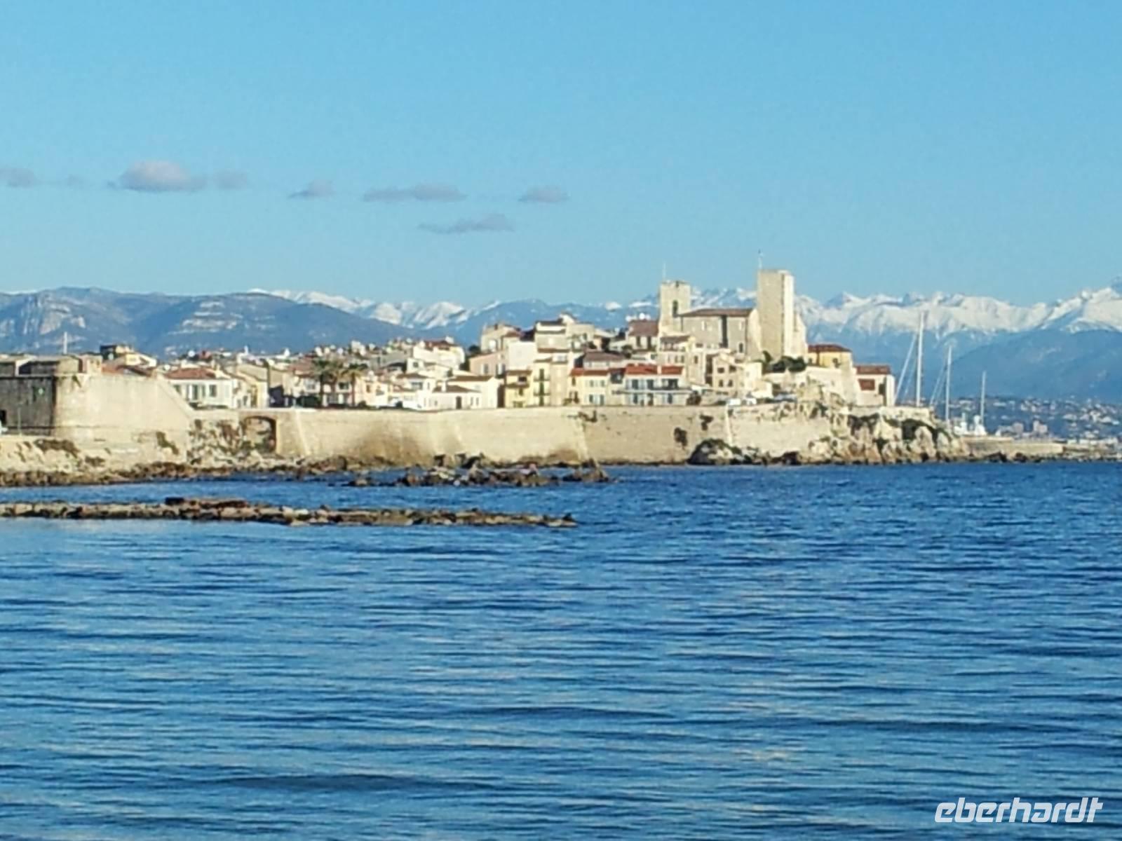 Wir fuhren am Meer entlang, an der Küste, über Port D´Antibes, ein wunderschöner Tag mit Sonne und ein besonderes Licht vom Dezember. Wir machten einen kurzen Stopp in Antibes mit Blick auf die Festung und die See-Alpen voll mit Schnee. Herrlich!