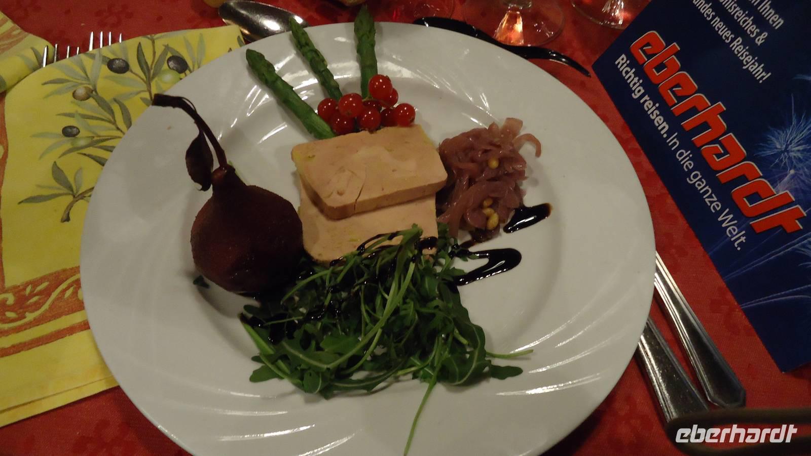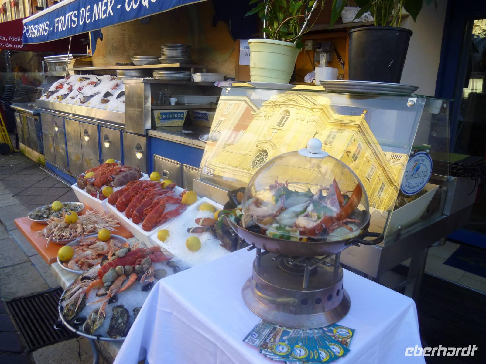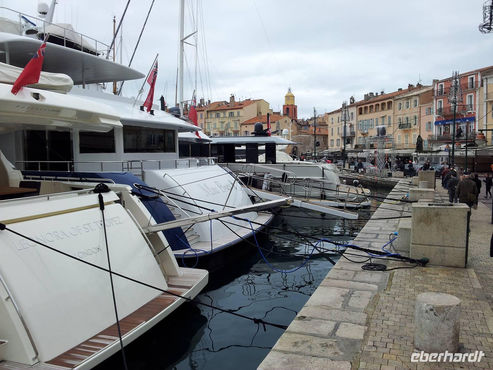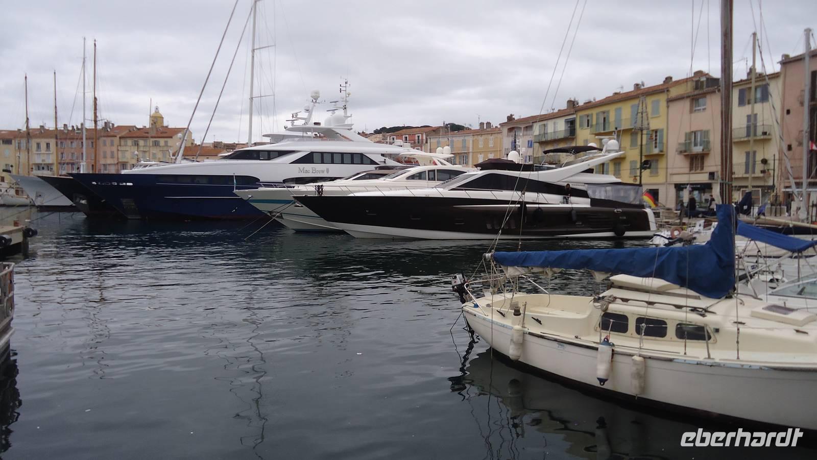 Nach einer Toiletten-Pause fuhren wir weiter entlang der Küste über St. Raphael und St. Maxime nach St. Tropez wo wir um 13 Uhr ankamen. Hier hatten wir mit Viola einen Stadtrundgang durch die kleinen Gassen. Malerisch präsentierte sich der kleine Hafenort seinen Gästen. Wir hatten das Glück und die Gelegenheit mit Viola die Hauptstadt des Dolce Vita zu Fuß zu erkunden. Nach einer kleinen Pause zum Mittagsessen, fuhren wir um 15 Uhr wieder zurück nach Nizza wo wir schon um 17 Uhr ins Hotel waren. Wieder entlang der Küstenstrasse und des Esterelgebirges mit seinem eindrucksvollen rötlichen Felsen ging die Reise zurück nach Nizza wo wir ein Abschlussabendessen in Bistro Romain genossen. Als Vorspeise hatten wir italienischen Parmaschinken, ganz gut geschnitten, und als Hauptgericht Lachs mit italienischem Risotto, die mir persönlich ganz gut geschmeckt hat. Nachtisch war auch einfach wieder lecker.