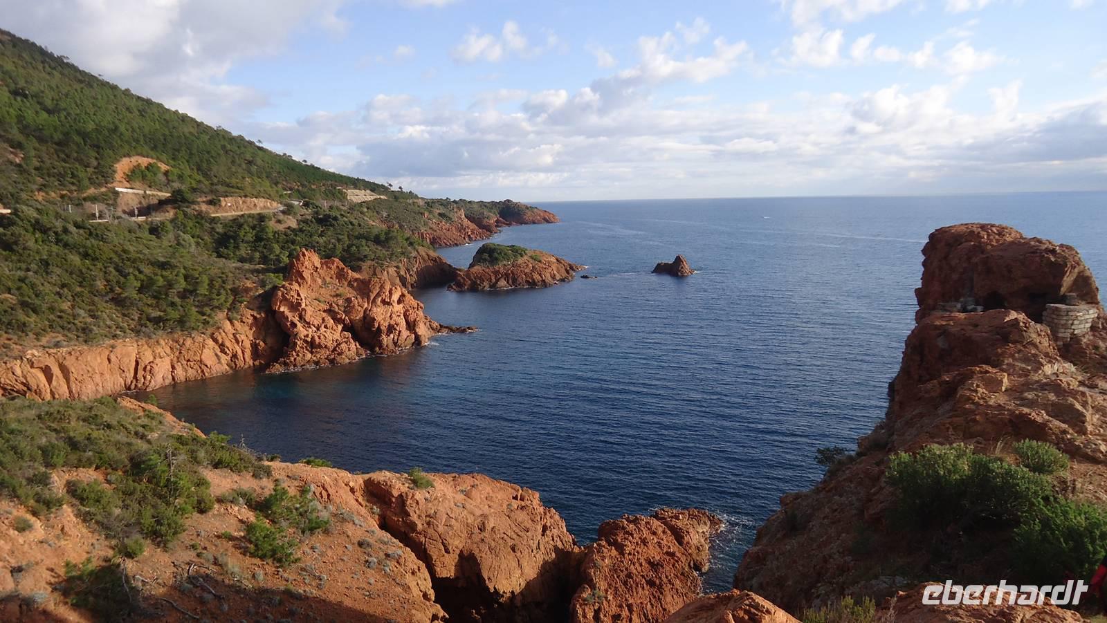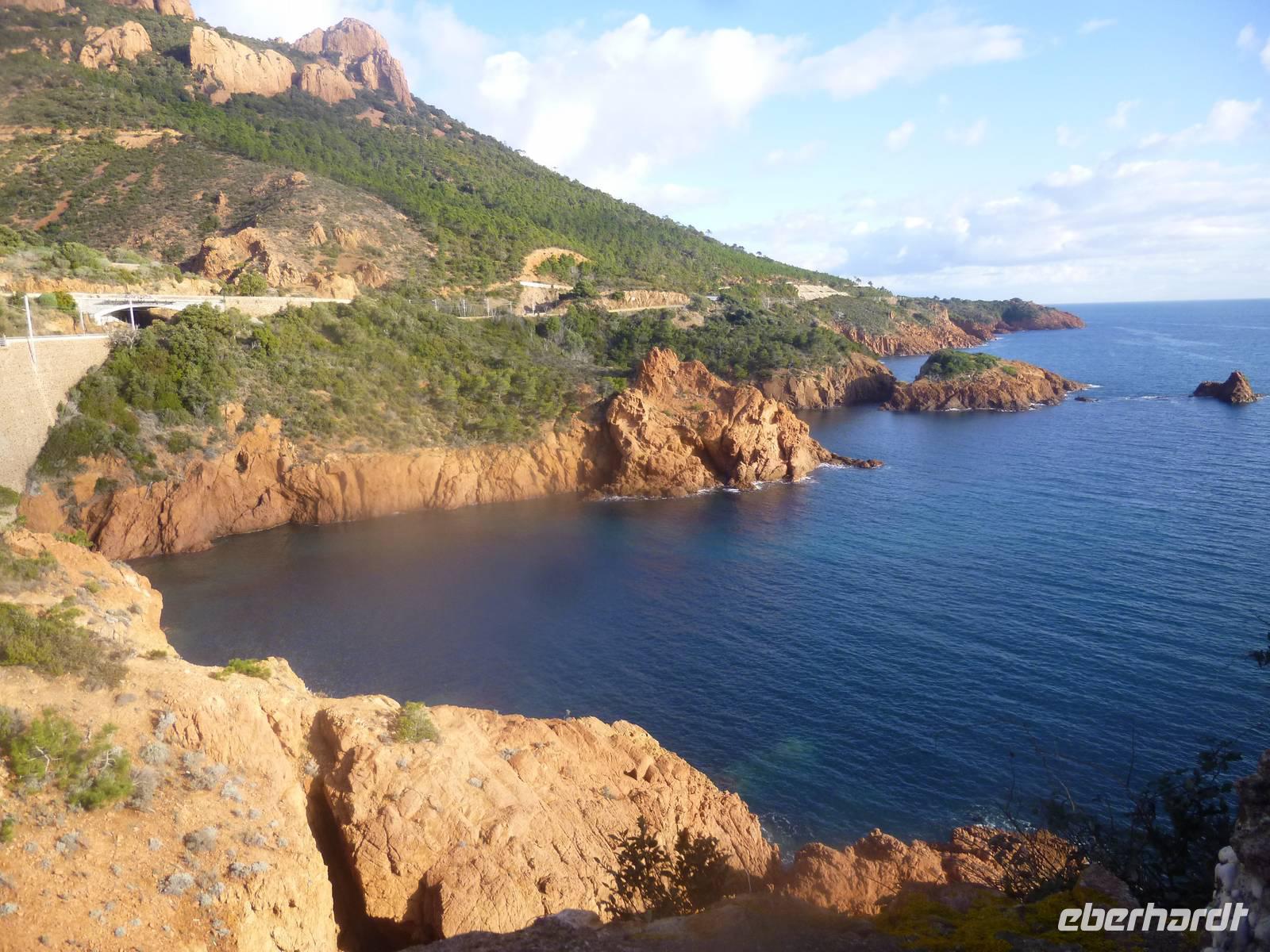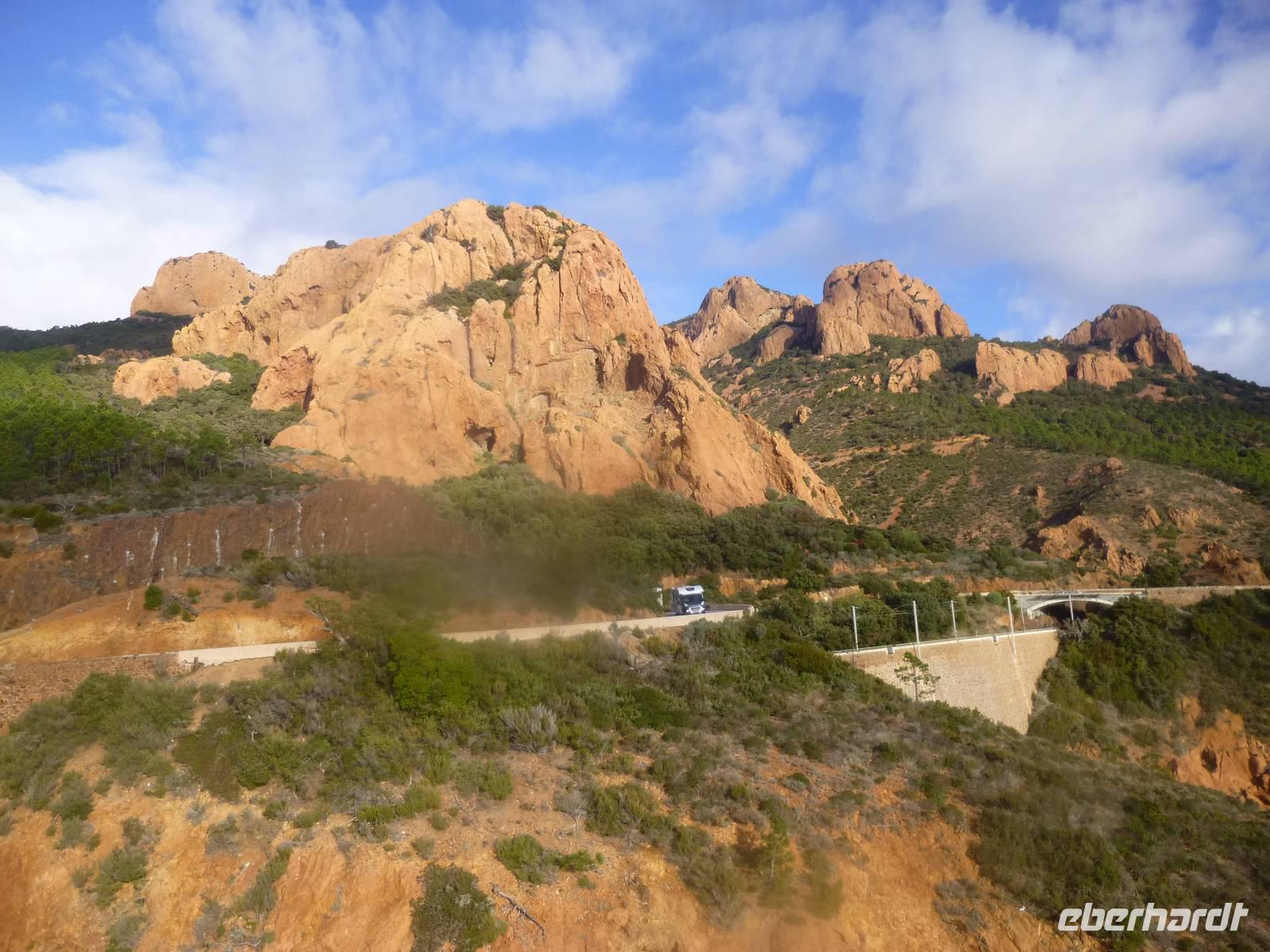 Es war kein spätes Frühstück, da wir heute auch den Tag voll genießen wollten und pünktlich um 9.30 Uhr fuhren wir über Cannes, um unsere Reiseleiterin Viola abzuholen. Emliy machte wieder ein sehr gutes Foto-Stopp auf dem Weg, direkt am Meer und mit einer eindrucksvollen steilen Küste. Wir fuhren entlang der Küste des Esterelgebirges nach Fréjus wo wir um kurz vor 11 Uhr ankamen. Als Standort wunderbarer römischer Ruinen besticht die Zwillingstadt von St. Raphael vor allem durch ihr Stadtzentrum, neben dem sich zahlreiche römische Ruinen auftürmen.