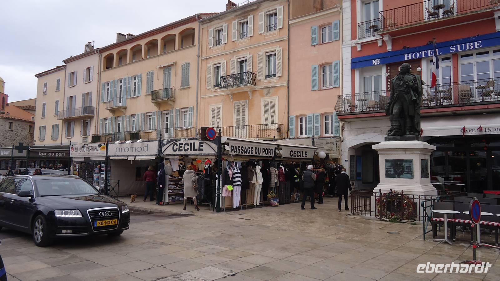 Und 10:30 Uhr sind wir schon in Cannes und bei einem Rundgang mit Viola entdeckten wir wichtige Sehenswürdigkeiten der legendären Filmstadt. Zuerst gingen wir zu Fuß bis ganz nach oben wo die Kirche ist, um einen herrlichen Blick über Cannes zu haben. Wieder unten, gingen wir über den Altmarkt wo man Blumen, Salami, Käse, Gemüse, usw. kaufen konnte. Heute ist der letzte Tag des Jahres und viele kaufen schnell noch was für zu Hause zum kochen oder was zum Feiern fehlte.