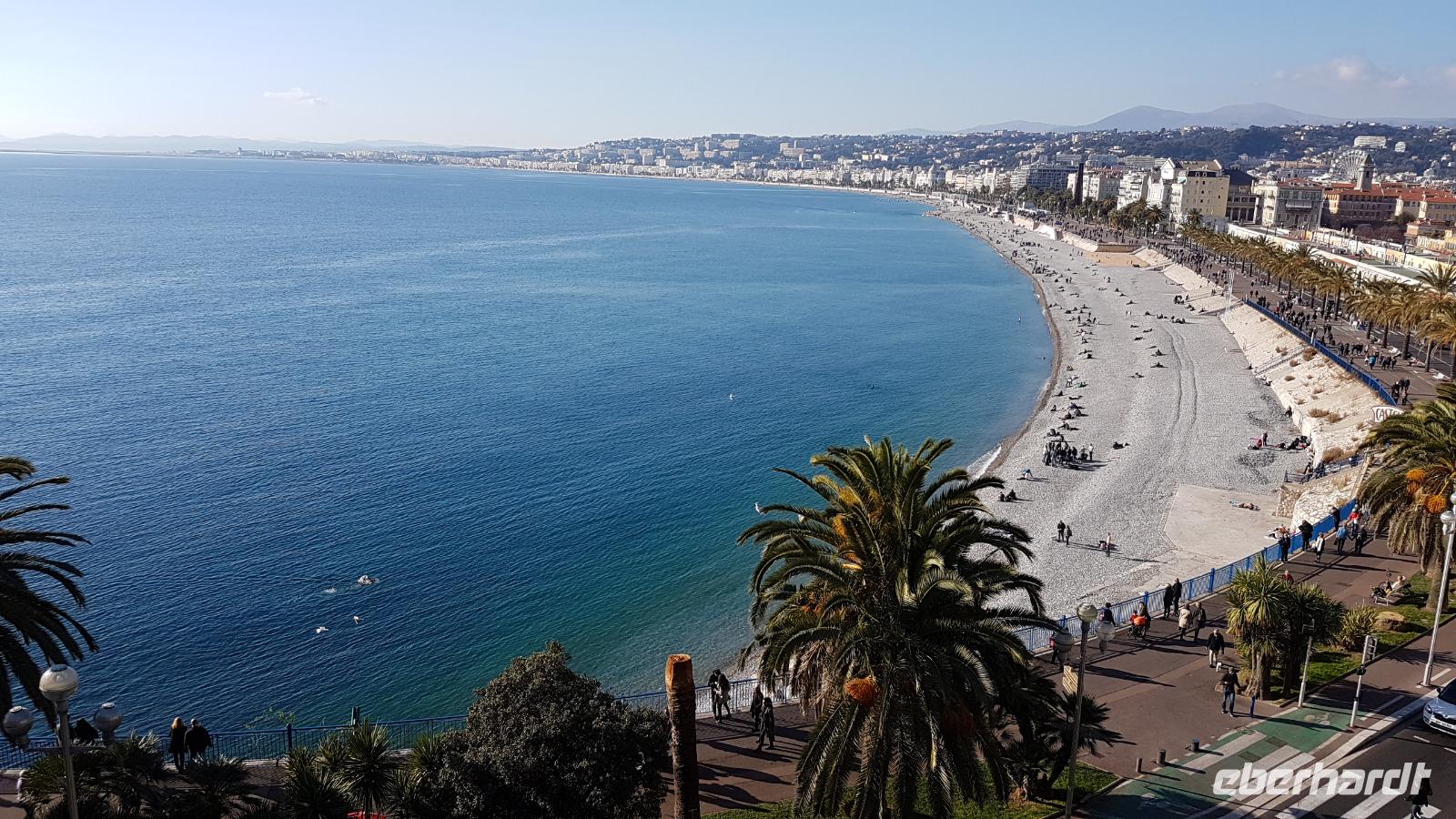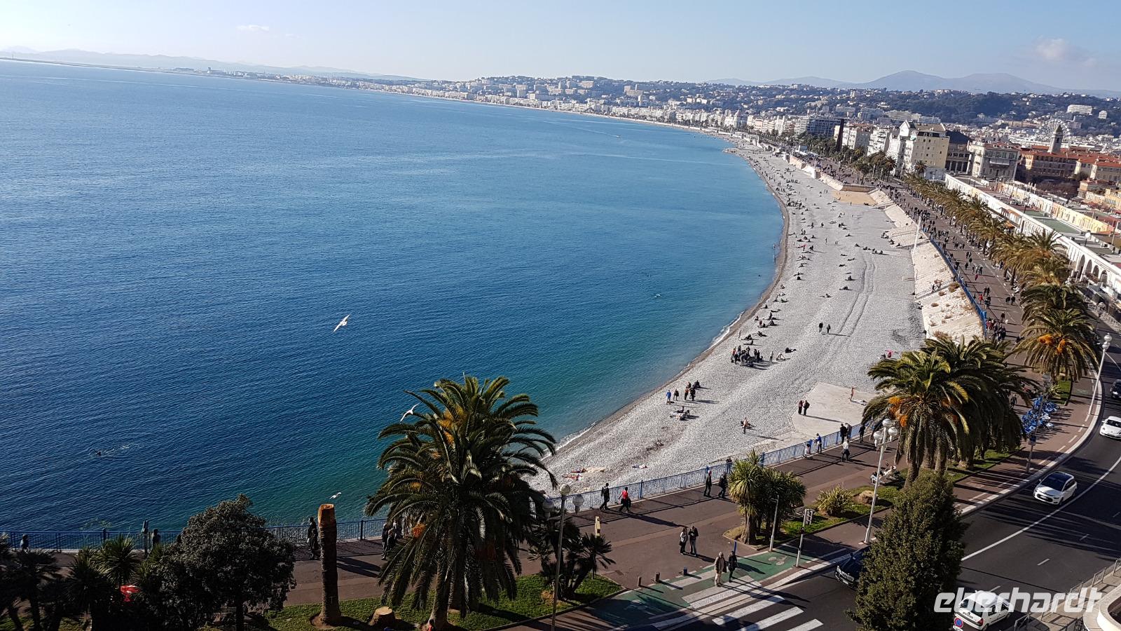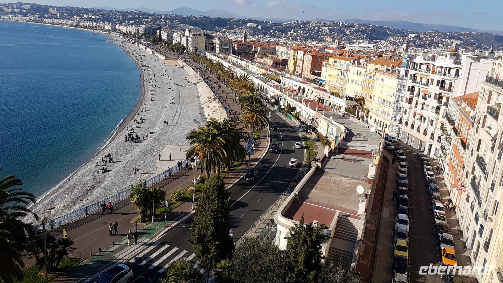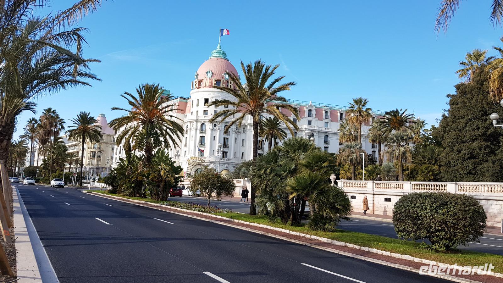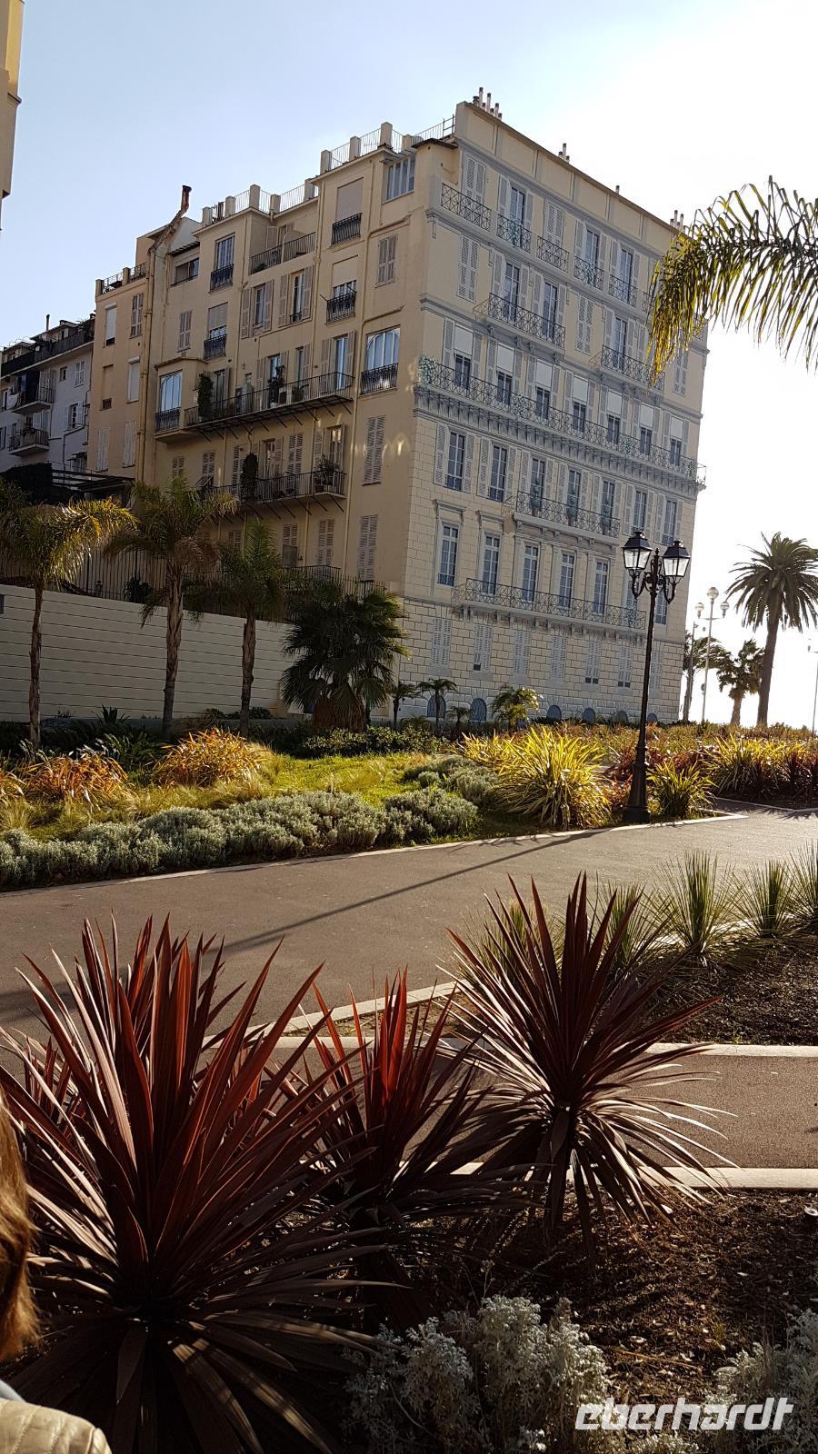 Wir entschieden uns diesen Jahreswechsel an der Cote d' Azur zu verbringen. Besonders das milde Klima hier in Nizza ist zu Silvester eine Rundreise wert. Und während der Reise bei den Ausflügen konnten wir Saint Paul de Vence, Monaco, Cannes, Frejus oder Saint Tropez kennen- lernen und damit die französische Mittelmeerküste intensiv erleben. Heute flogen wir mit Lufthansa nach Nizza. Vorgestern feierten wir noch den 2. Weihnachstfeiertag und heute bereiten wir uns darauf vor den Jahrwechsel an der Côte d'Azur zu verbringen, um uns vom alten Jahr 2016 richtig zu verabschieden und das neue Jahr 2017 am Mittelmeer zu begrüßen. Kurz nach neun trafen wir uns bei der Anzeigetafel am Dresdner Flughafen. Wir flogen über Frankfurt mit einem guten Service von Lufthansa. In Frankfurt trafen wir noch einige Reisegäste, die mit uns weiter über die Alpen nach Nizza flogen. Wir konnten von oben nicht viel von den weißen Spitzen der Berge sehen, da es schon dunkel war. In den nächsten Tagen hatten wir Glück mit dem Wetter und heute bei der Ankunft begrüßte uns Nizza sogar mit 17 Grad;) Hier am Flughafen Nizza erwartete uns bereits unser örtlicher Transfer, der Sie bequem zu unserem Hotel brachte. Wir wohnten im gehobenen 4-Sterne-Hotel "Ellington Nice" im Herzen von Nizza. Wir wissen von Nizza, dass es die wohl schönste und liebenswerteste Metropole am Mittelmeer ist. Schon der Maler Henri Matisse verliebte sich in diese Stadt und sagte: "Als ich mir bewusst wurde, dass ich jeden Morgen dieses Licht wieder sehen werde, konnte ich mein Glück kaum fassen." Wir freuen uns sehr auf diese Reise, um die prächtige Hafenstadt am Mittelmeer und seine Nachbarorte kennen zu lernen! Um 18:30 Uhr machten wir das Check-in im Hotel "Ellington". Das gehobene 4-Sterne Hotel liegt in einem eleganten Viertel im Herzen der Stadt, nur 5-10 Minuten vom Strand und den Einkaufsvierteln entfernt und bietet lockere Eleganz mit subtilem Stil. Das Hotel bietet eine hübsche Architektur im typischen Nizza Stil aus den 1920igern und hat uns allen gleich beim ersten Eindruck gut gefallen. Das Hotel liegt somit nicht weit von der palmengesäumten Promenade des Anglais.