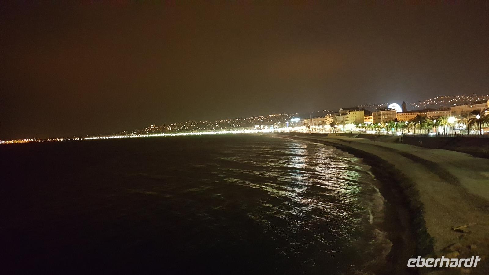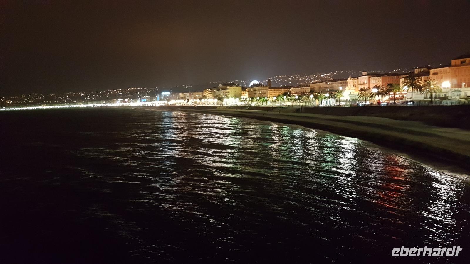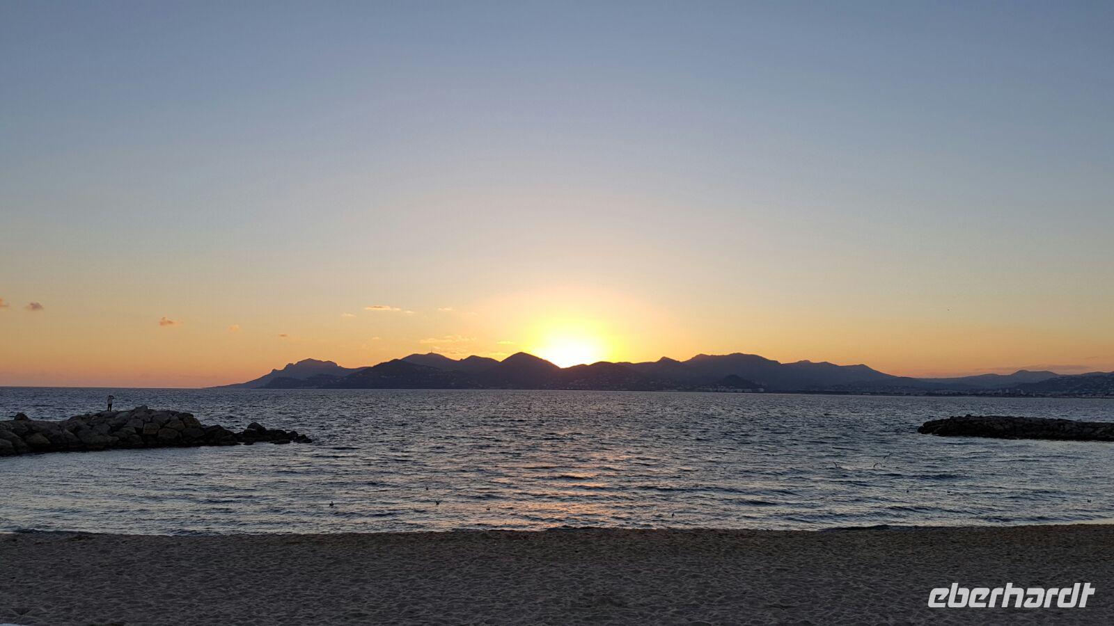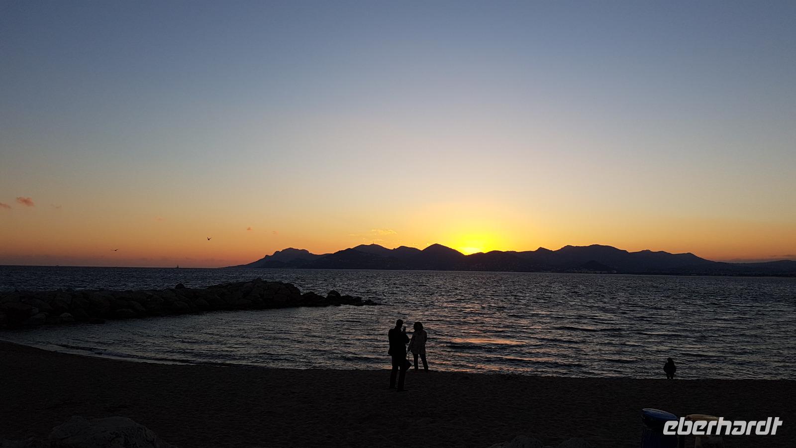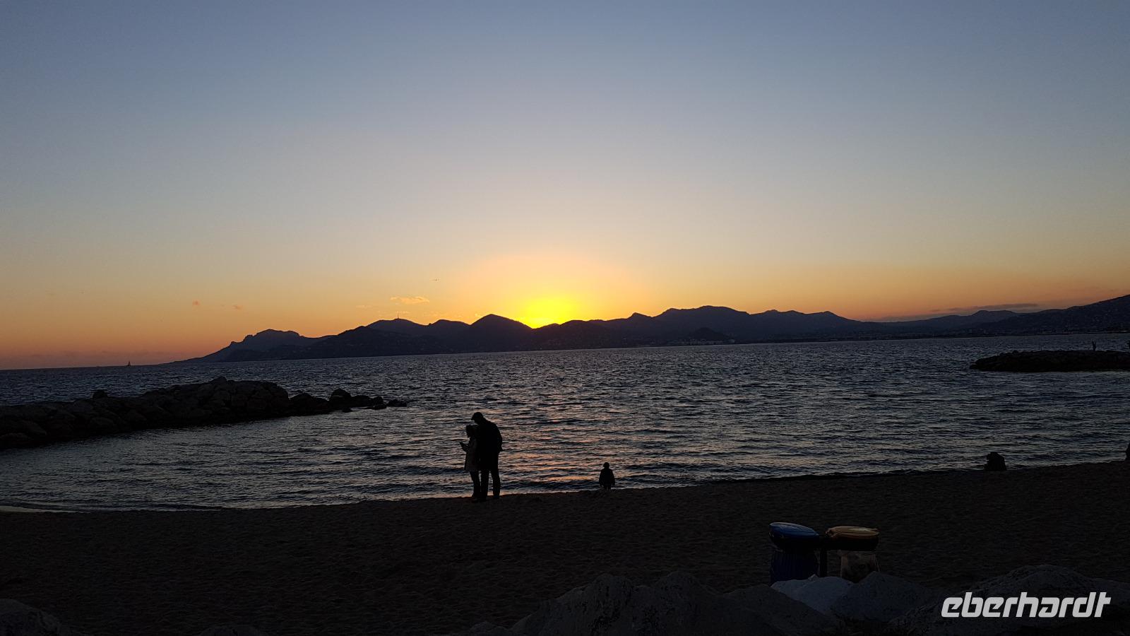 Am Abend genossen einige von uns noch ein Abendessen in einer typisch nizzaischen Brasserie. Das heutige Abendessen liegt in der Nähe vom Hotel und wir trafen uns um kurz vor 20 Uhr, um zu Fuß bis zum „L´Authentic" Restaurant zu spazieren. Das Menü war lecker und während des Essens haben wir versucht uns alle einmal kurz vorzustellen, damit wir uns langsam kennen lernen und wissen, wie wir heißen oder woher wir kommen. Auf dem Rückweg zum Hotel machten wir einen Spaziergang bis ans Meer und zur Promenade, um das Mittelmeer zu genießen. Wir wollten das Meer sehen und entlang der „Promenade des Anglais" schlendern. Wir genossen einen herrlichen Sonnenuntergang. Ich zeigte einigen Gästen, wo ein Supermarkt bis 22 Uhr geöffnet hat, falls man Wasser oder Obst besorgen möchte. Schon im Hotel wünschten wir uns allen eine gute erste Nacht.