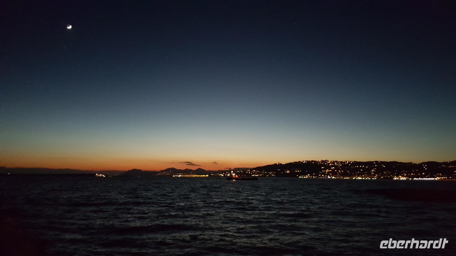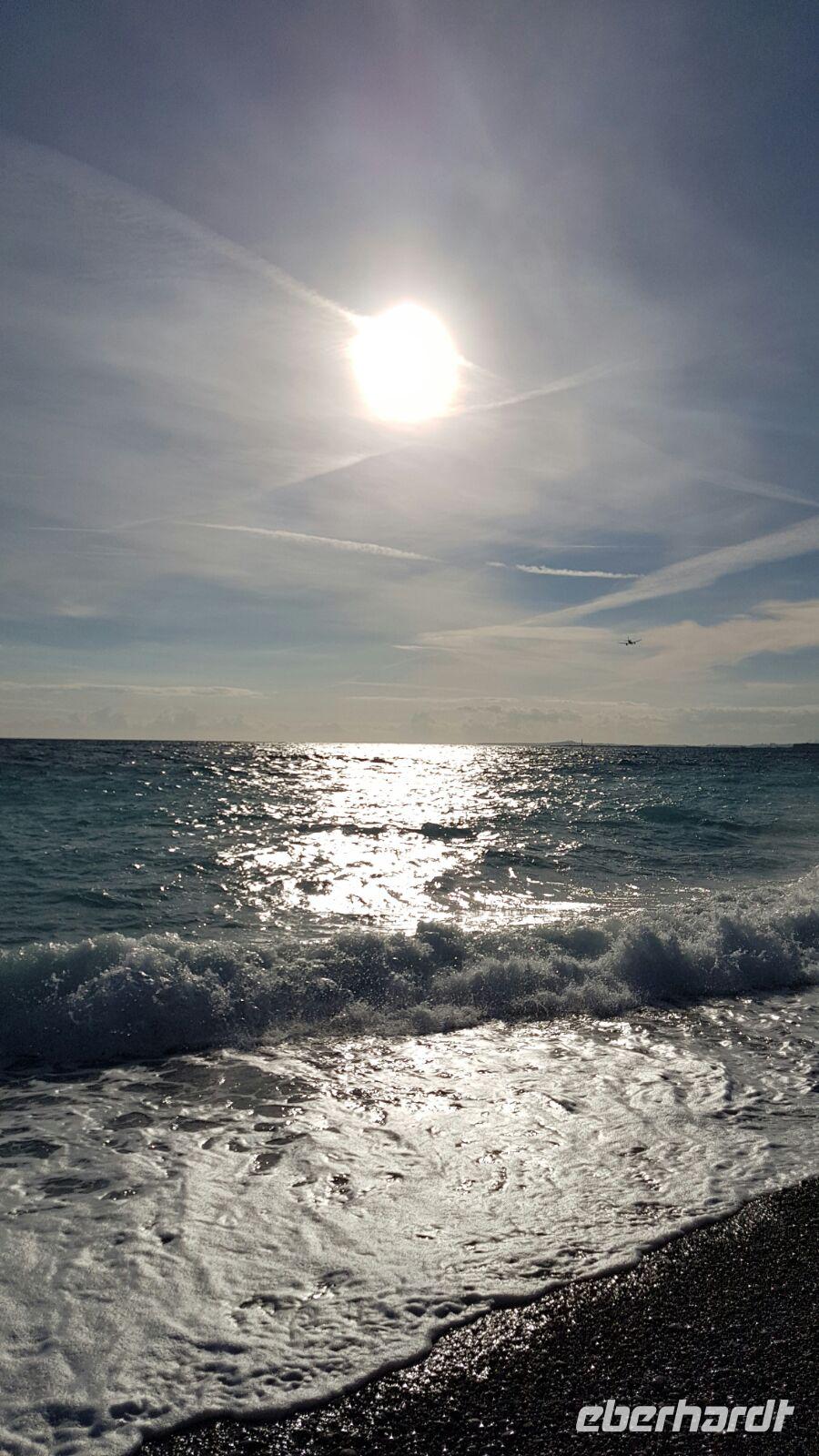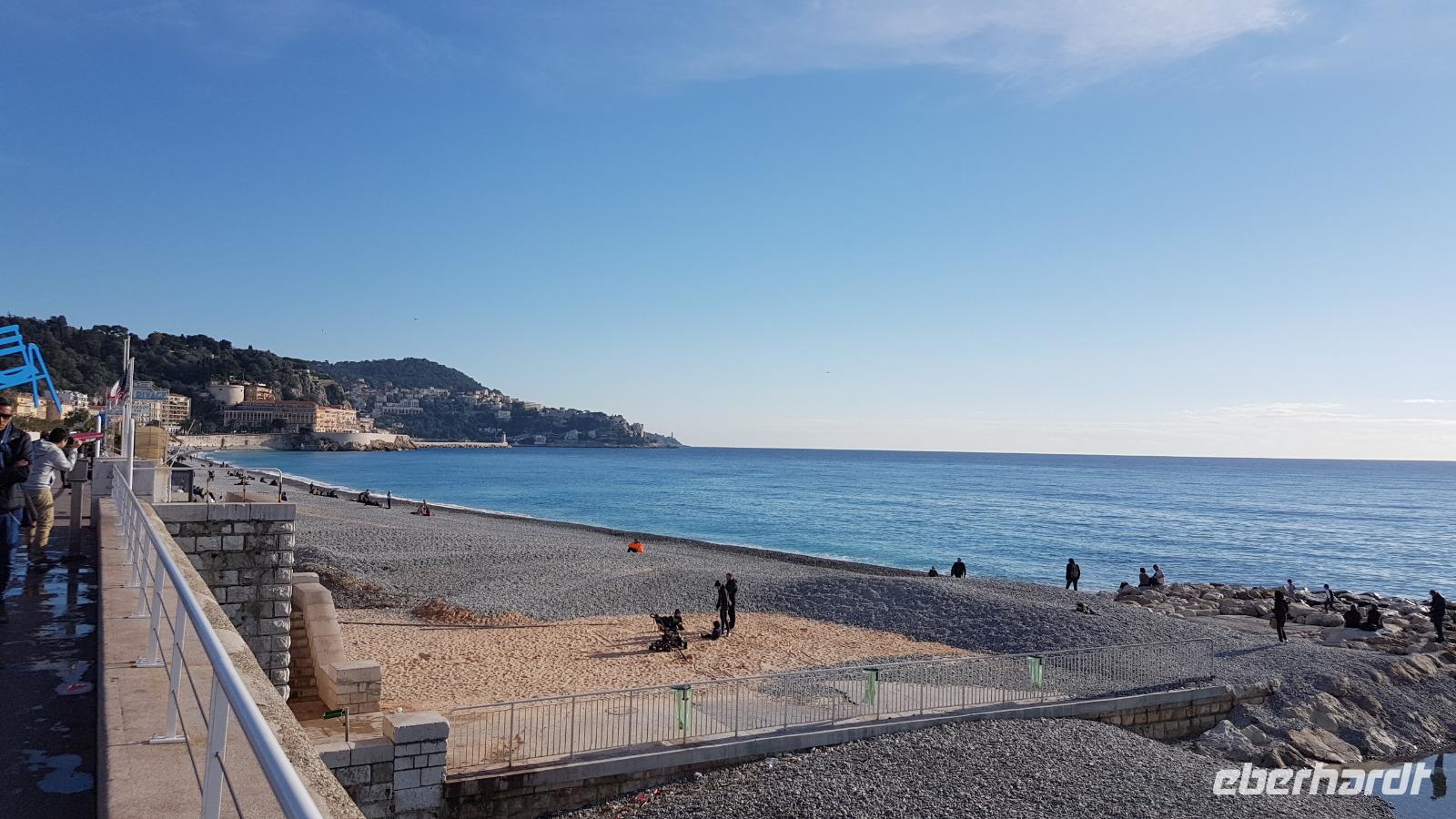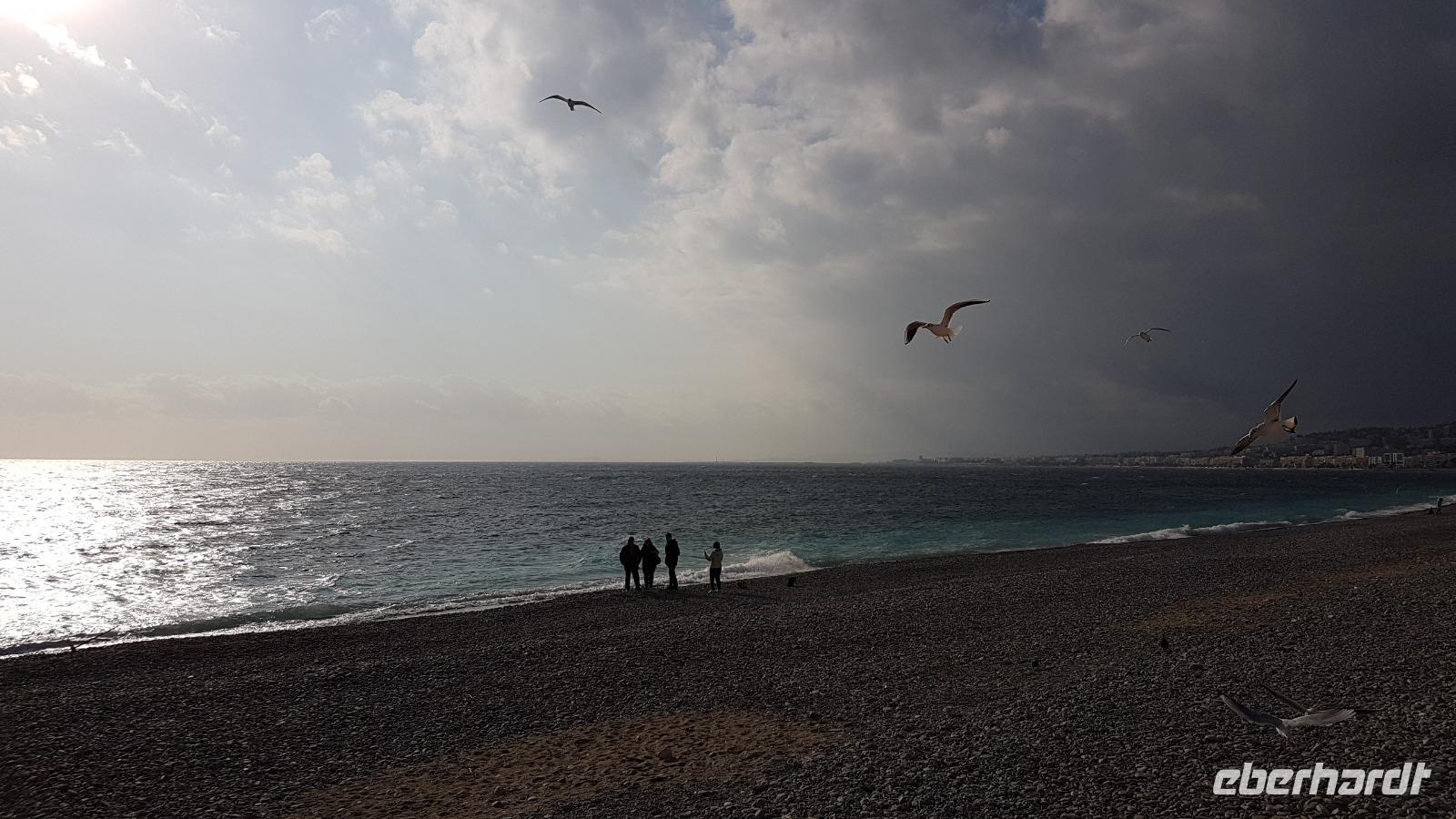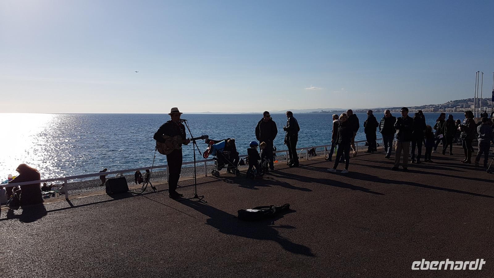 Am Abend genossen einige von uns noch ein Abendessen in einer typisch nizzaischen Brasserie. Das heutige Abendessen liegt in der Nähe vom Hotel und wir trafen uns um kurz vor 20 Uhr, um zu Fuß bis zum „L´Authentic" Restaurant zu spazieren. Das Menü war lecker und während des Essens haben wir versucht uns alle einmal kurz vorzustellen, damit wir uns langsam kennen lernen und wissen, wie wir heißen oder woher wir kommen. Auf dem Rückweg zum Hotel machten wir einen Spaziergang bis ans Meer und zur Promenade, um das Mittelmeer zu genießen. Wir wollten das Meer sehen und entlang der „Promenade des Anglais" schlendern. Wir genossen einen herrlichen Sonnenuntergang. Ich zeigte einigen Gästen, wo ein Supermarkt bis 22 Uhr geöffnet hat, falls man Wasser oder Obst besorgen möchte. Schon im Hotel wünschten wir uns allen eine gute erste Nacht.