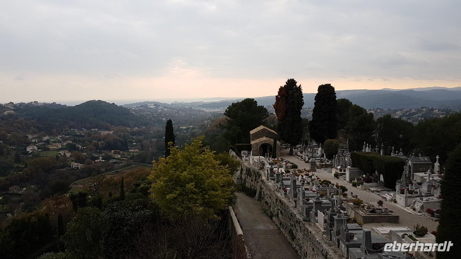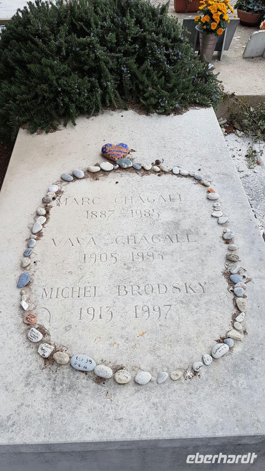 Kurz vor 15 Uhr gingen wir zu Fuß durch die kleinen engen Gassen des schönen Örtchens. Die Kopfsteinpflasterstraßen und die Ringmauer sind eine Attraktion für sich. In Vence haben sich zahlreiche Künstler niedergelassen, um ihre Werke zu präsentieren und zu verkaufen. Wir unternahmen einen Bummel durch die Altstadt, die durch ihre wunderschöne Stadtmauer besticht. Das phänomenale Kunsterbe dieser Stadt zog bereits den russischen Maler Marc Chagall in seinen Bann, der hier auf dem interkonfesionellen Friedhof begraben ist und dessen Grab wir besichtigten.