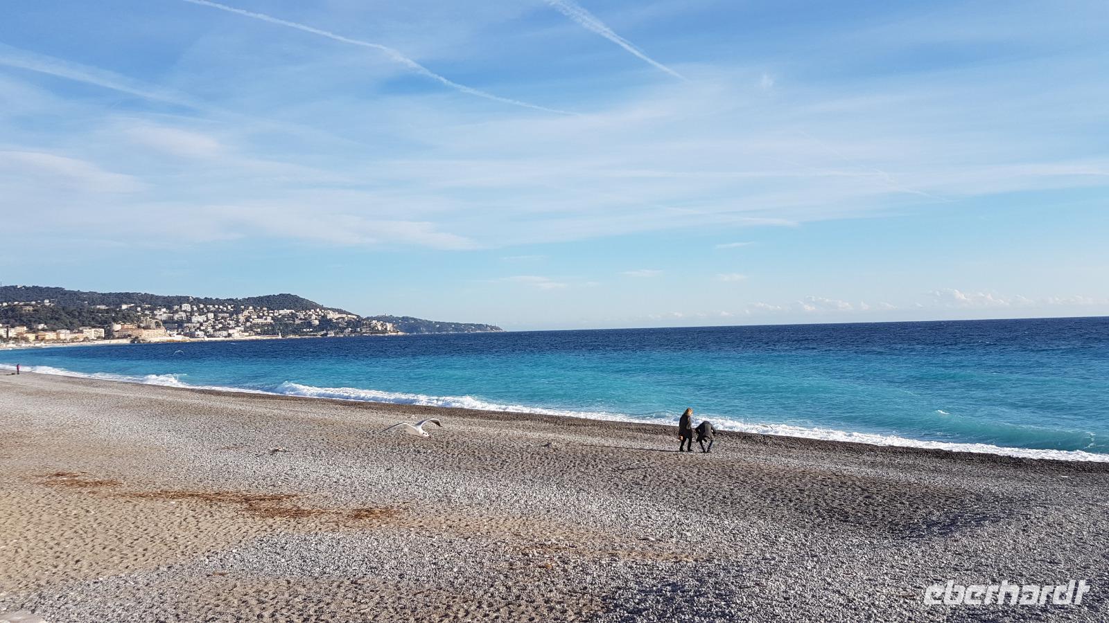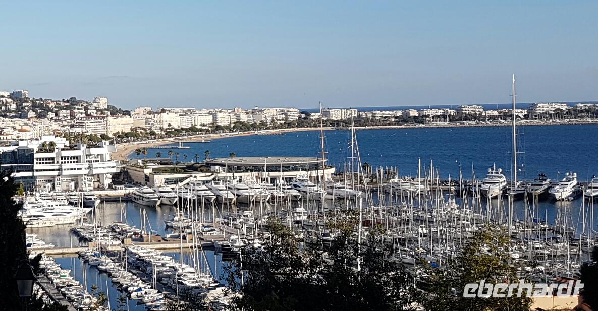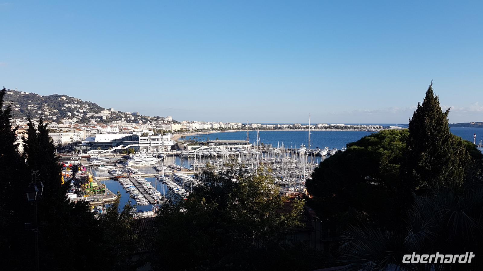 Der Vormittag steht Ihnen heute zur freien Verfügung und nach dem Frühstück heute aber erst um 11 Uhr, traf ich mich mit den Gästen, um gemeinsam auf die Hügel von Nizza zu laufen um von dort oben das Jahr mit Sonnenlicht zu empfangen;) War toll. Wieder unten spazierten wir an der Promenade entlang und trafen Richard, um gemeinsam am frühen Nachmittag mit unserem örtlichen Reisebus nach Cannes zu fahren. Mit Blick auf die See-Alpen voll mit Schnee. Herrlich! Um Kurz vor 15 Uhr waren wir schon in Cannes und bei einem Rundgang mit Richard entdeckten wir wichtige Sehenswürdigkeiten der legendären Filmstadt. Zuerst gingen wir zu Fuß bis ganz nach oben, wo die Kirche ist, um einen herrlichen Blick über Cannes zu haben. Wieder unten lud Benjamin alle zu einem Kaffee oder heißen Schokolade ein, da es heute sonnig war, aber frisch;) Heute ist der erste Tag des Jahres und viele spazierten entlang der Strandpromenade „La Croisette" mit seinem berühmten Filmpalast. Wir spazierten entlang der Strandpromenade La Croisette und sahen den berühmten Filmpalast. Ein internationales Publikum ist hier zu Hause und macht die Stadt als Zentrum des Films weltberühmt. Wir konnten das imposante Festivalzentrum, den Boulevard der Stars und ganz am Ende das Hotel Carlton sehen.