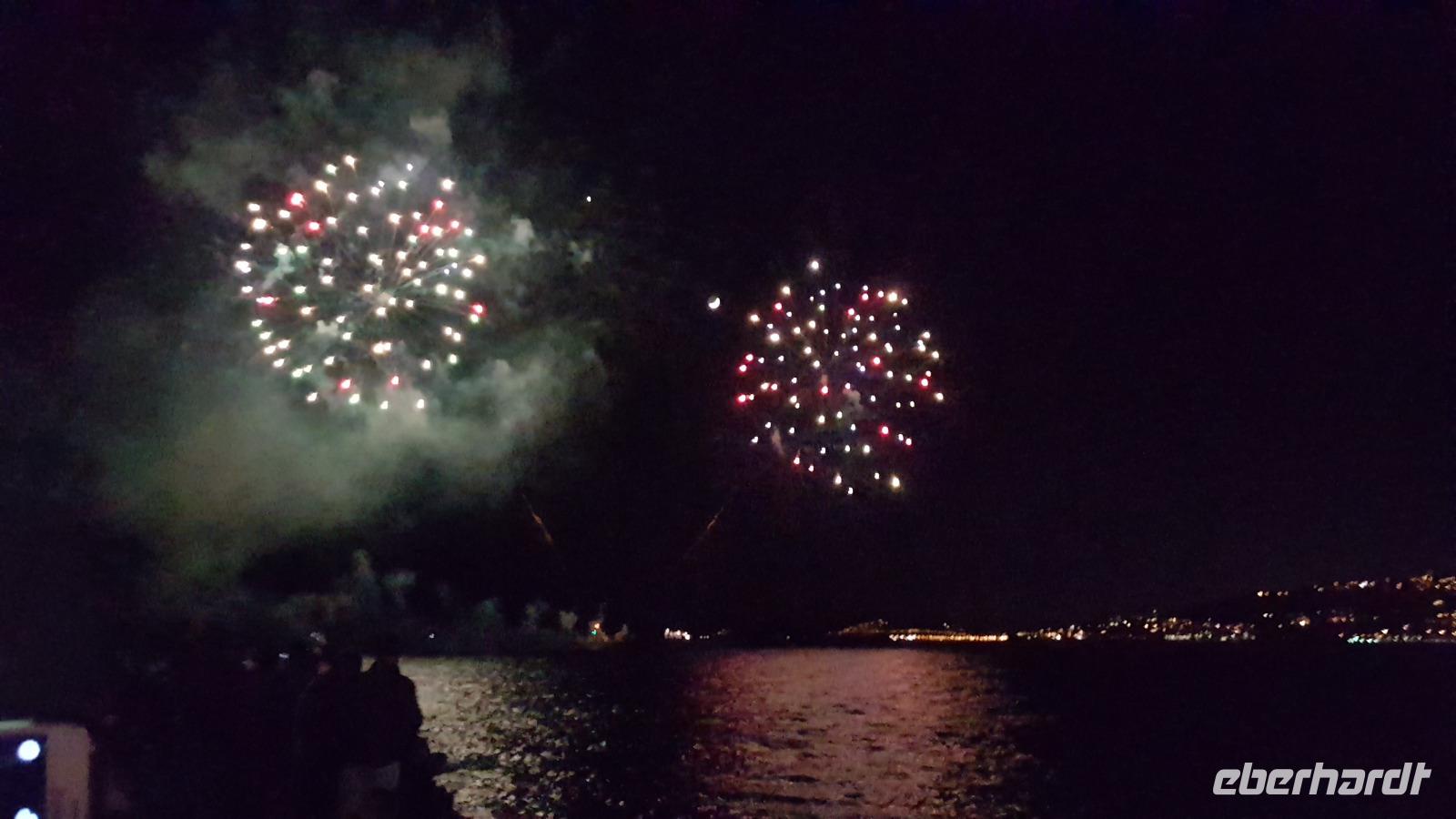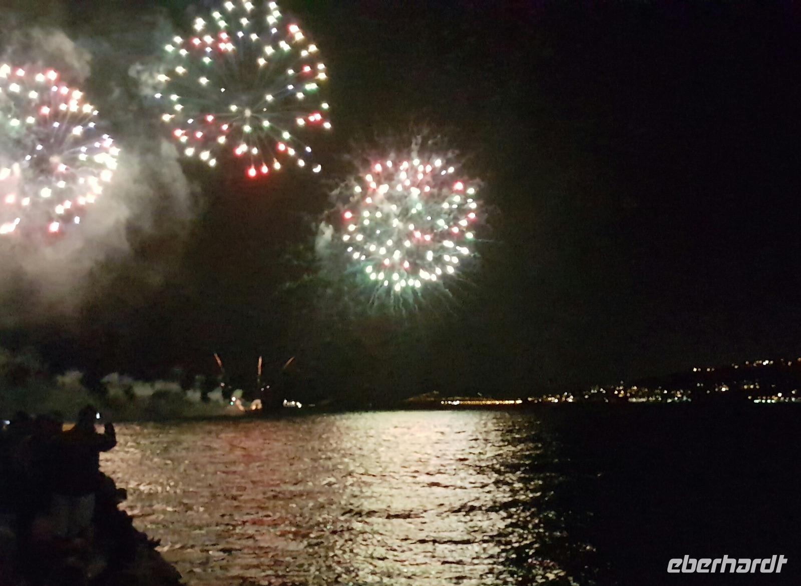 Am Nachmitag fuhren wir noch bis Saint Juan Le Pin, wo wir um 18.30 Uhr Feuerwerke zum neuen Jahr im Himmel am Meer genossen. Toll toll toll. Zurück in Nizza genossen wir ein Abschlussabendessen im Bistro Romain. Als Vorspeise hatten wir italienischen Parmaschinken, ganz gut geschnitten, und als Hauptgericht Lachs mit italienischem Risotto, das mir persönlich ganz gut geschmeckt hat. Der Nachtisch war auch einfach wieder lecker. Heute spazierten wir zurück zum Hotel über den Hafen. Da waren wir noch nicht;)