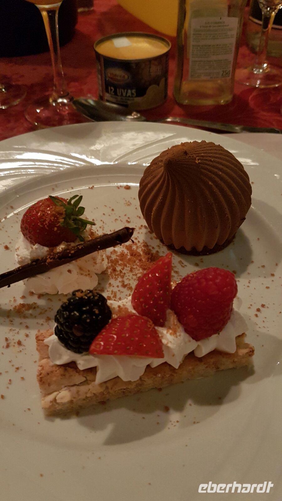 Kurz vor 20 Uhr trafen wir uns alle ganz elegant gekleidet im Hotel und gingen zu Fuß zum Restaurant. Das Restaurant befindet sich nur 300 Meter von Ihrem Hotel entfernt. Es erwartete uns ein vier-Gänge-Silvestermenü in der eleganten nizzianischen Brasserie „Le Ligurie". Wir freuten uns schon auf ein schmackhaftes Silvester Abendessen in der eleganten Brasserie, Le Ligurie, wo wir heute Silvester feiern werden. Hier wurden wir bereits mit Live-Musik erwartet. Alle Getränke sind für Sie bereits inklusive. Wir konnten hier gesellig in das Neue Jahr hinein feiern mit Musik, Tanz und Getränken. Während des Essens hatten wir immer eine musikalische Unterhaltung, ein Trio welches von Tisch zu Tisch ging und musizierte. Und auch eine Band und eine Tänzerin aus Brasilien;) Das Dessert wurde um 23:30 Uhr serviert und der Champagner zum Antoßen kurz vor Mitternacht.
