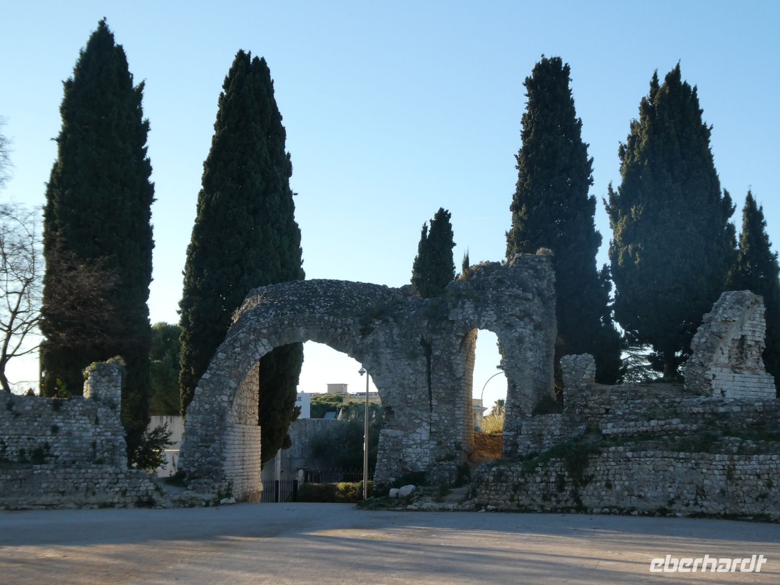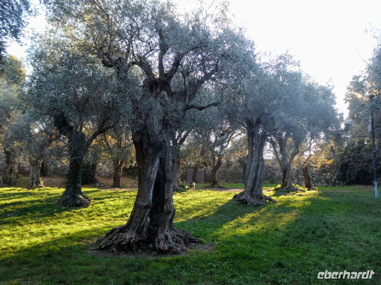 Natürlich siedelten auch hier die Römer und hinterließen wie überall am Mittelmeer ihre Überreste. Hier sehen wir nur die Andeutung eines Amphitheaters aber es gibt in der Umgebung noch mehr römische Artefakte wie die Reste von Tempeln und Thermen. Wir spazieren am Matisse-Museum vorbei bis zu einem Franziskanerkloster aus dem 9.Jahrhundert mit noch 8 Mönchen. Die Kirche werden wir auf dem Rückweg von unserem Spaziergang durch den Klostergarten anschauen. Der Garten ist gepflegt mit einem wunderschönen Olivenhain und von einem Aussichtspunkt blicken wir auf die Stadt. Wir besichtigen die Kirche des Klosters aus dem 17.Jahrhundert. Die Krippe ist an diesem Sonntag leider noch geschlossen.