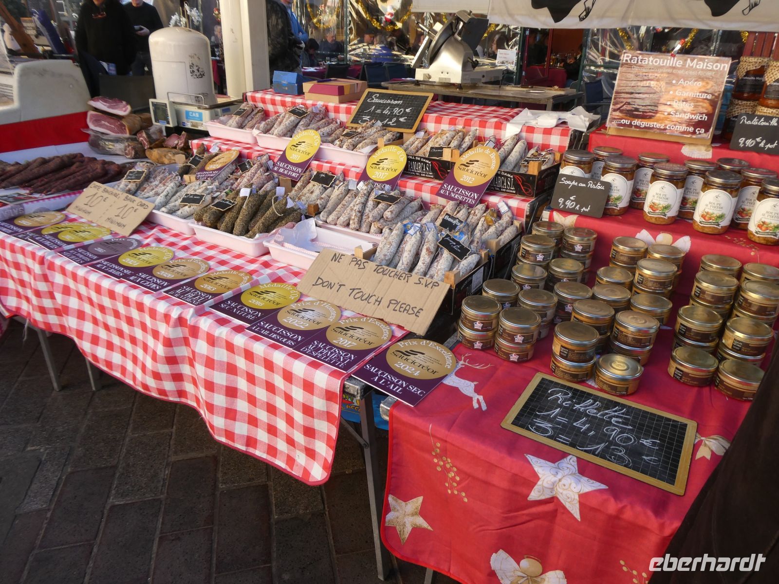 Die Produkte der Provence laden ein, ein Souvenir mitzunehmen. Oliven und ihr gesundes Öl, verschiedene Sorten Honig oder allerlei Süßes ziehen die Blicke auf sich. Während unserer Freizeit haben wir Zeit um in Ruhe über den Markt oder den Palmenboulevard zu schlendern. Oder aber man steigt zum Aussichtspunkt am Schloss von dem sich ein Wasserfall ergießt.