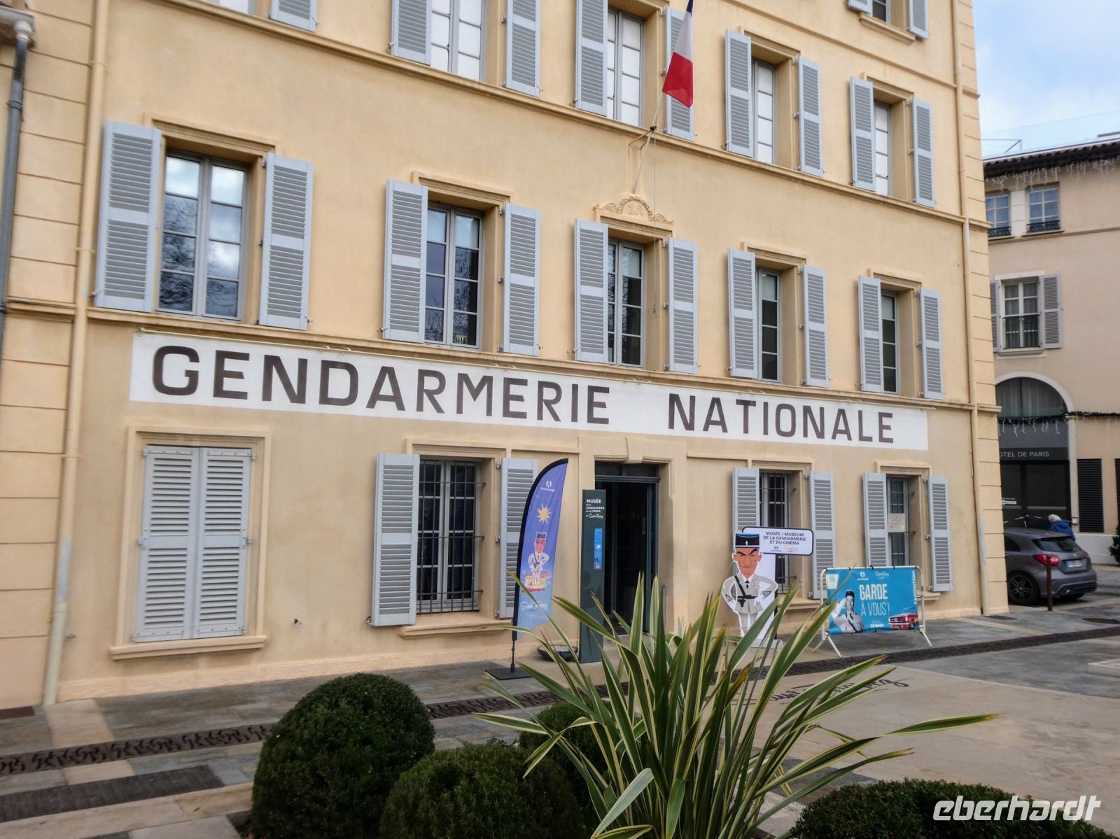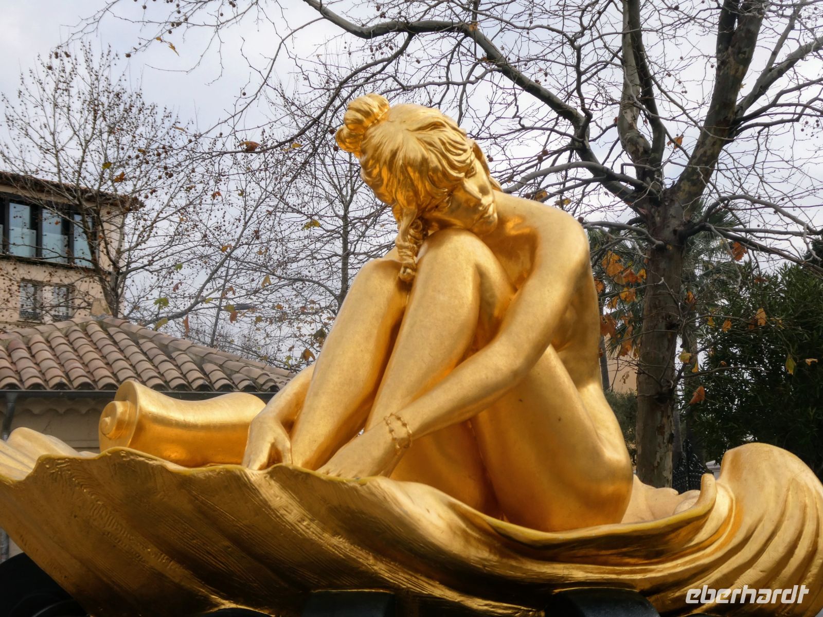 Wir spazieren vorbei an der berühmten Gendarmerie die aus den Filmen mit Louis de Funes nicht wegzudenken und deshalb als Fotohintergrund sehr beliebt ist. Davor hat man der berühmten Brigitte Bardot ein vergoldetes Denkmal gewidmet.