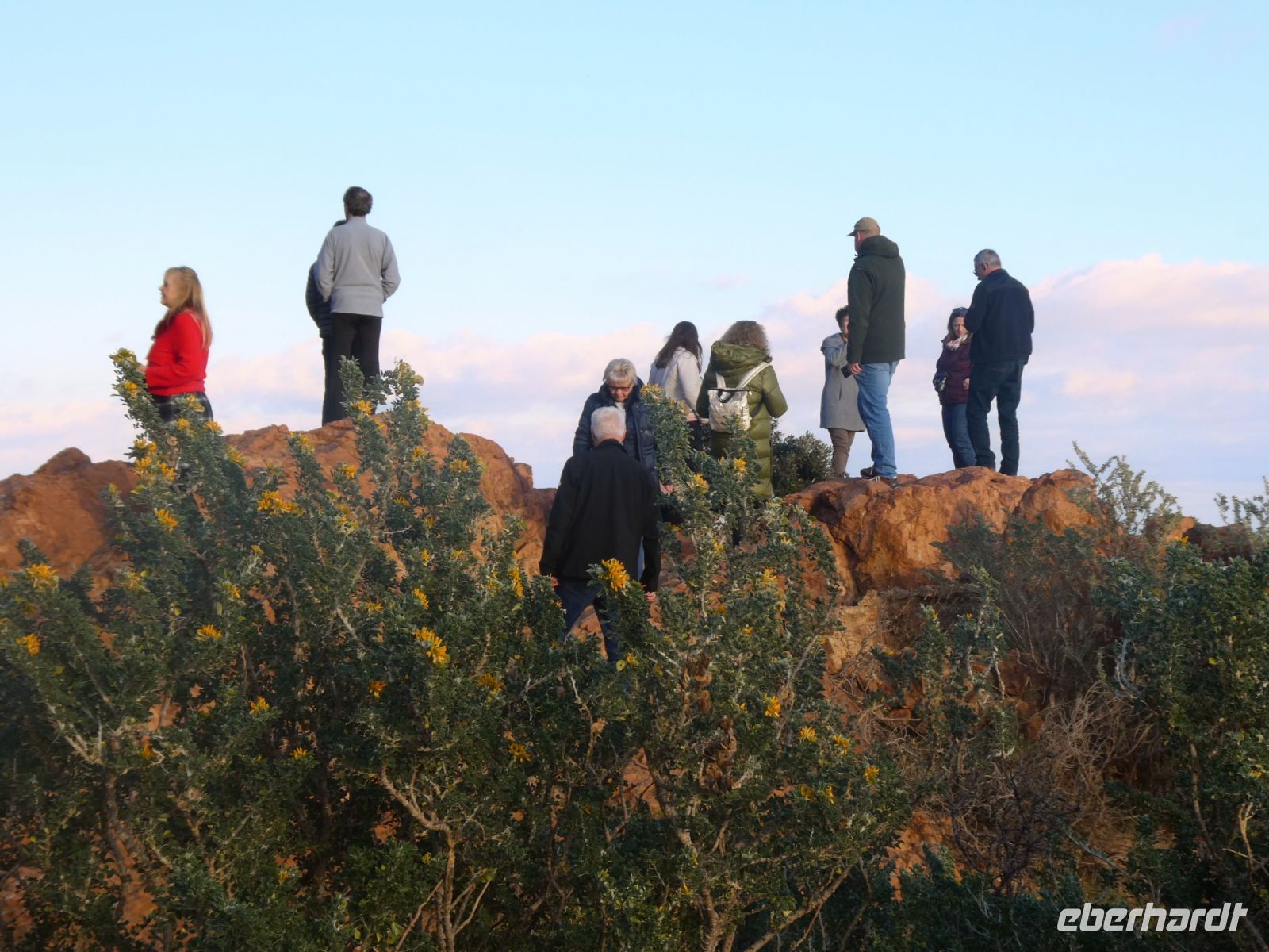 Einige klettern auf einen Aussichtspunkt und tatsächlich sind hoch in den Felsen echte Kletterer zu sichten. Das Gestein wirkt schön griffig und das Wetter ist ideal, trocken und sonnig.