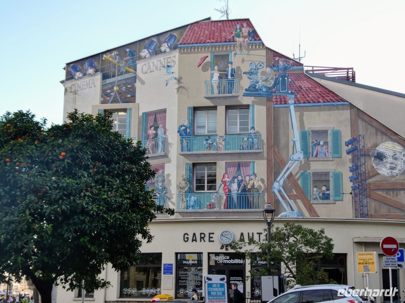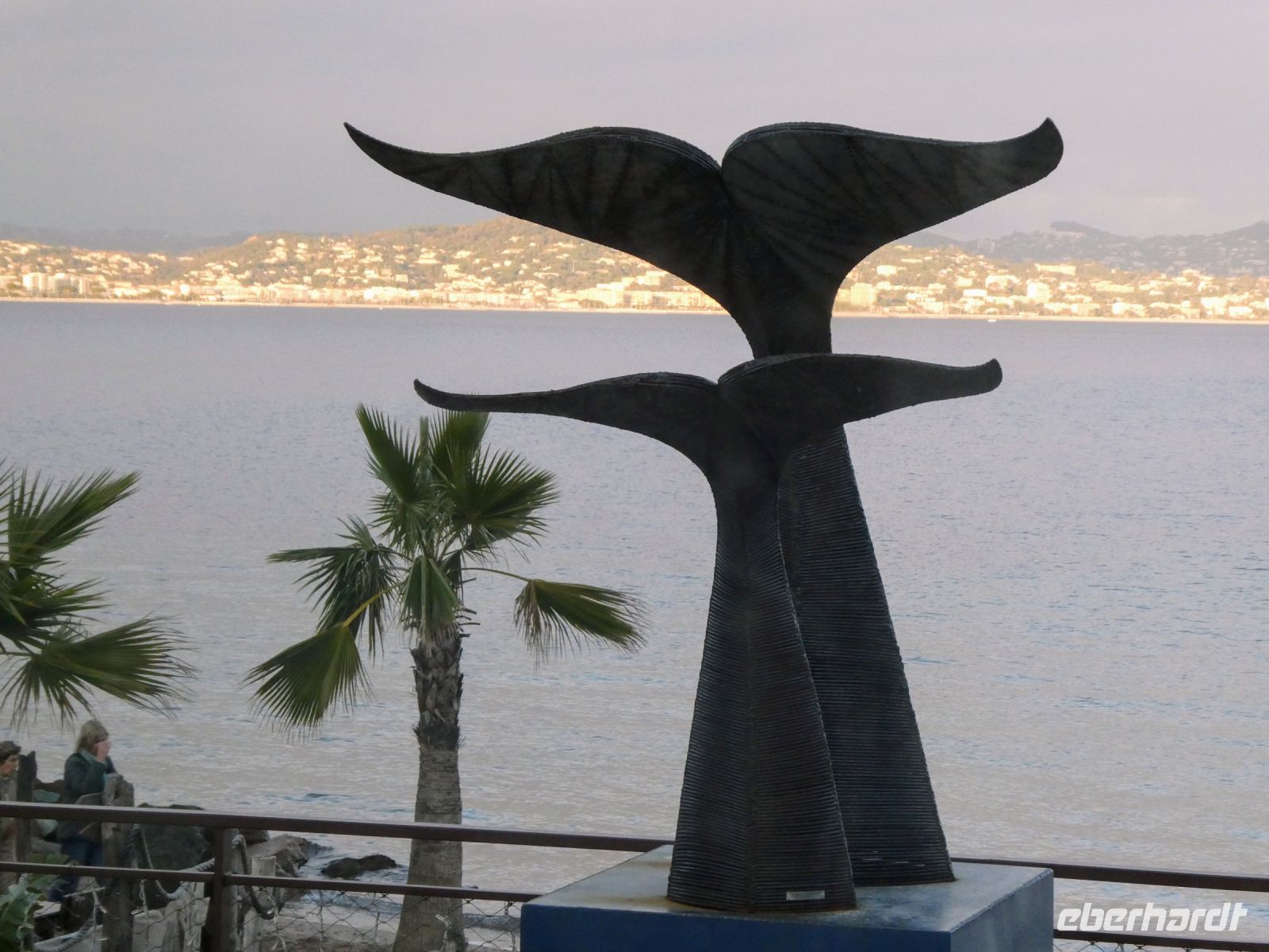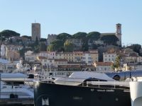 Die Einfahrt zum Busparkplatz in Cannes wird durch einen PKW versperrt sodass wir bis zur "Croissette" fahren müssen. Die Strandpromenade ist für Reisebusse eigentlich gesperrt aber unser Fahrer verhandelt mit einem Polizisten und so dürfen wir halten. Hier befinden sich auch die Festspielhäuser wie das Casino mit dem "Walk of Fame". Wir betrachten einige der Handabdrücke und spazieren dann am Yachthafen vorbei in Richtung Altstadt "Le Suquet". Wir steigen den Stufenweg hinauf. Das Schloss "Le Castre" mit seinem Museum hat heute geschlossen. Wir besuchen die Kirche "Notre Dame d'Espérance", und bewundern die Aussicht. Danach spaziert jeder individuell hinunter über Straßen mit Kopfsteinpflaster durch die heute ruhigere Altstadt. An deren Ende lockt einige von uns eine verführerische Patisserie, erkennbar durch eine lange Schlange davor. Alle sind pünktlich am Treffpunkt vor dem Rathaus.