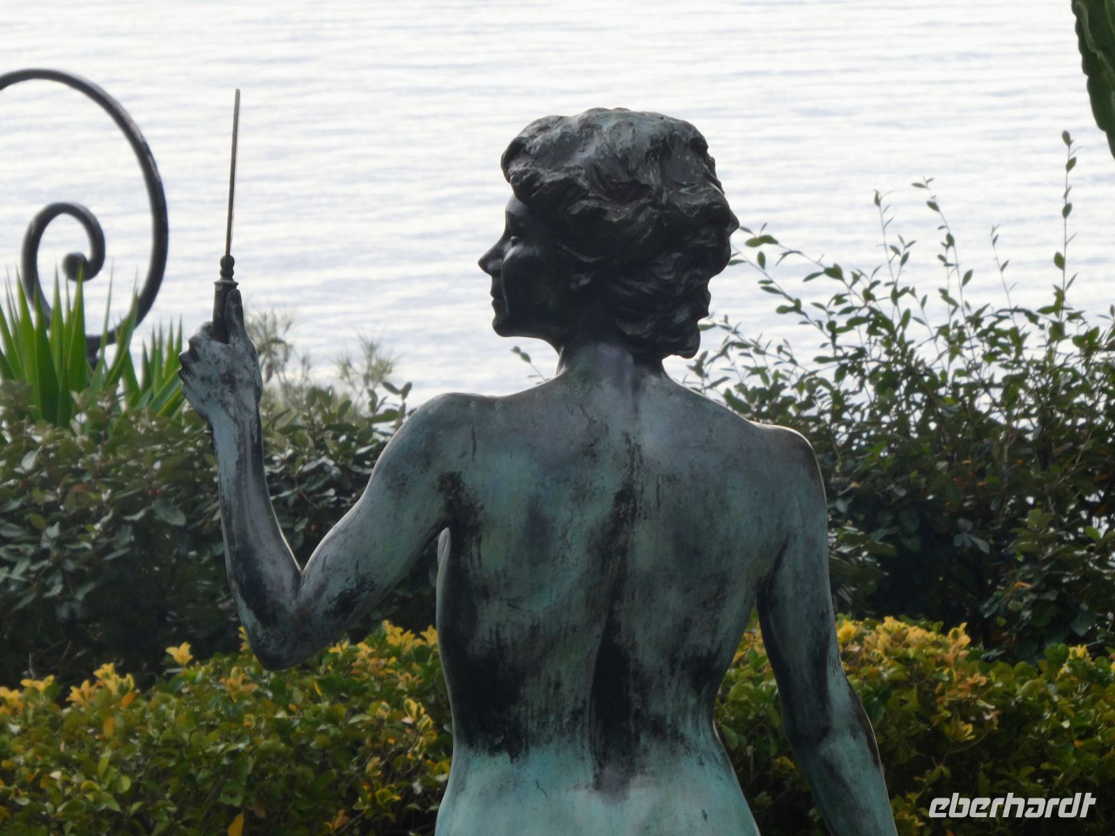 Wir laufen durch den botanischen Garten von Monaco und Richard erklärt uns die Bedeutung der hier gepflanzten Gewächse, fast alle nicht heimischen Ursprüngs wie Aloen, Agaven, Euphorbien, Ginko und andere Gewächse. Dazwischen leuchten Kunstwerke und lockern die Gartenlandschaft auf.