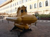 Wir fahren in eine Tiefgarage, von wo wir mit Fahrstuhl und Rolltreppen wieder an die Oberfläche gelangen. Wir landen vor dem Oceanografischen Institut welches ein Aquarium ist. Davor steht das gelbe Mini-U-Boot von Jacques Cousteau der mehreren Generationen den Reichtum der Weltmeere beigebracht hat. Heute noch hat Frankreich in der Erforschung der Ozeane eine bedeutende Stellung.