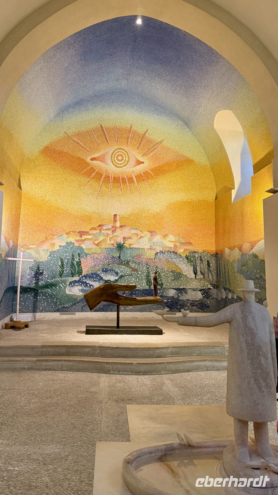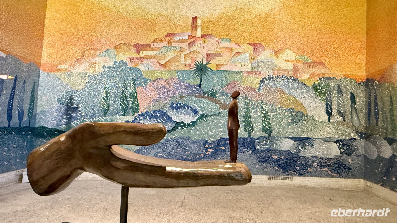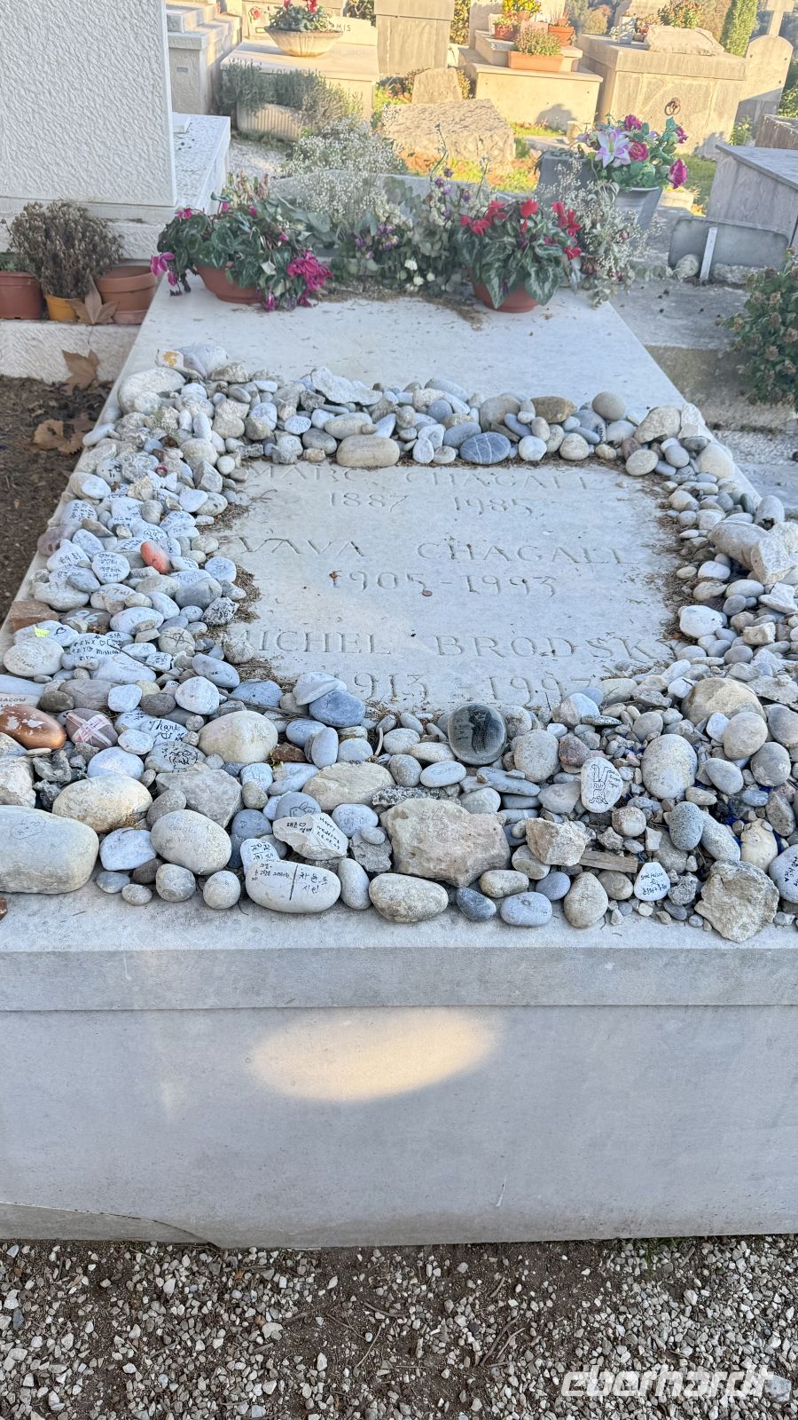 Am Nachmittag fuhren wir weiter nach Saint-Paul-de-Vence, eines der schönsten und bekanntesten mittelalterlichen Dörfer Südfrankreichs. Der Ort liegt auf einem Hügel oberhalb der Küste und ist von einer gut erhaltenen Stadtmauer umgeben. Mit seinen schmalen Kopfsteinpflastergassen, Kunstgalerien und kleinen Cafés zieht Saint-Paul-de-Vence seit Jahrzehnten Künstler, Schriftsteller und Schauspieler an. Besonders bekannt wurde der Ort durch den Maler Marc Chagall, der viele Jahre in der Region lebte. Seine farbenfrohen, oft traumhaften Werke sind weltweit berühmt und stark von Liebe, Religion und Fantasie geprägt. Wir besuchten auch das Grab von Marc Chagall auf dem Friedhof von Saint-Paul-de-Vence, eine schlichte, aber bewegende Ruhestätte dieses außergewöhnlichen Künstlers.