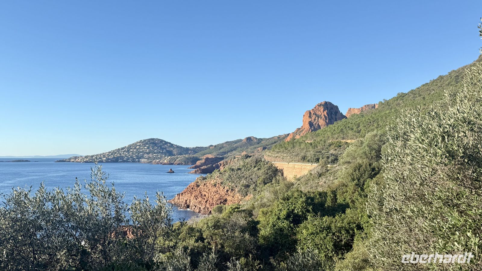 Heute führte uns unsere Fahrt durch das wunderschöne Esterel-Gebirge, das sich westlich von Cannes entlang der Küste erstreckt. Dieses Gebirge ist bekannt für seine markanten roten Felsformationen aus vulkanischem Gestein, die einen eindrucksvollen Kontrast zum tiefblauen Mittelmeer bilden. Das Esterel-Gebirge entstand vor rund 250 Millionen Jahren durch vulkanische Aktivitäten und zählt heute zu den landschaftlich spektakulärsten Regionen der Côte d’Azur. Die kurvenreiche Küstenstraße bot uns immer wieder atemberaubende Ausblicke auf steile Klippen, kleine Buchten und das glitzernde Meer.