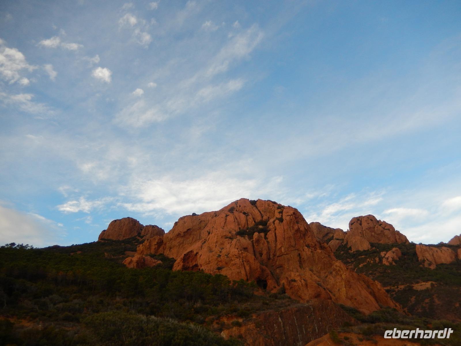 Ein weiterer Höhepunkt des heutigen Tages war die Rückfahrt nach Nizza entlang des Esterelgebirges. Wir passieren die imposante Felslandschaft mit rotgoldenem Porphyrgestein, welches im Sonnenlicht traumhaftschön schimmert. Bei einer „RKR"-Pause konnten wir die wunderschöne Küstenlandschaft mit unseren Kameras festhalten.