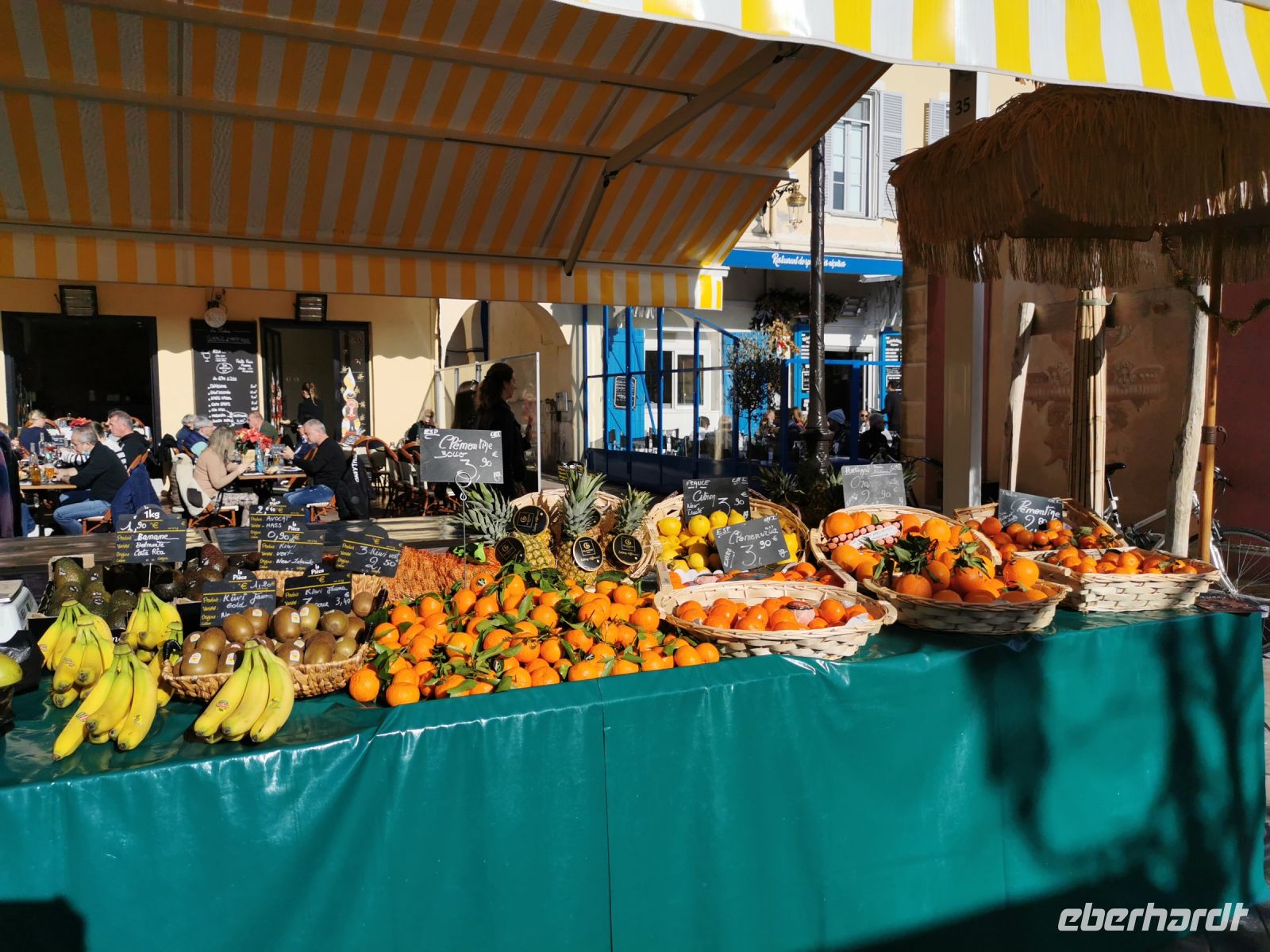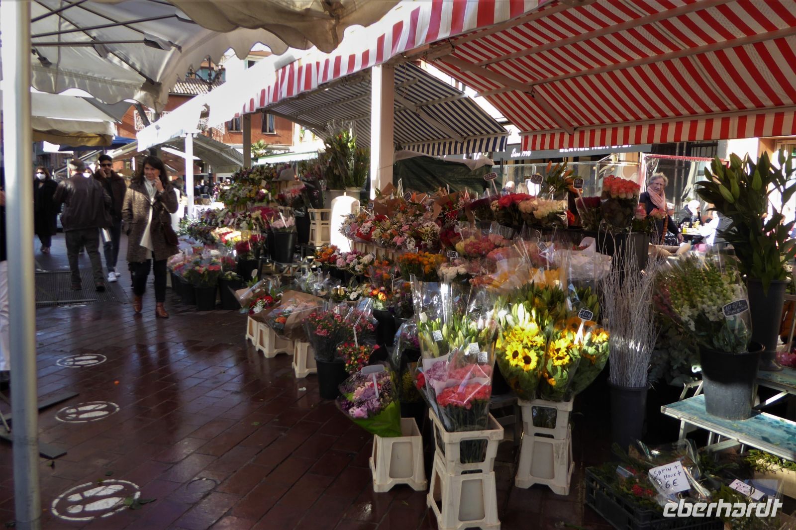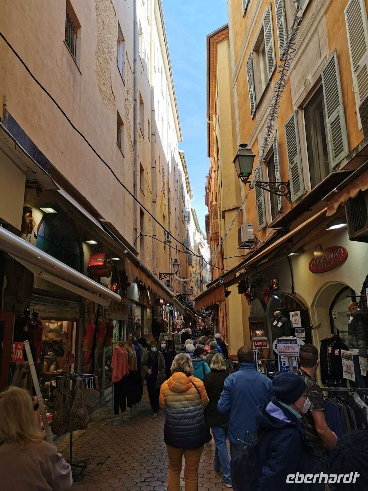 Im Anschluss an das mondäne Nizza erlebten wir den quirligen Gegensatz in den engen Gassen der Altstadt mit ihrem italienischen Flair. Gassen und Plätze muten kleinteilig mittelalterlich an, Arkaden und barocke Kirchen erinnern an oberitalienische Städte. Pünktlich um 12:00 Uhr Mittag erschallte ein Kanonenschlag vor der Kirche Sainte Rita, der auch für uns die nahe Mittagspause ankündigte. Ein bunter Blumen- und Spezialitätenmarkt, umrahmt von kleinen Restaurants lockte uns mit seinen verführerischen Düften. Wenige Schritte waren es bis zum Meer, das mit seiner tiefblauen Farbe den Namen der Küste alle Ehre machte.