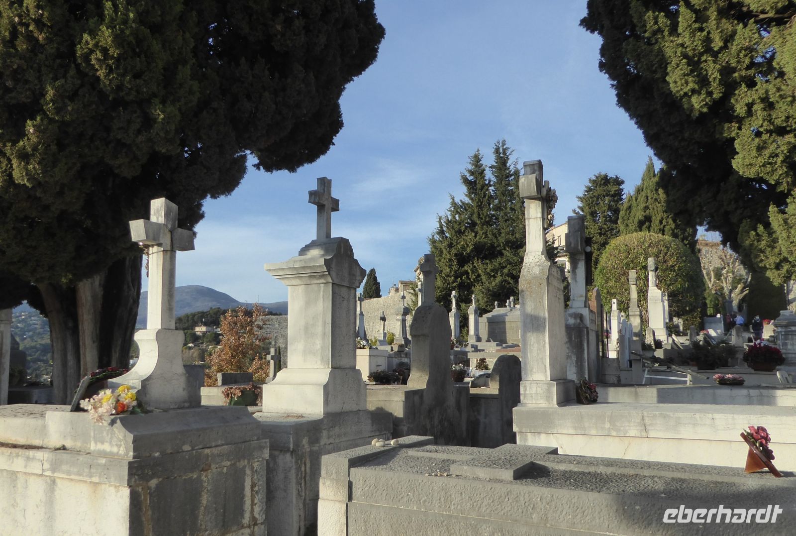 Am frühen Nachmittag kletterten wir noch einmal in den Bus und fuhren in die Berge nach St. Paul-de-Vence, dem mittelalterlichen Dorf in den Bergen, das eng mit den Namen berühmter Maler und Schauspieler verknüpft ist. Sophia Loren, Lino Ventura, Yves Montant und Curd Jürgens, Chagall, Léger, Matisse, Miró, Picasso und dann die High Society, alle waren sie gern gesehene Gäste im 1931 eröffneten Lokal La Colombe d´Or von Paul und Baptistine Roux. Curd Jürgens und Marc Chagall lebten hier in enger Nachbarschaft und auf dem malerisch am Hang gelegenen Friedhof fand der Maler Chagall seine letzte Ruhestätte. Die pittoresken Gassen und die grandiosen Aussichten, einerseits auf die Alpes Maritimes und andererseits auf das Mittelmeer, bezauberten auch uns und wir genossen bei einem Aperol Spritz auf der Terrasse eines kleinen Restaurants die herrliche Aussicht und den Sonnenuntergang über dem Meer.