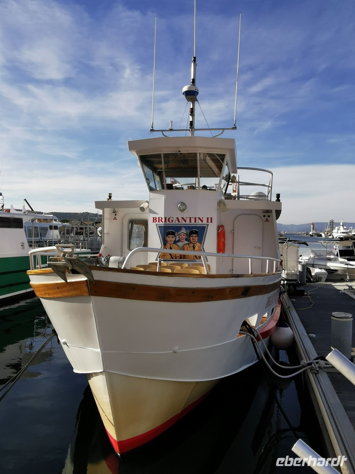 Wieder stand die Sonne am blauen Himmel, als wir uns zu unserem Ausflug ins gut 110 km entfernte nach Saint Tropez aufmachten. Unser Chauffeur Christian entschied sich, für unsere Rundfahrt die Schnellstraße durch das waldreiche Hinterland zu nehmen, sodass wir knapp zwei Stunden später St. Tropez erreichten. Bereits auf der Fahrt erfuhren wir durch unseren Guide Richard viel Wissenswertes über Land und Leute, die Geschichte und Vegetation der Region und konnten nach einer kurzen Führung durch das ehemalige Fischerdorf bei herrlichem Sonnenschein unsere Mittagspause am Meer genießen. Für unsere Augen seltsam deplatziert rahmten den Hafen kleine geschmückte Weihnachtsmarkthütten, eine Weihnachtskrippe und ein Weihnachtsbaum. Auf dem Wasser liegt nur noch ein kleines Fischerboot zwischen den gigantischen Motoryachten, die fast den Blick auf die pittoresken Häuser verstellen. Die verwinkelten Gassen laden zum Bummeln ein, ein kleiner Fischmarkt mit buntem Meeresgetier und ein Weinhändler locken mit ihrem Angebot. Ein paar Schritte weiter trillert ein einsamer Kanarienvogel sein trauriges Lied. Die Sonne erreicht kaum den Boden der engen Gassen. Noch immer ist in der Stadt der Geist der fünfziger und sechziger Jahre zu verspüren. Damals, als die echten Leinwandheldinnen wie Brigitte Bardot, Jane Fonda und Audrey Hepburn hier weilten und damit den kleinen Ort in der Folge erst zu einem Dorado der Reichen und Schönen gemacht haben. Louis de Funès, der Gendarm von St. Tropez, füllte die Gassen und Strände mit Leben und brachte mit den unvergesslichen Filmen den Menschen in den sechziger Jahren die sonnigen Gestaden des Mittelmeers und die Sehnsucht nach dem ungezwungenen freien Leben an der Riviera ins heimische Wohnzimmer.
