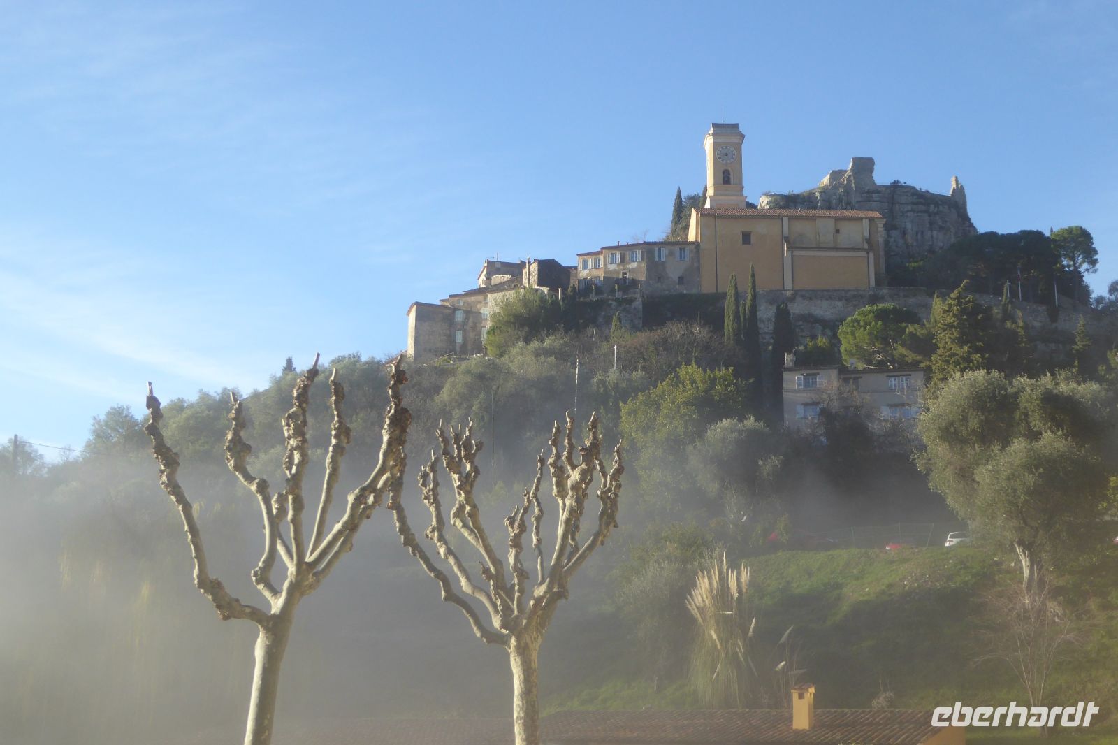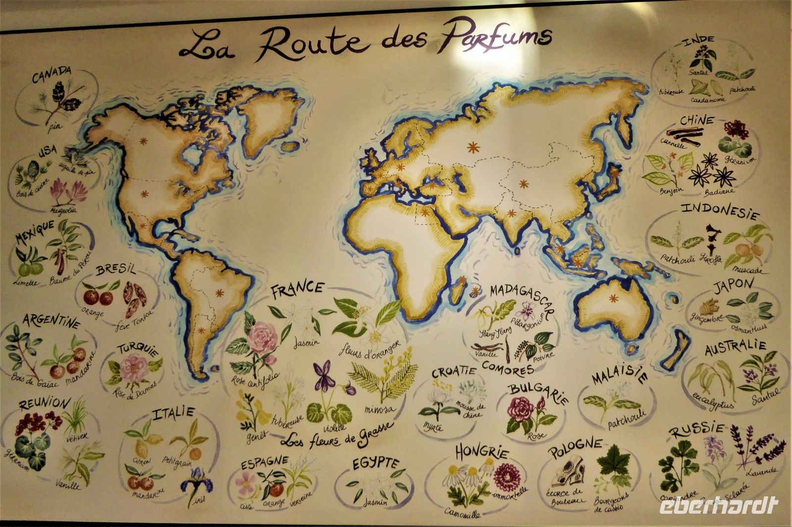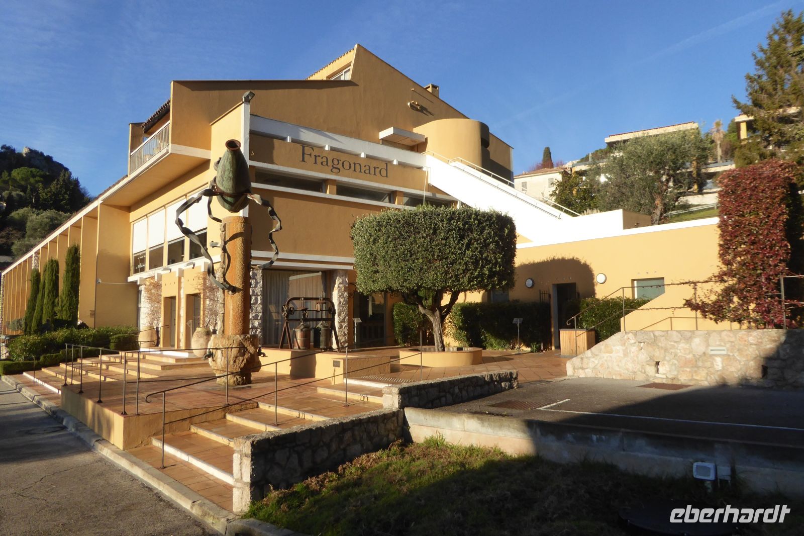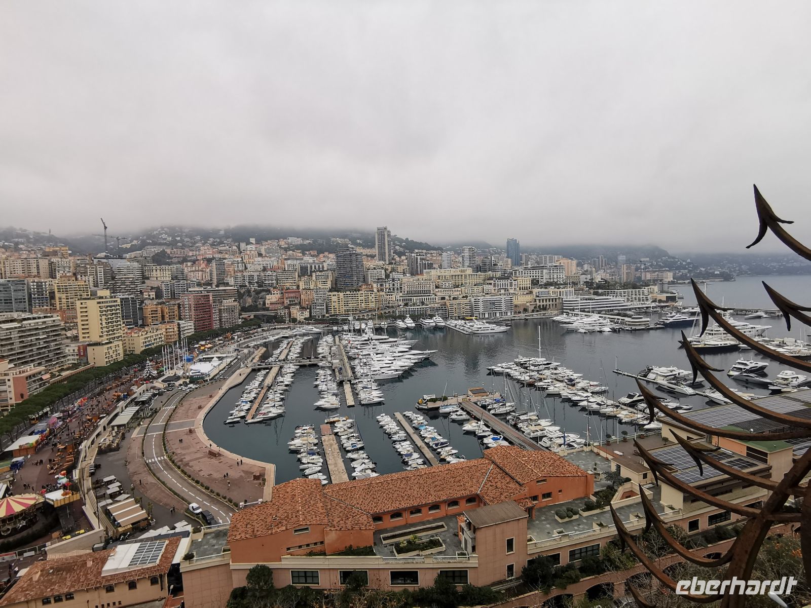 Wolkenverhangen begann der letzte Tag des Jahres. Pünktlich um 9:00 Uhr erwarteten wir Richard, der uns heute zu einer Rundfahrt ins Fürstentum Monaco führen wollte. Doch zuerst fuhren wir ins Hinterland von Nizza entlang der wunderschönen Küstenstraße Corniche in die Berge nach Eze. Unterhalb des mittelalterlichen Bergdorfes liegt die 1968 eingeweihte Laborfabrik der Parfümerie Fragonard. Einzigartige Wetterverhältnisse machten die Fahrt zu einem echten Abenteuer, und erst auf die letzten Höhenmeter schälte sich die Landschaft aus dem Nebel. Die ockergelbe Fabrik leuchtete in der Sonne während sich das Tal noch in dichten Nebel hüllte. Nach einer freundlichen Begrüßung wurden wir in die Geheimnisse der Parfümproduktion eingeweiht. Wer konnte wissen, dass für 1000 g Essenz bis zu 1000 kg Blüten nötig sind? Ein kleines Duft Memory führte uns vor Augen was die Parfümeure leisten: wir scheiterten schon bei der Unterscheidung von acht verschiedenen Duftnoten, eine echte „Nase“, von denen es weltweit nur zweiundfünfzig gibt, sind in der Lage bis zu 2000 Düfte zu unterscheiden. Ehrfürchtig standen wir vor der „Orgel“, an der neue Duftkreationen komponiert werden. Bei der sehr interessanten Führung erfuhren wir noch weiter Wissenswertes über die vielfältige Produktpalette und deren aufwändige Herstellung. Im angeschlossenen Verkaufsraum durften wir die Produkte testen und so fanden einige schön verpackte Päckchen als Souvenir oder Mitbringsel den Weg zurück zum Bus.