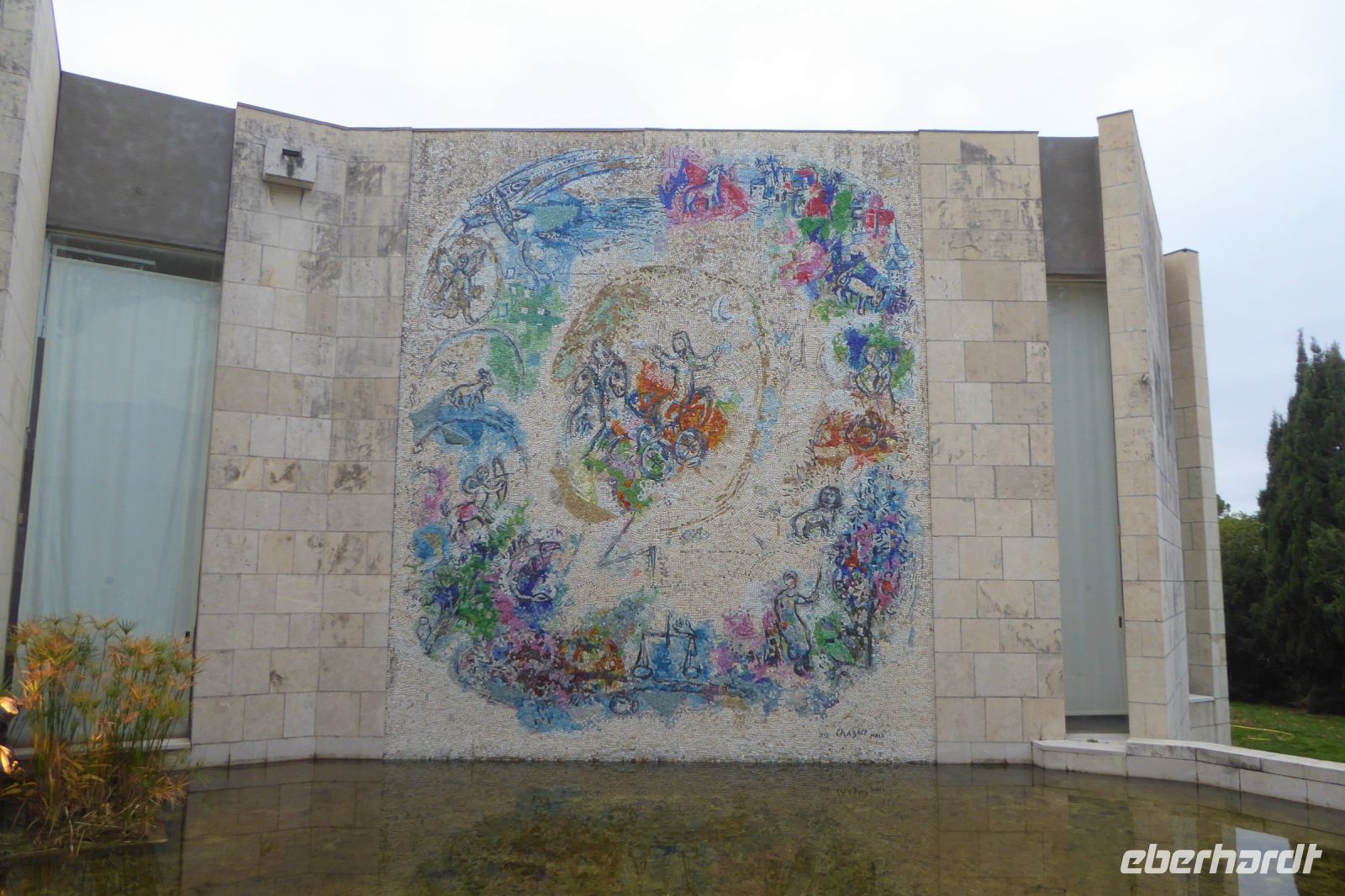 Unser gemeinsamer Rückflug nach München startete erst um 18:40 Uhr. So blieb uns an unserem letzten Reisetag genügend Zeit für eigene Entdeckungen in Nizza. Noch einmal durch die Altstadt bummeln, am Meer entlang schlendern, in der mondänen Avenue Jean-Médecin shoppen gehen oder gemütlich in einem der kleinen Restaurants zu Mittag speisen, jeder konnte den Tag nach seiner Façon gestalten. Wer wollte, konnte sich mir zu einem Spaziergang zum Chagall Museum in Cimiez anschließen. Gemütlich marschierten auch wir durch die breite Avenue Jean-Médecin, wo wir zuerst die Basilika Mariä Himmelfahrt besuchten. Sie wurde in der zweiten Hälfte des neunzehnten Jahrhunderts nach dem Vorbild der Kathedrale Notre-Dame in Paris errichtet. Die Grundsteinlegung der römisch-katholische Kirche erfolgte bereits kurz nach dem Nizza mit dem Vertrag von Turin an Frankreich fiel und sollte mit ihrer Gestaltung die Zugehörigkeiten Nizzas zu Frankreich unterstreichen. Auf unserem Weg nach oben entdeckten wir den stillen Garten der buddhistischen Gemeinschaft, der jedem Besucher offen steht. Schließlich erreichten wir das moderne Gebäude des Chagall Museum Nizza. Es war der Wunsch des Künstlers, für den Zyklus der biblischen Botschaft, den er 1966 dem französischen Staat als Schenkung vermacht hat, an diesem Ort ein Museum zu errichten. 200.000 Menschen pilgern jährlich hierher um die zwölf großformatigen Gemälde zu den alttestamentarischen Büchern Genesis und Exodus sowie fünf kleineren Gemälden rund um das Hohelied in der Interpretation des Ausnahmekünstlers Chagall zu sehen. Fasziniert betrachteten wir die Bilder und das Zusammenspiel von Farbe, Licht und Architektur.