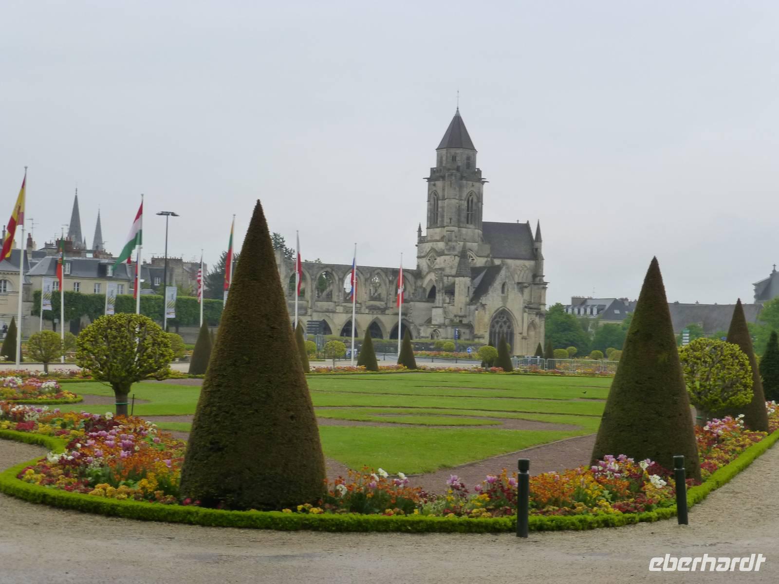 Heute standen Caen, die Landungsküste sowie die Weiterfahrt nach St. Malo auf unserem Programm. Am Morgen statteten wir der Stadt von Wilhelm dem Eroberer einen Besuch ab. Von der Festungsmauer der Burg konnten wir einen schönen Blick auf die Stadt mit ihren zahlreichen Kirchen genießen. In der Fußgängerzone stehen noch zwei alte Fachwerkhäuser, die einen guten Eindruck erwecken, wie die Stadt vor der Zerstörung des Zweiten Weltkrieges aussah. Mit dem Bus ging es dann zur Männerabtei. Allein die wunderschöne Parkanlage vor dem ehemaligen Abteigebäude (heute Rathaus) war den Besuch wert, denn die Kirche war leider am Pfingstmontag geschlossen.
