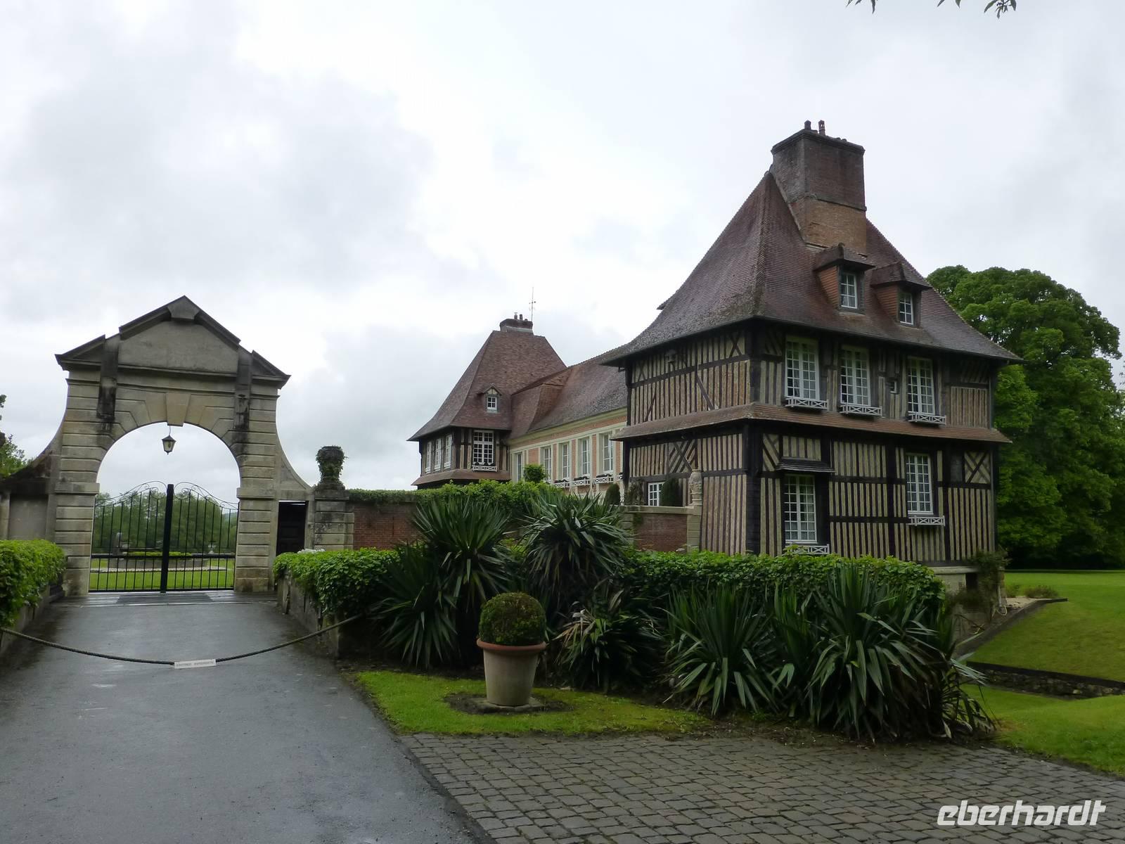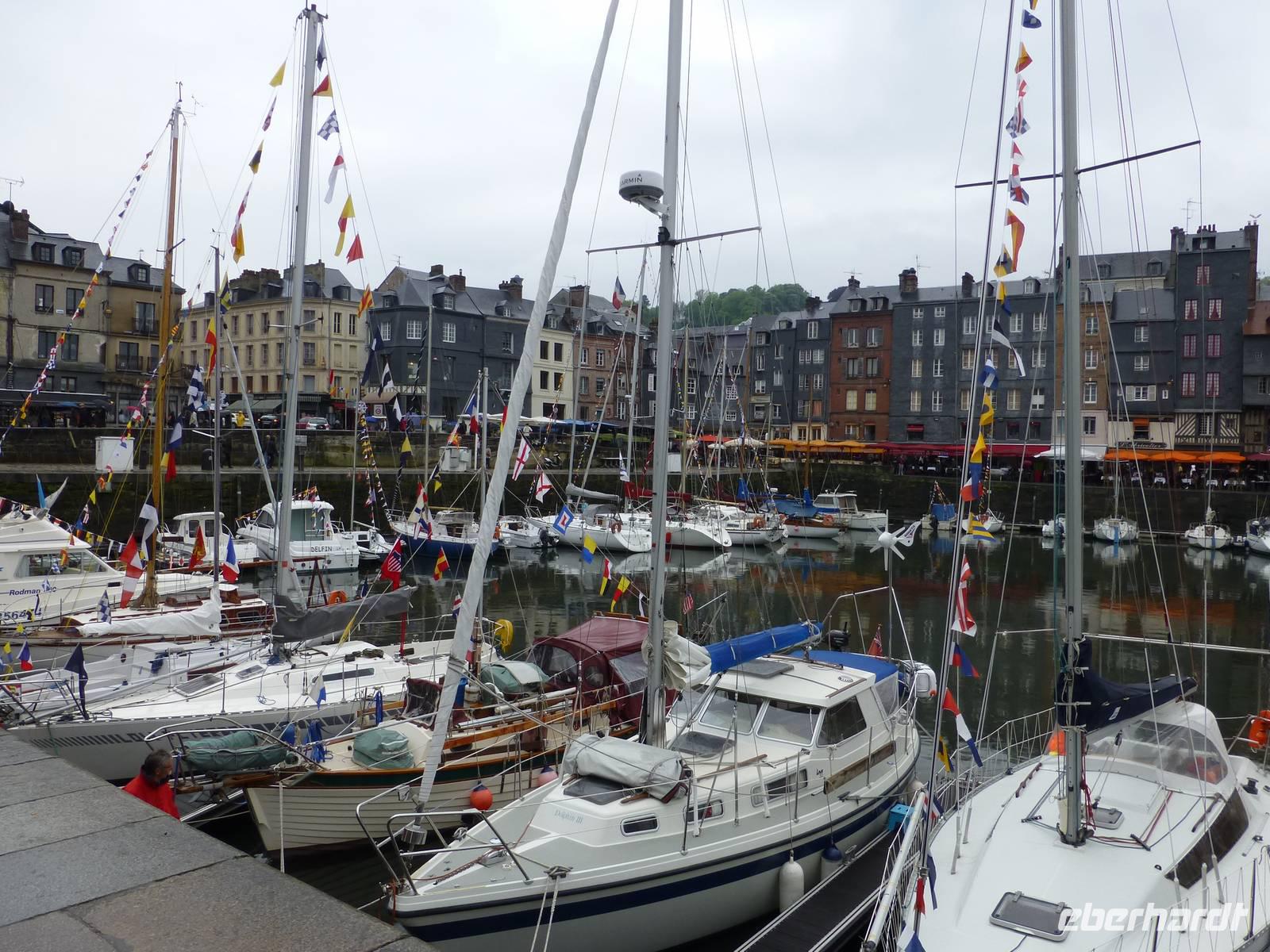 Durch die Gerbergasse und die Kanonikergasse ging es zurück zur prächtigen Kathedrale mit dem höchsten Kirchturm (151 m) Frankreich. Da der Pfingstgottesdienst gerade beendet war, warfen wir noch einen Blick in diese gotische Kirche. Entlang der Abteienstrasse und vorbei an den Brücken Brotonne und Tancarville erreichten wir die Pont de Normandie. Zur Eröffnung handelte es sich um die größte Schrägseilhängebrücke der Welt. Diese Brücke brachte uns dann über die Seine nach Honfleur. Von diesem kleinen Hafen starteten die großen Entdeckungsfahrten nach Kanada. Heute befinden sich hier zahlreiche kleine Ateliers der Künstler, die von dem Licht und der Atmosphäre um den Alten Hafen inspiriert werden. Nach unserem Aufenthalt in Honfleur fuhren wir in das Pays d´Auge weiter. Im Chateau d´Breuil wurden wir in die Geheimnisse des Calvados eingewiesen. Bei einer Führung sahen wir die Brennkolben, das Lagerhaus sowie das herrschaftliche Gutshaus. Der Bummel durch die prächtige Parkanlage war richtig angenehm. Im Anschluss probierten wir einen Pommeau und einen 15 Jahre alten Calvados. Mit diesen zahlreichen Eindrücken fuhren wir weiter nach Caen zum Novotel.