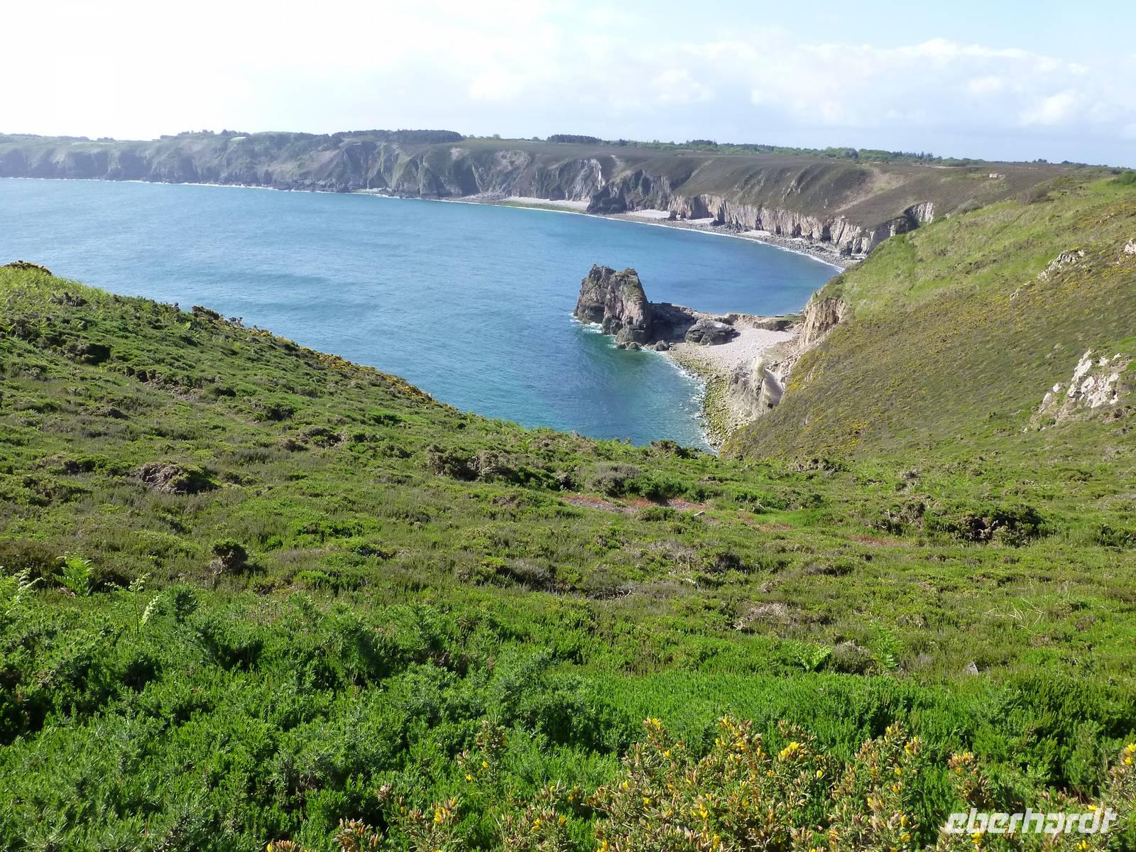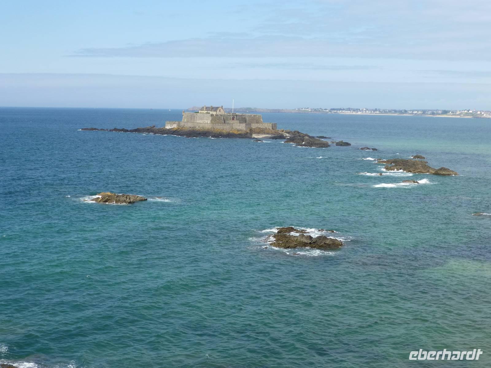 Heute hieß es Abschied nehmen von St. Malo. Wir erkundeten am Vormittag die Cote d´Emeraude, die Smaragdküste. Vorbei am Badeort Dinard sowie dem Gezeitenkraftwerk der Rance erreichten wir das Cap Frehel. Das Cap Frehel gehört zu den landschaftlichen Hauptsehenswürdigkeiten der Bretagne. Der Weg endete an der aus Schiefer- und Sandstein geformten Felsspitze, die sich hier 72 m über dem Meeresspiegel weit vor schiebt. Weiterhin konnten wir auf einer schmalen Felsinsel, die auf drei Seiten von Wasser umgebenen ist, die mittelalterliche Festung Fort La Latte erblicken.