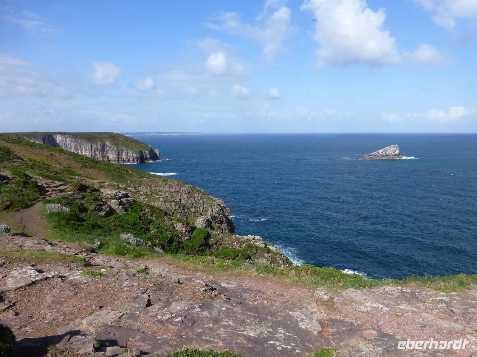 Am heutigen Tag ging es zur wilden Küste der Bretagne, dem Pointe du Raz (bretonisch Meeresenge). Die französische Westspitze gehört zu den eindruckvollsten Erlebnissen der bretonischen Natur. Ein kleiner Spaziergang brachte uns an die Spitze der Landzunge mit Blick zu den vorgelagerten Sein-Inseln sowie dem Leuchtturm. Mit dem Wetter hatten wir auch diesmal viel Glück. Es regnete sich vor unserem Besuch ab. Wir konnten das Kap mit seinen schönen blühenden Ginsterbüschen bei leichtem Sonnenschein genießen.